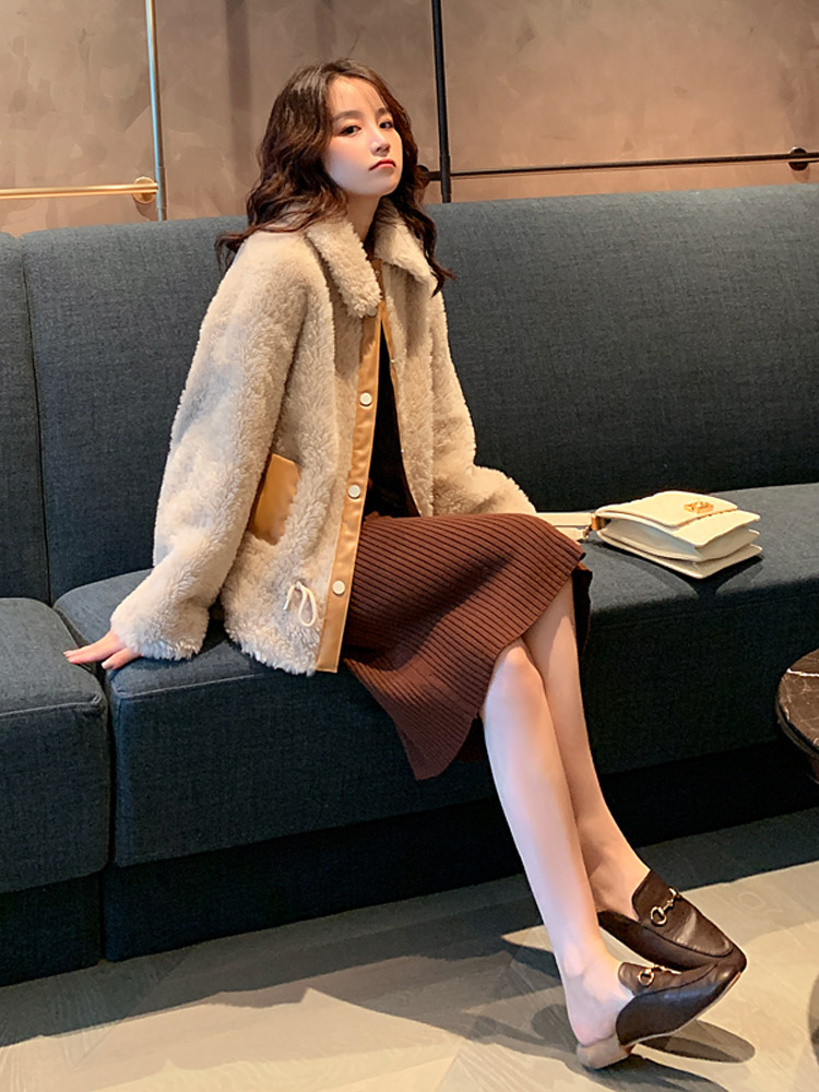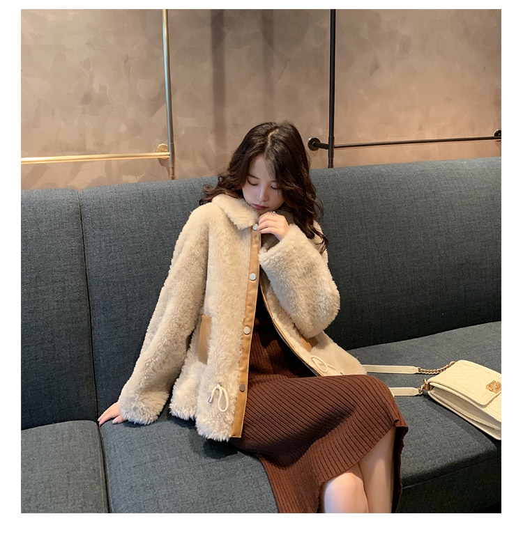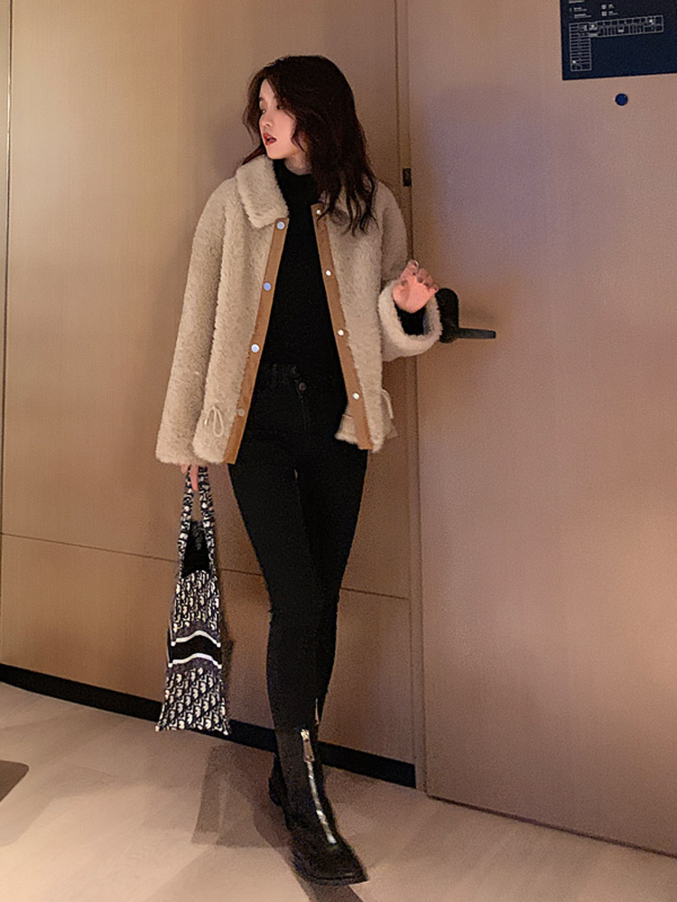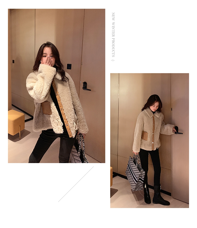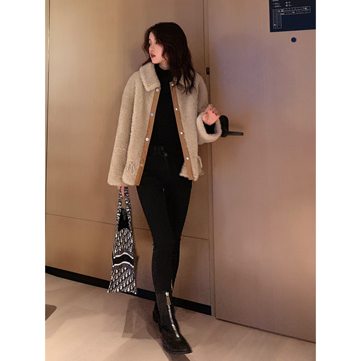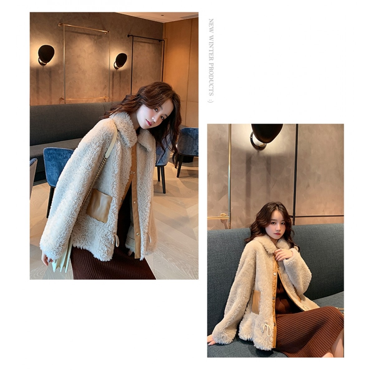 商品名稱:流行秋冬新款短款羊羔毛拼接外套女ins港味韓版寬松學(xué)生上衣