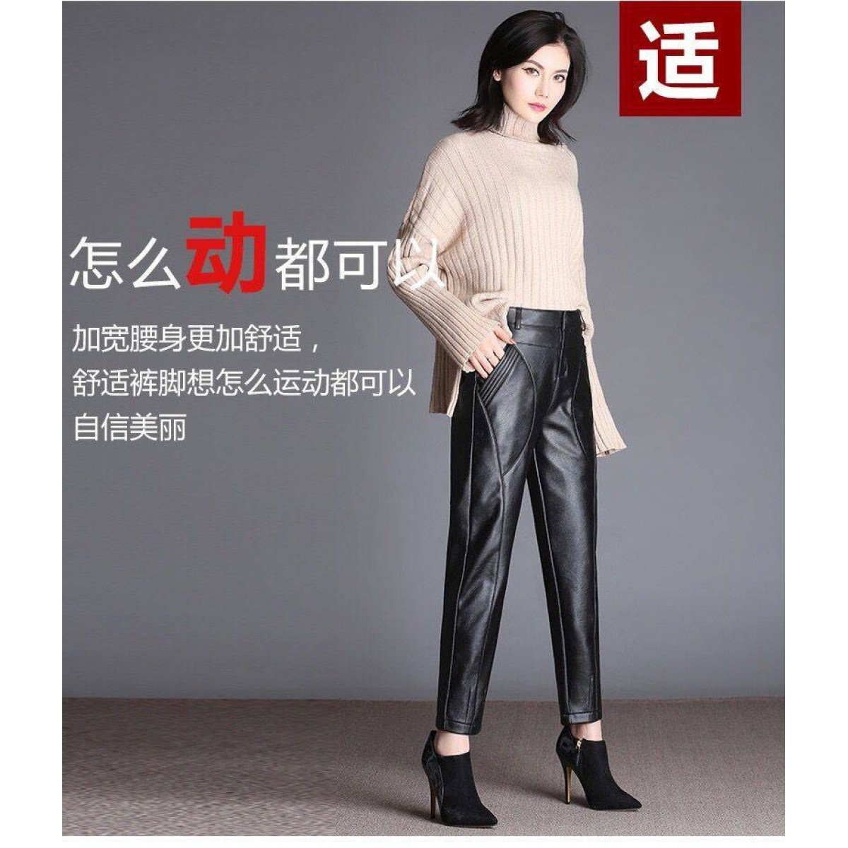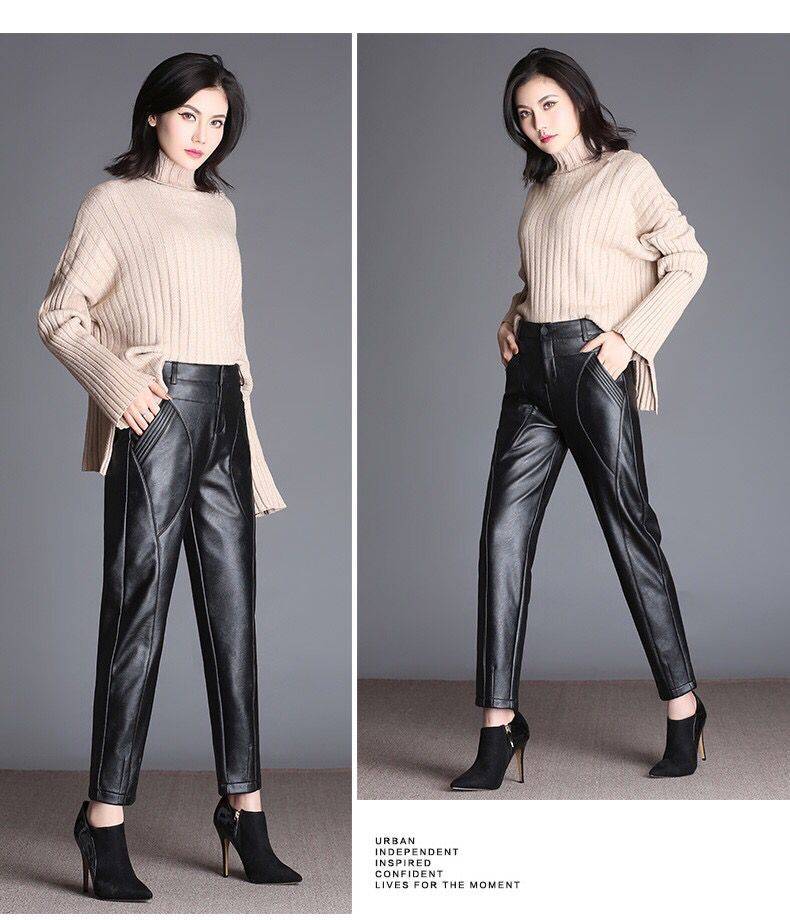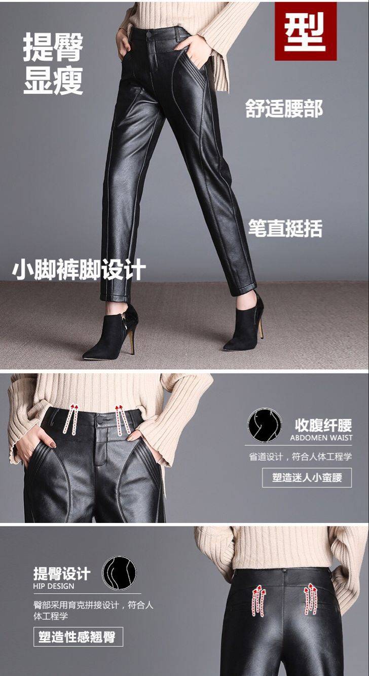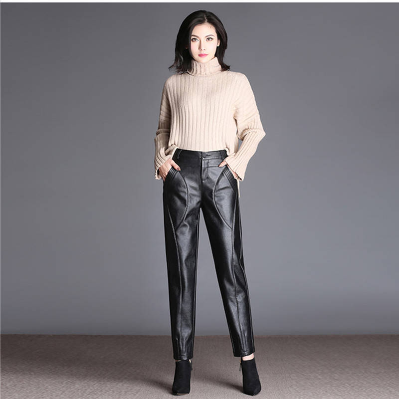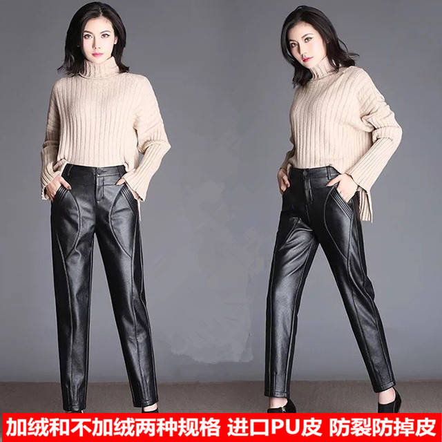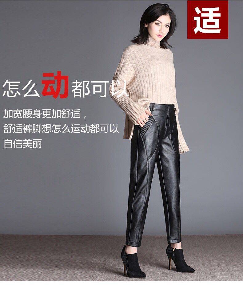 商品名稱:皮褲女寬松外穿高腰哈倫褲秋冬女士皮褲子女加絨長(zhǎng)褲小腳褲休閑褲