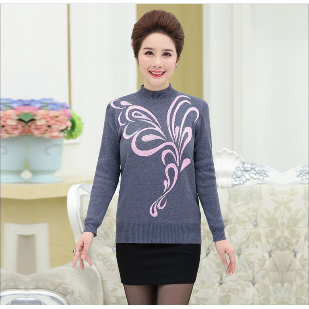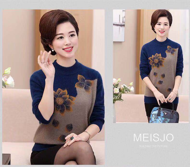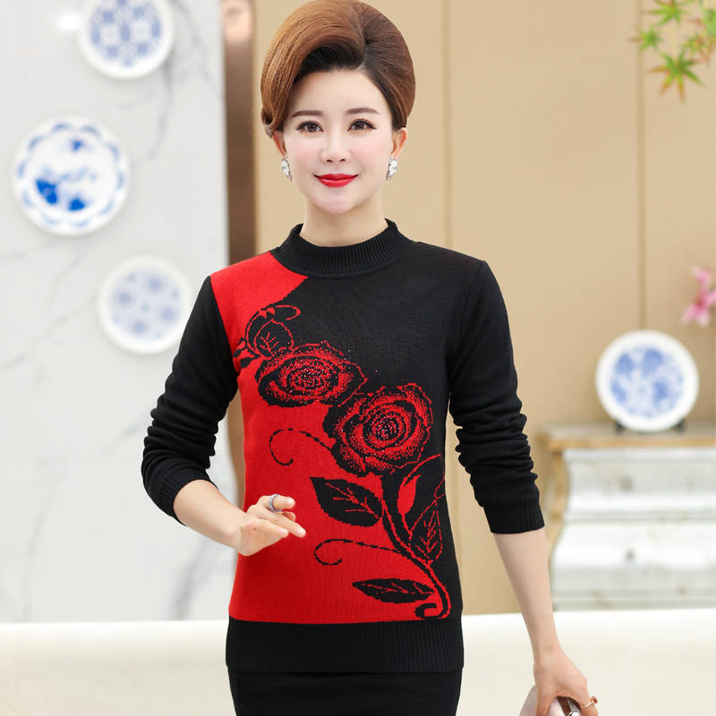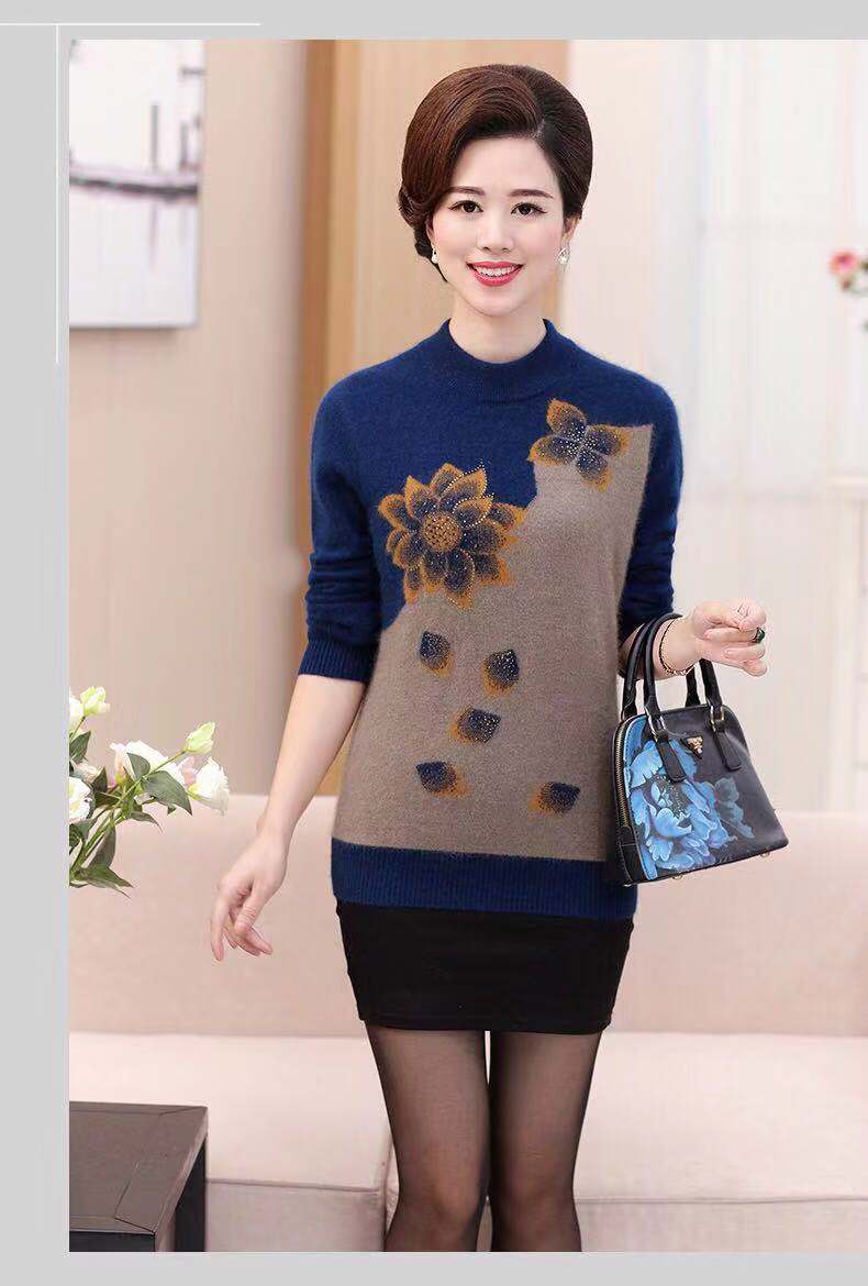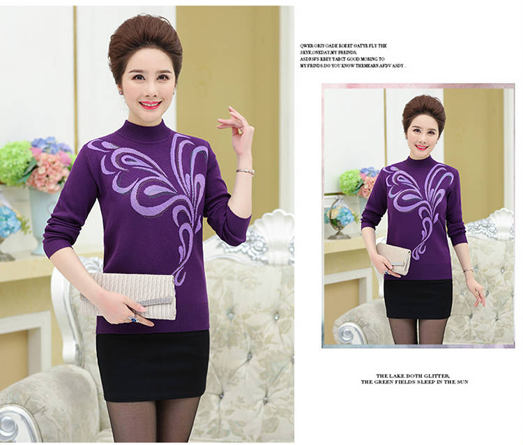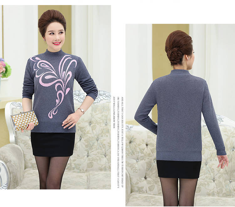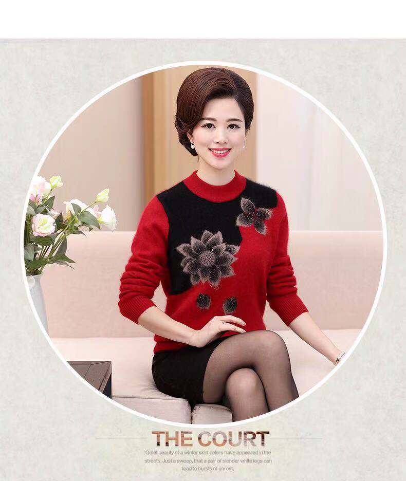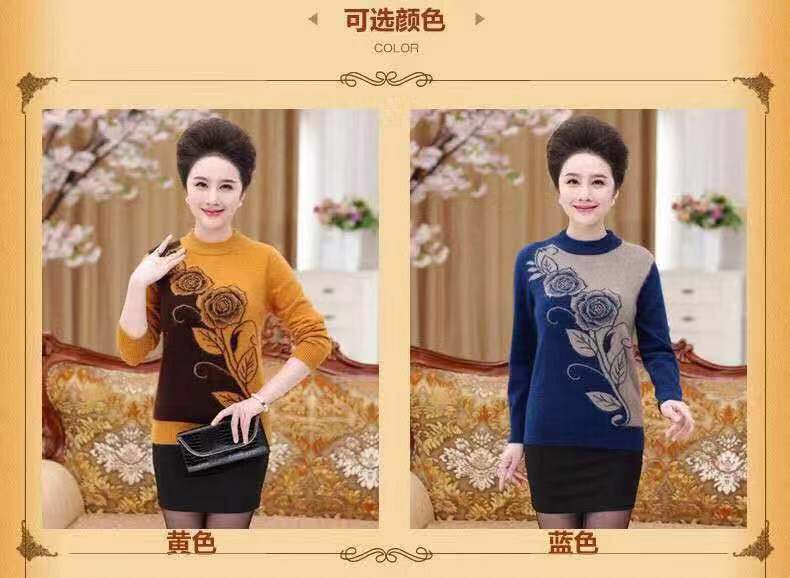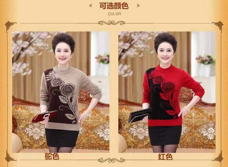 商品名稱:不加絨中老年女裝毛衣針織衫秋冬媽媽裝加絨加厚打底衫毛衣