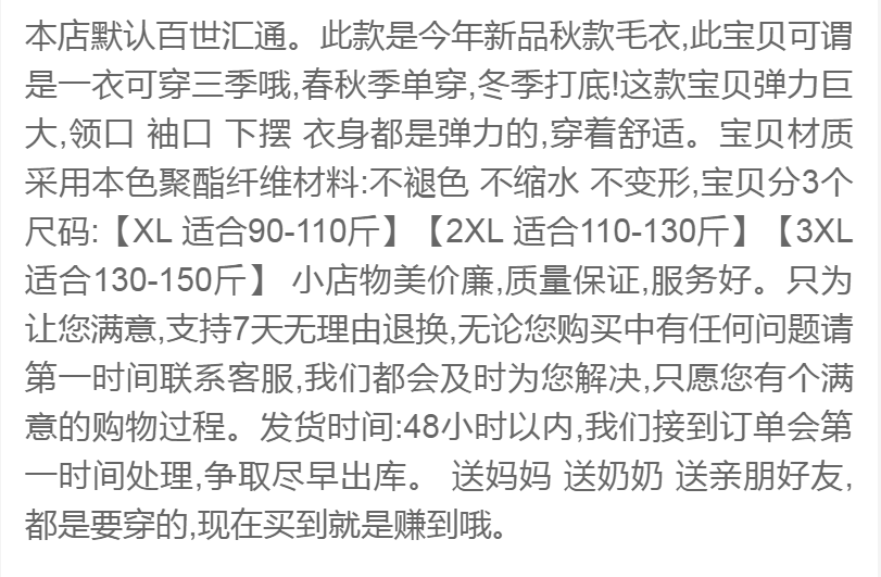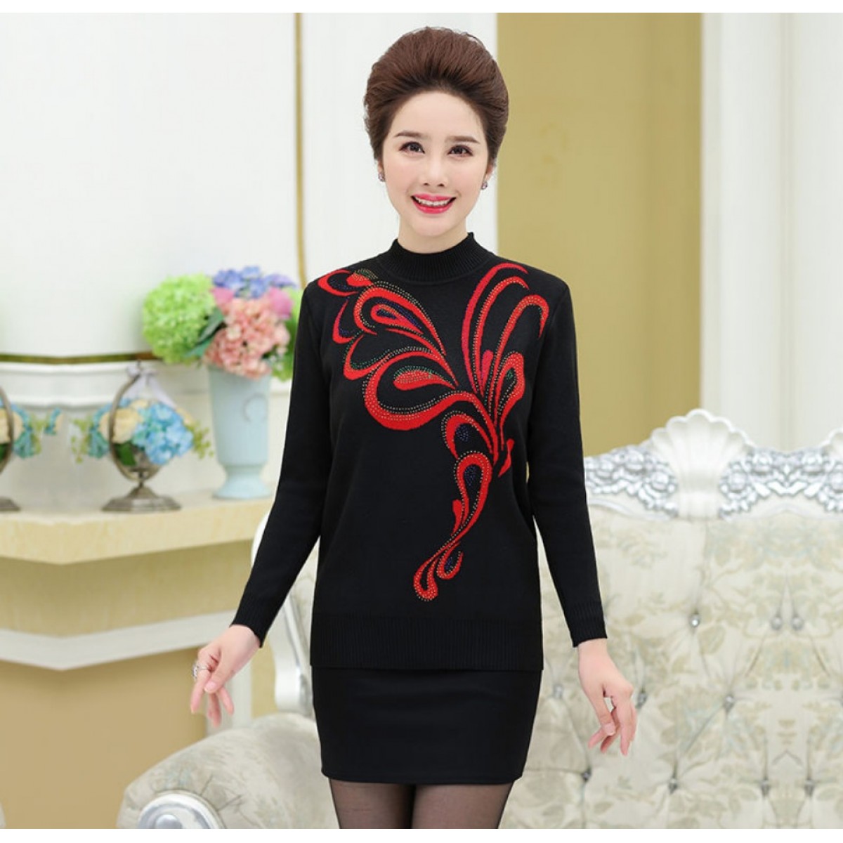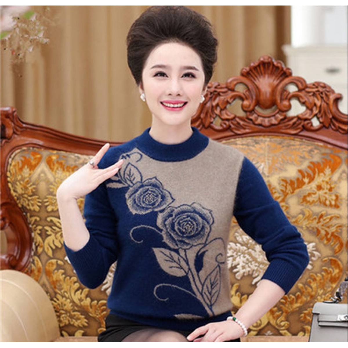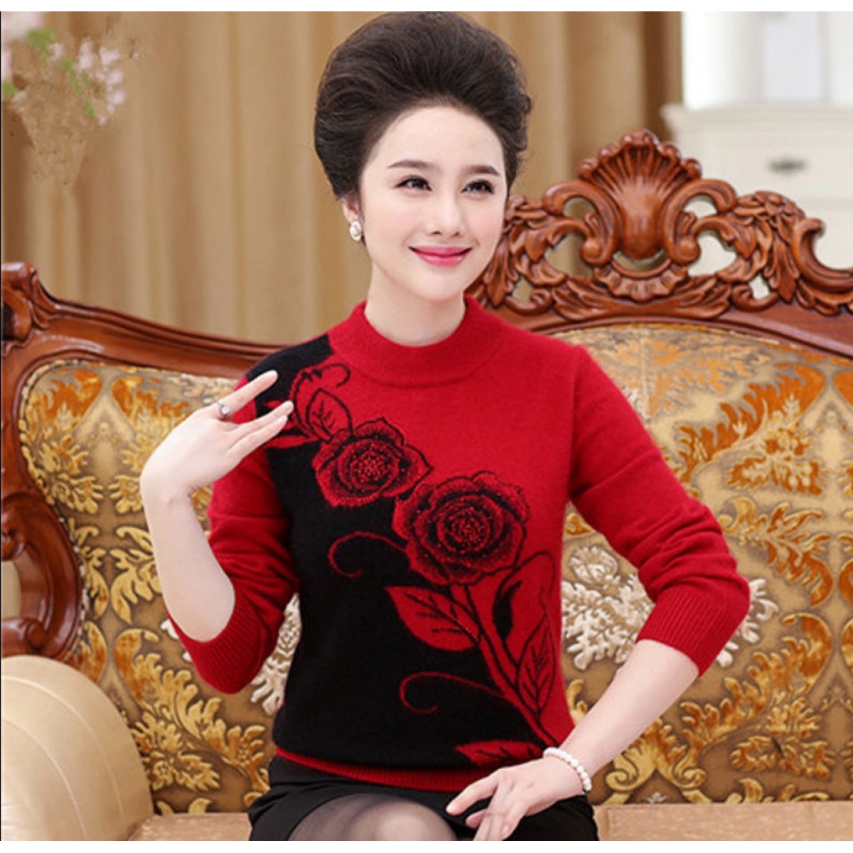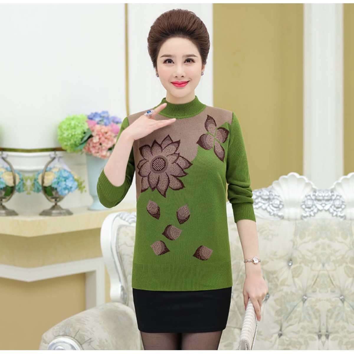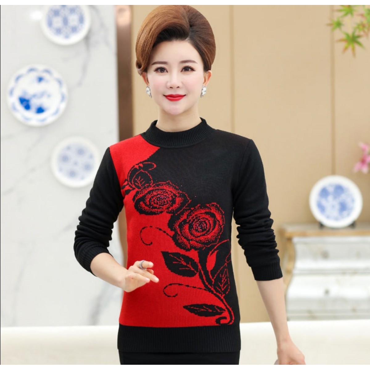 商品名稱:不加絨中老年女裝毛衣針織衫秋冬媽媽裝加絨加厚打底衫毛衣