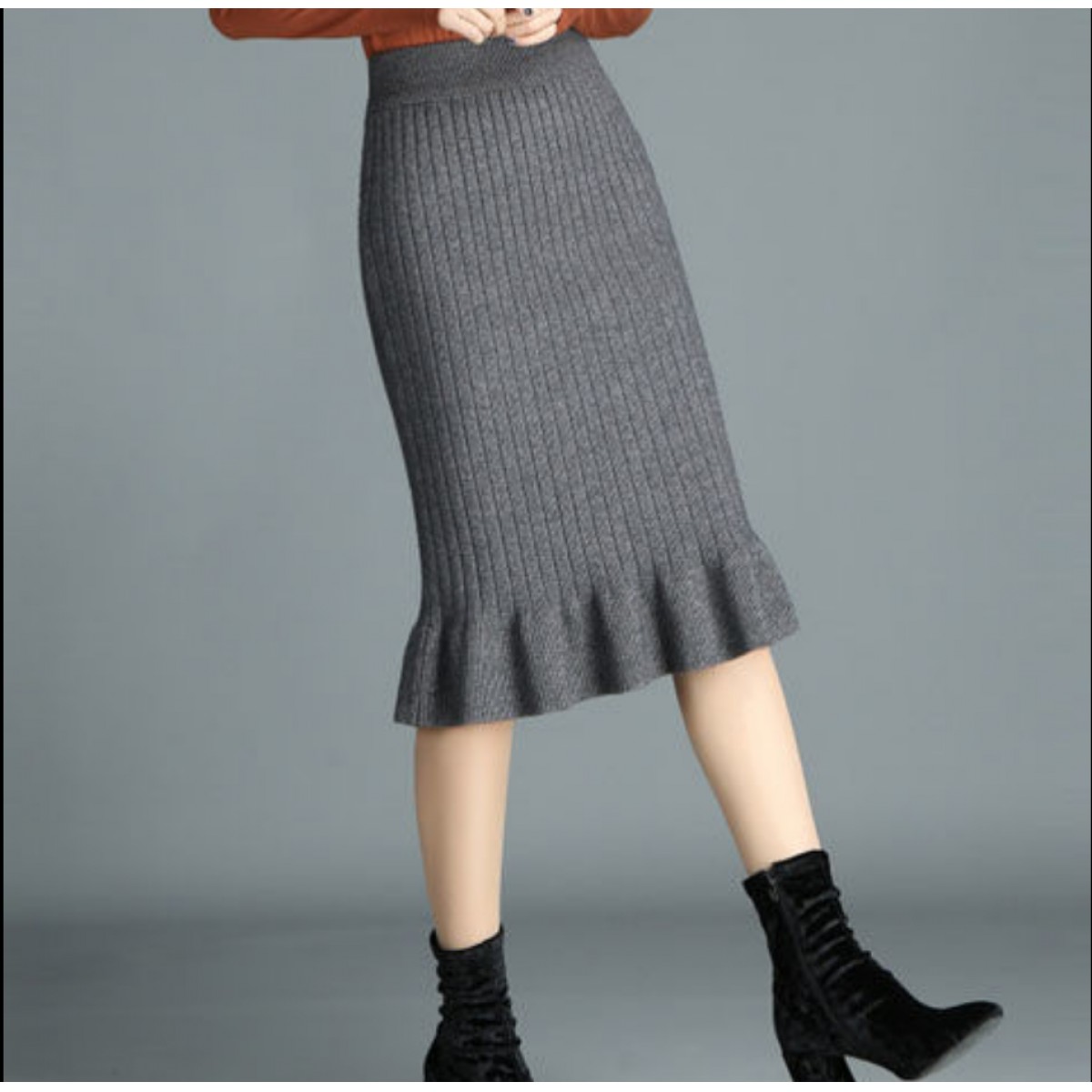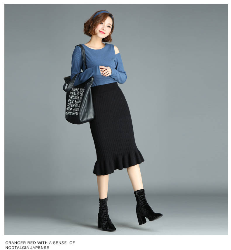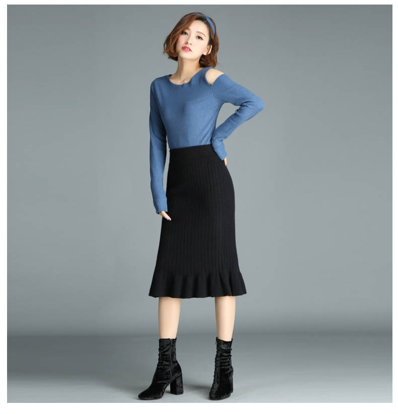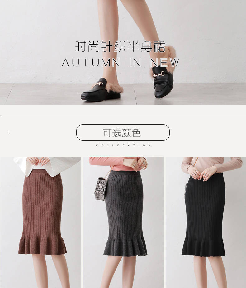 商品名稱(chēng):冬季厚款毛線(xiàn)魚(yú)尾一步裙高腰百搭中長(zhǎng)款針織包臀裙半身裙女