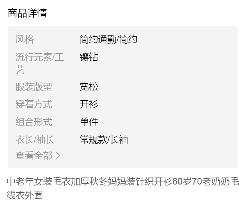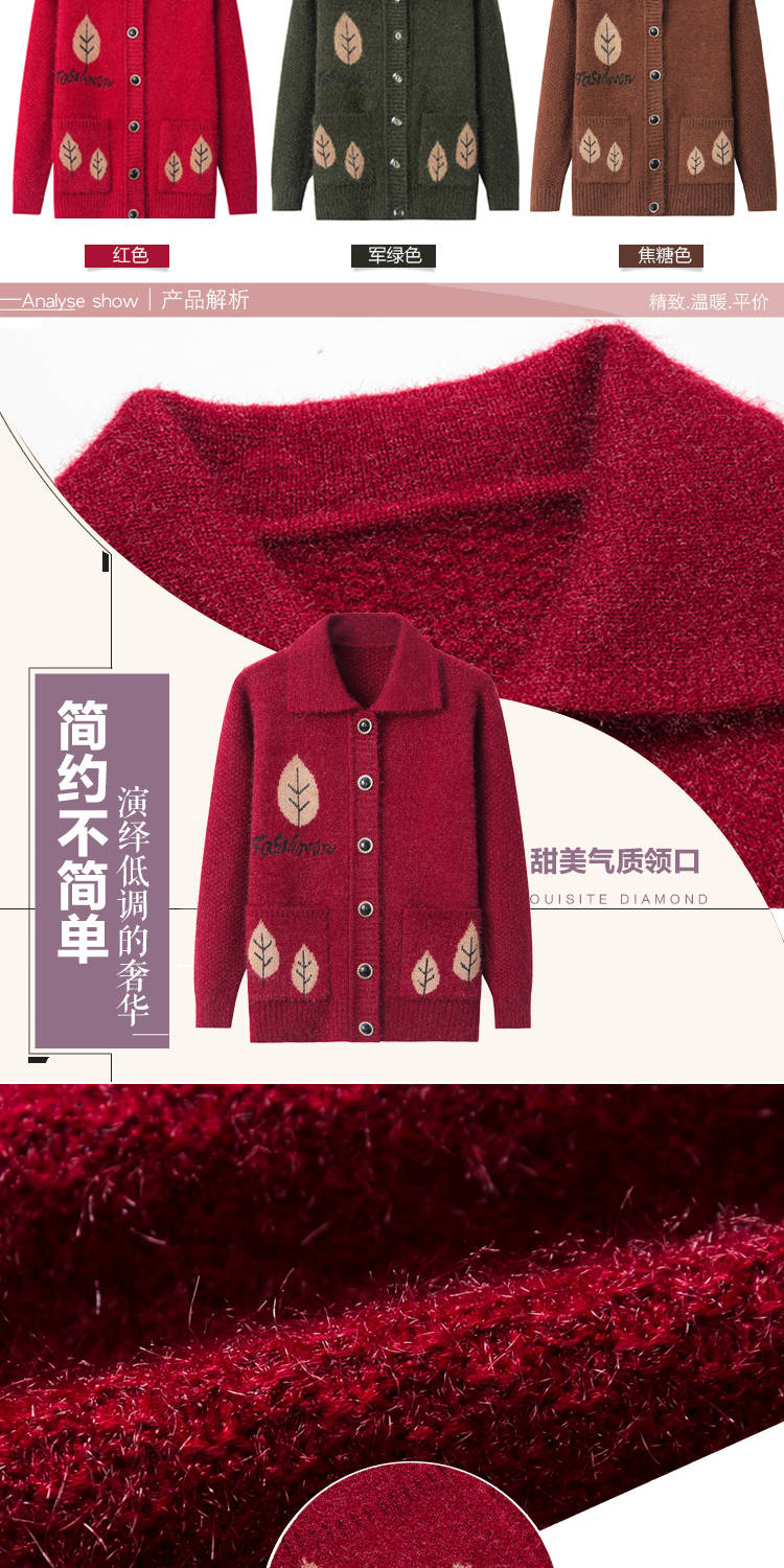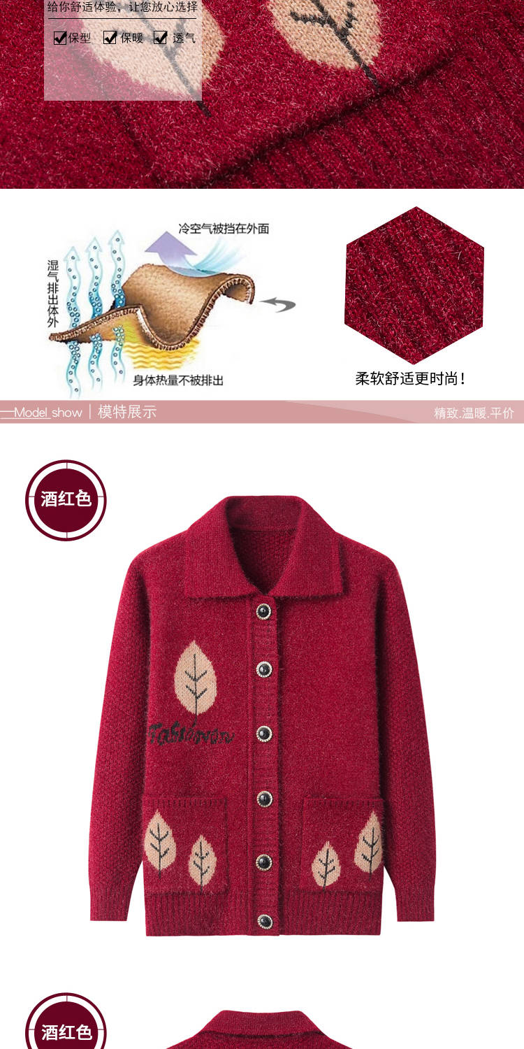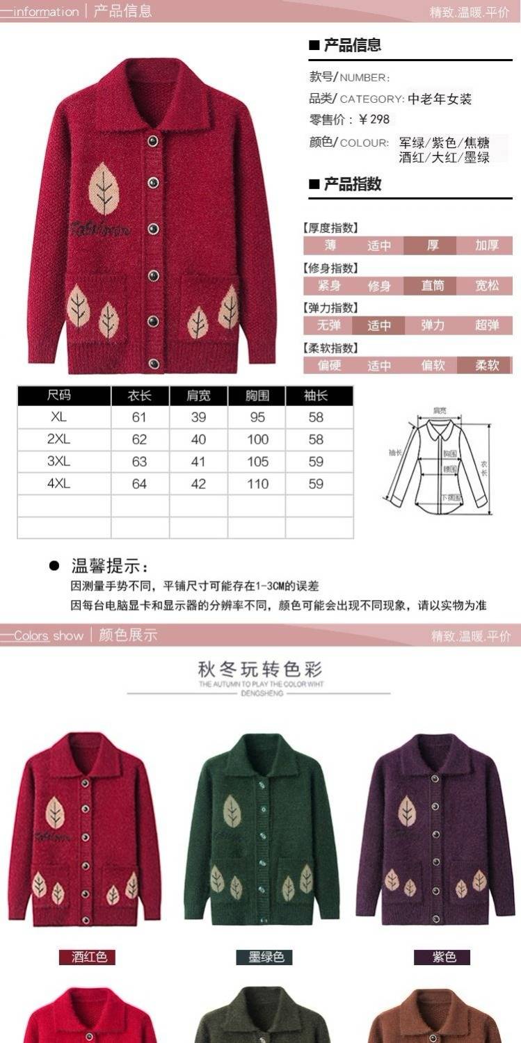 商品名稱:中老年女裝毛衣加厚秋冬媽媽裝針織開衫60歲70老奶奶毛線衣外套