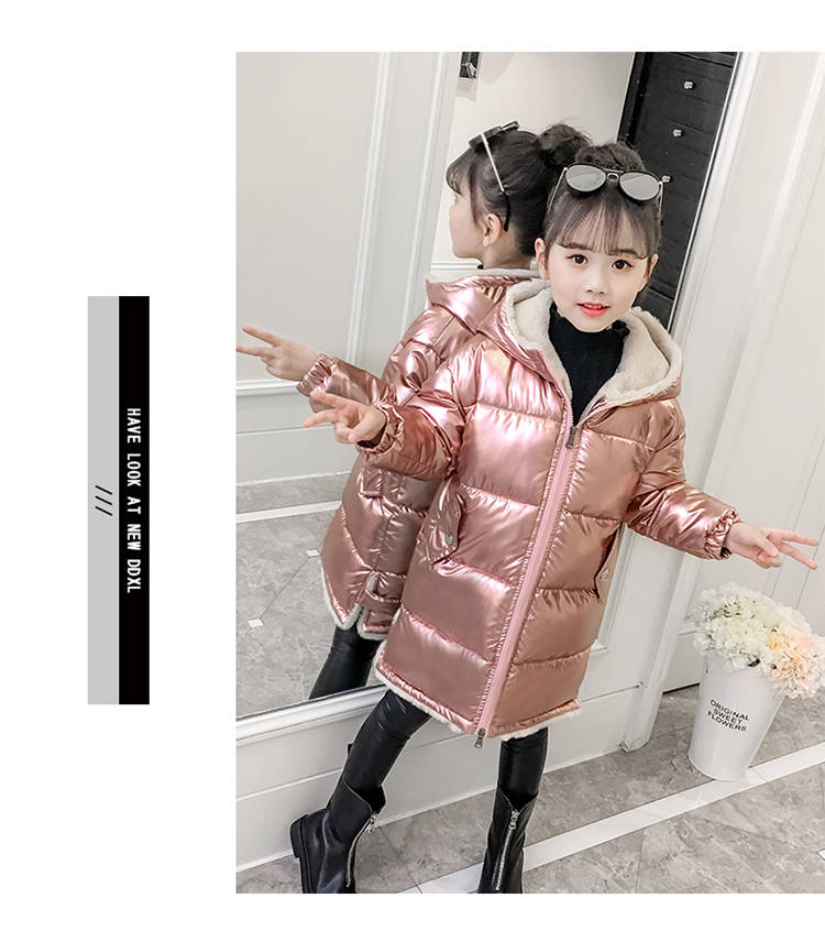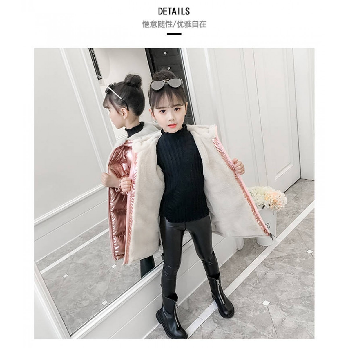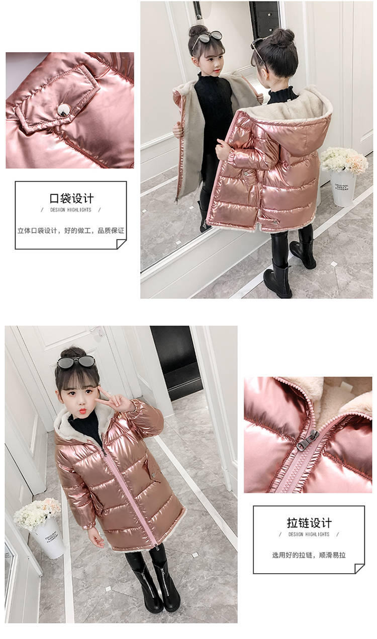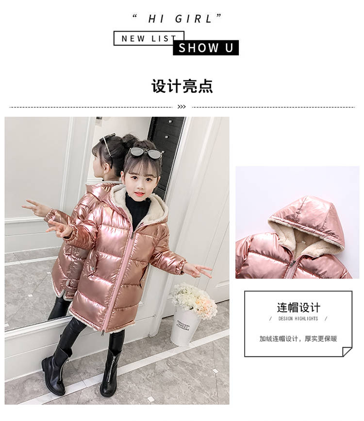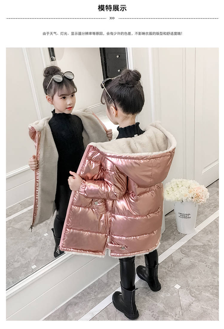 商品名稱:童裝女童冬裝棉衣外套兒童大童秋冬季加絨加厚中長款棉襖洋氣棉服