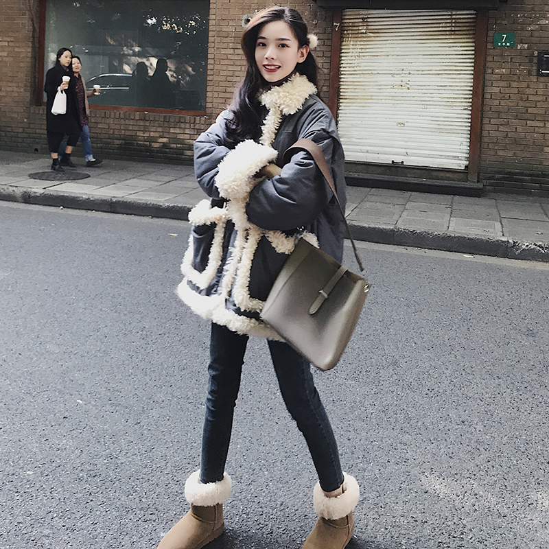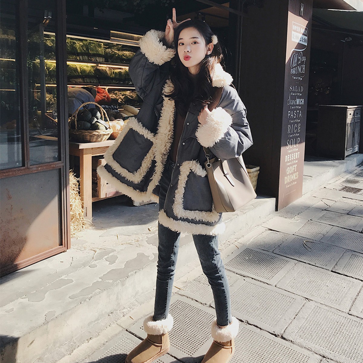 商品名稱:ins超火羽絨棉服女冬新款韓版學(xué)生中長款棉襖羊羔毛拼接外套