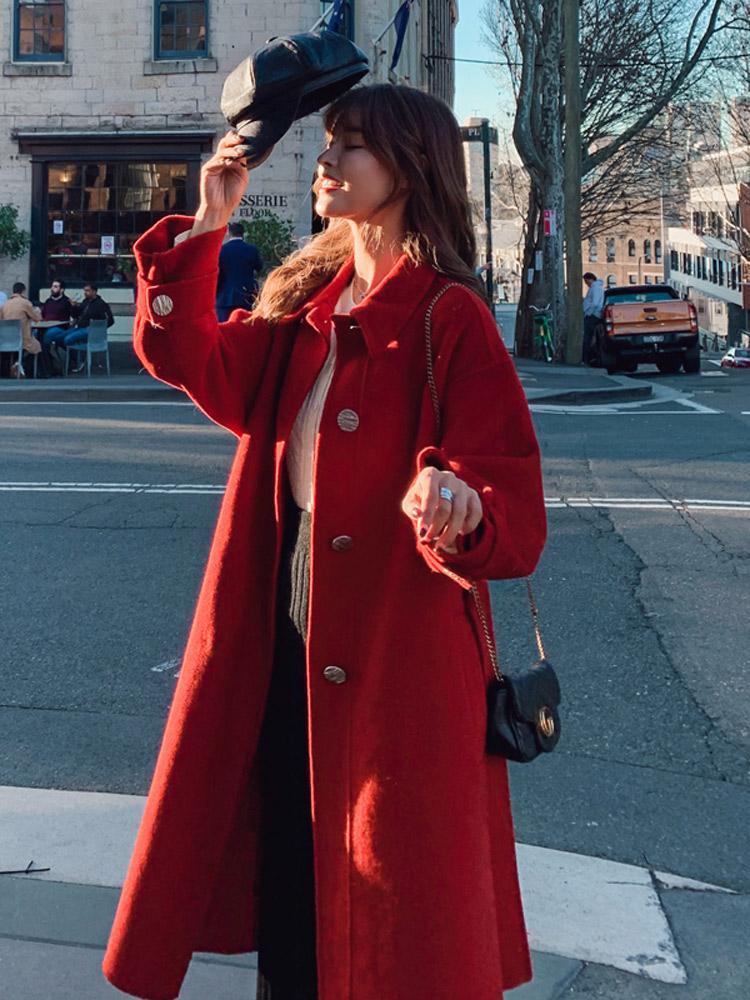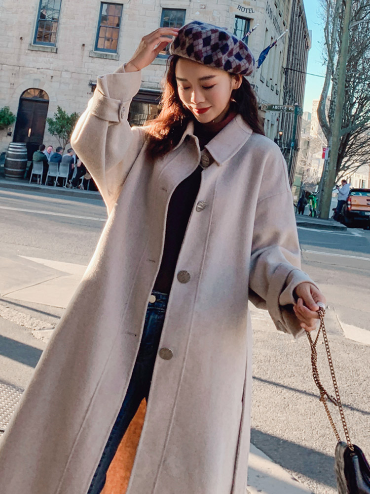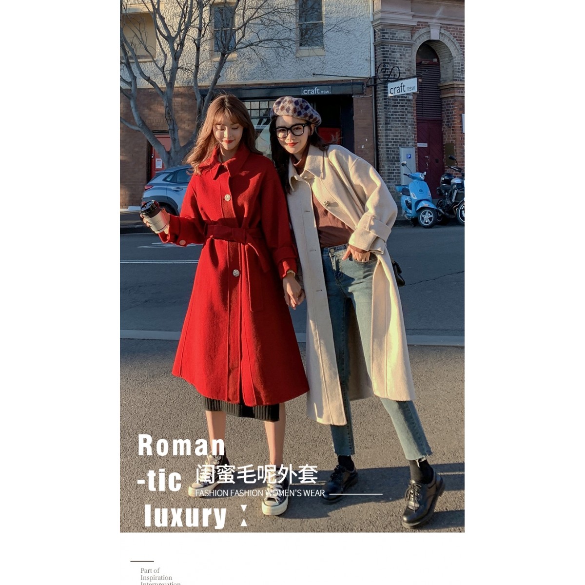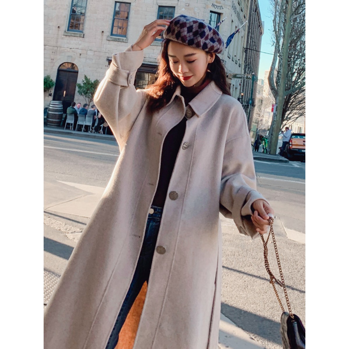 毛呢大衣女中長(zhǎng)款過(guò)膝秋冬季新款氣質(zhì)waitmore百搭呢子外套潮