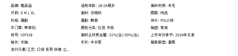 商品名稱(chēng):毛呢大衣女中長(zhǎng)款過(guò)膝秋冬季新款氣質(zhì)waitmore百搭呢子外套潮