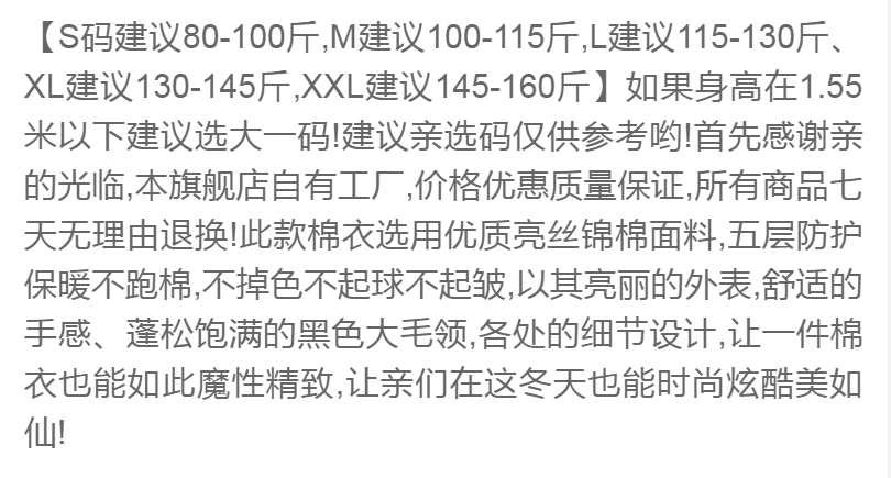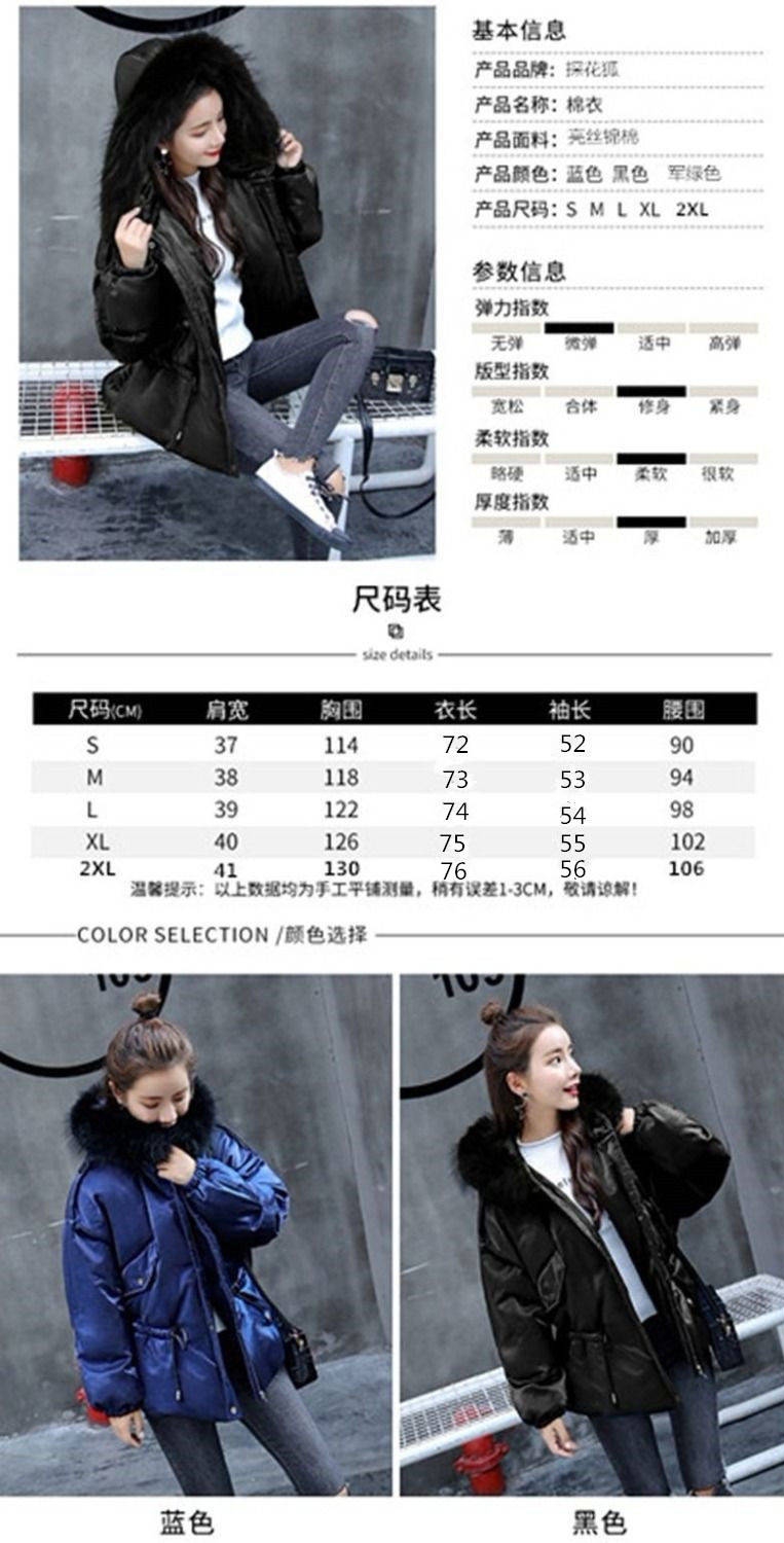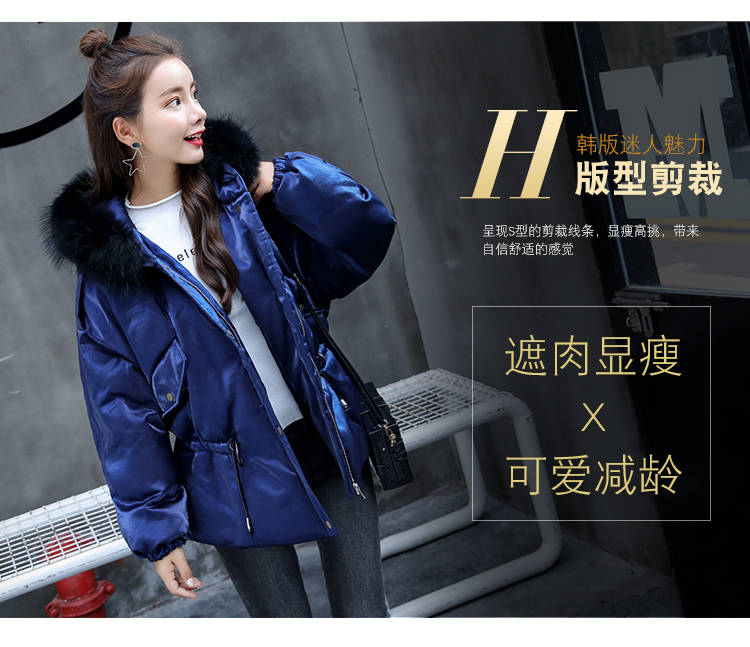 商品名稱:女士棉衣女短款大毛領(lǐng)棉服女2019新款冬季韓版時(shí)尚亮面收腰棉襖女