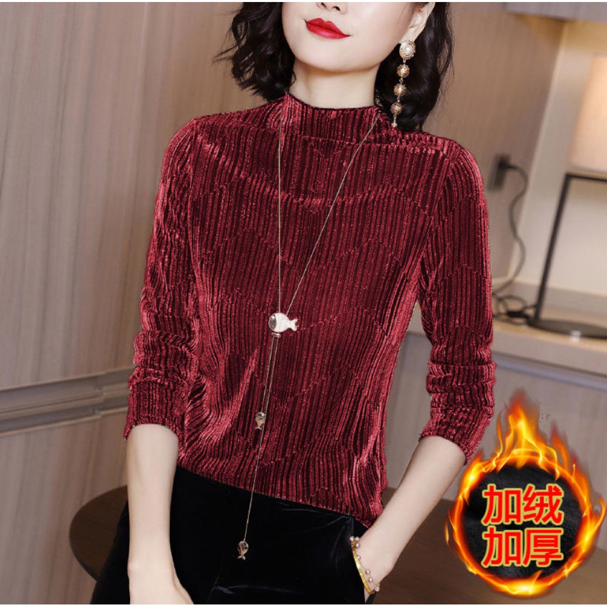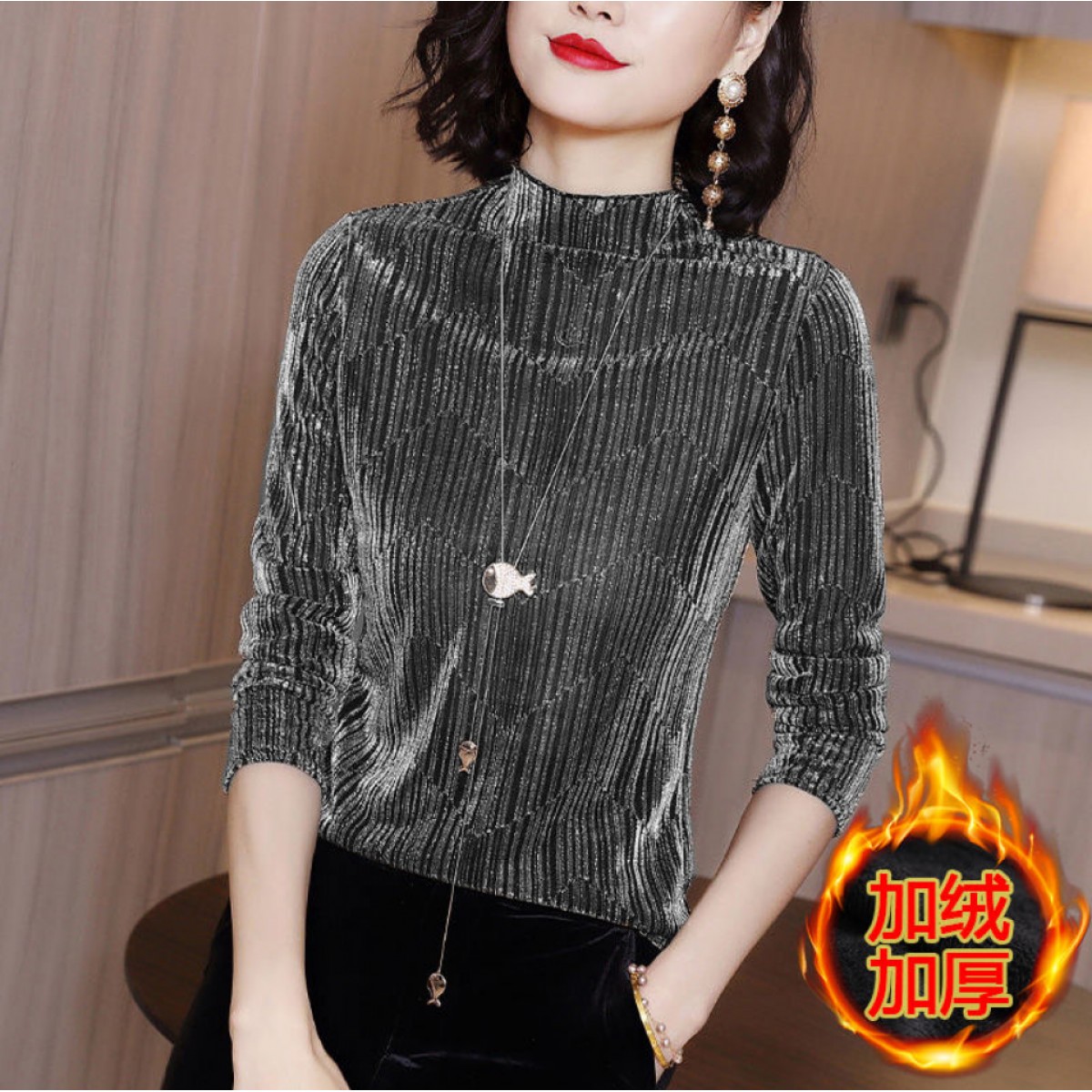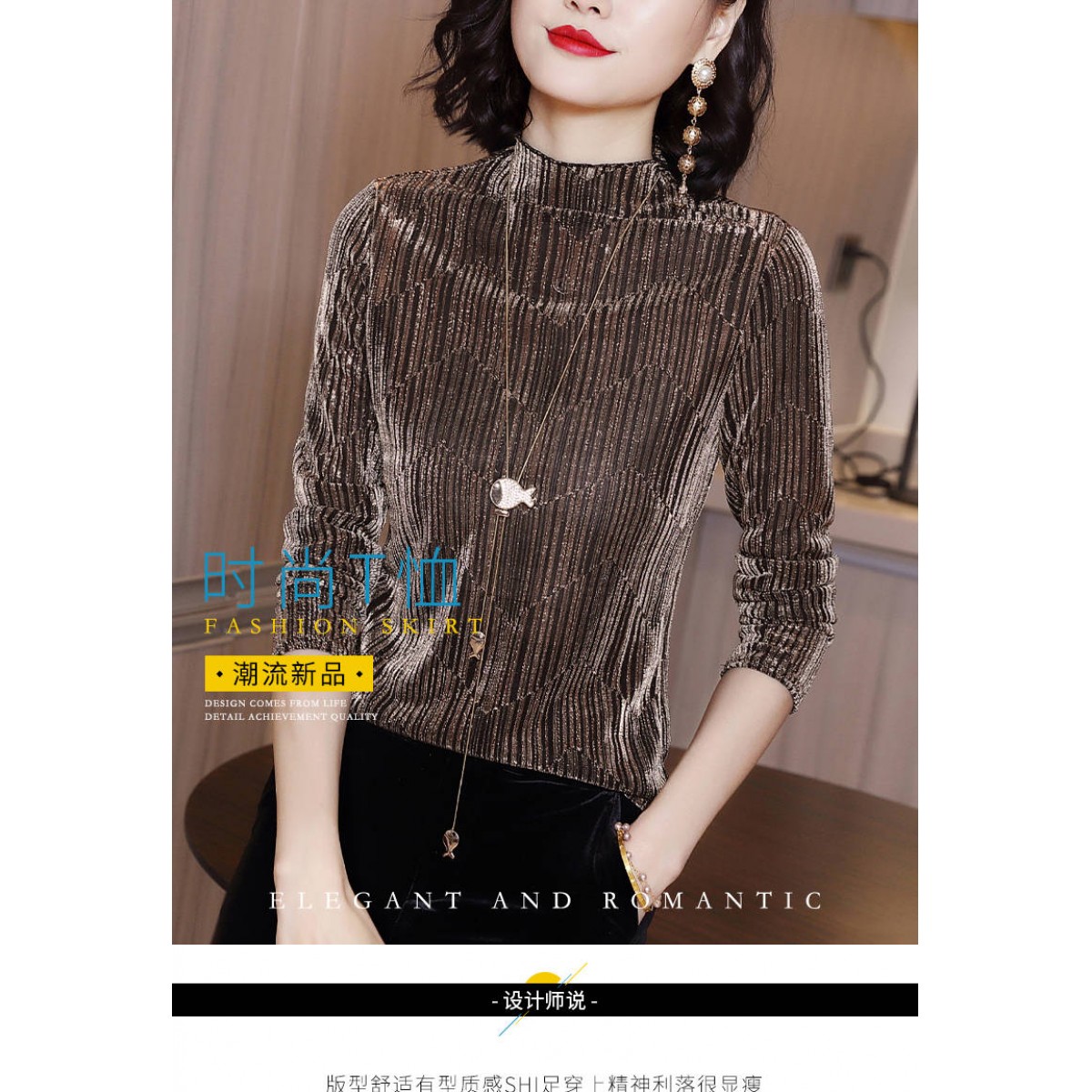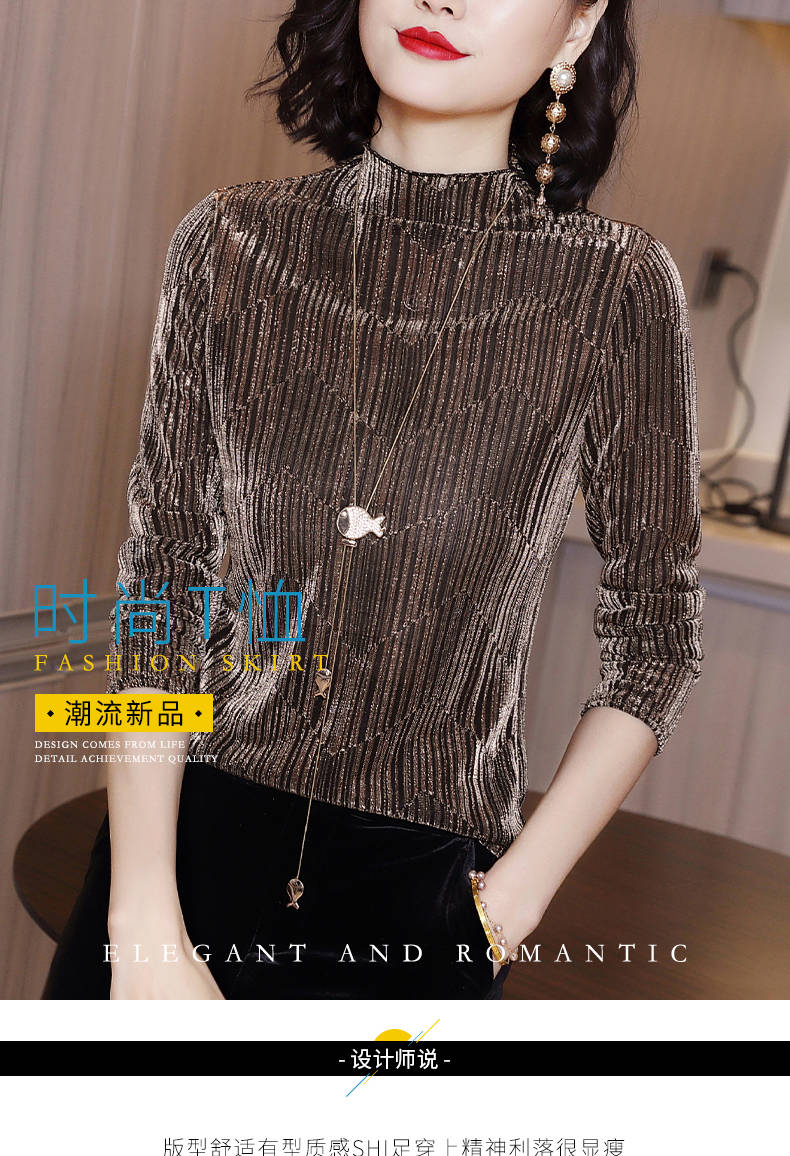 商品名稱:2019秋冬新款加絨/不加絨 T恤女韓版氣質(zhì)立領(lǐng)修身打底衫長(zhǎng)袖上衣