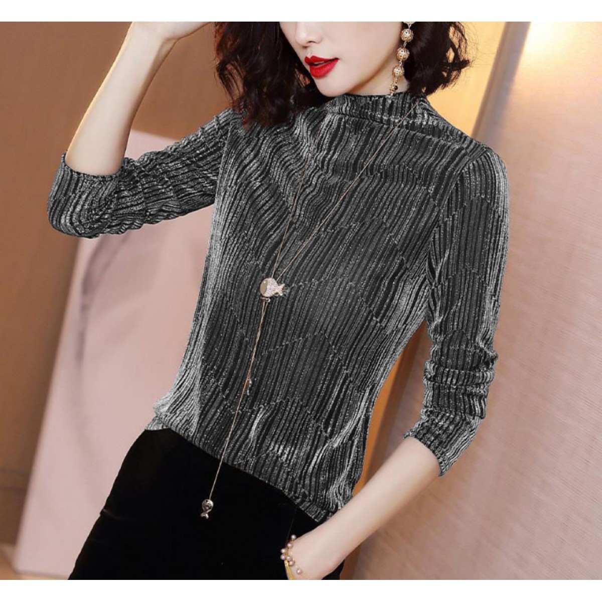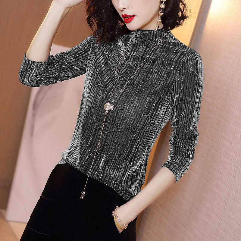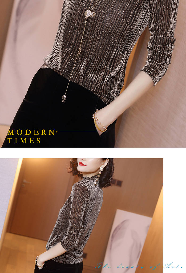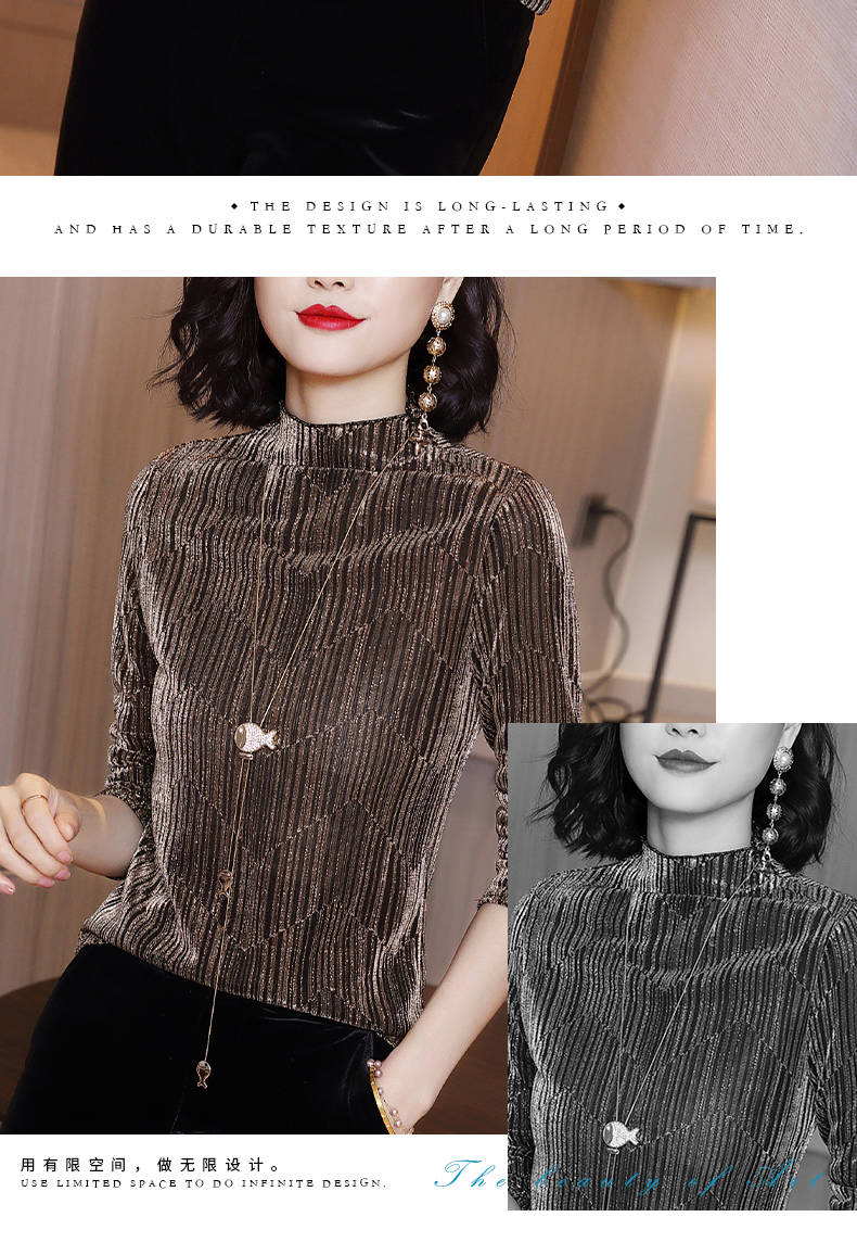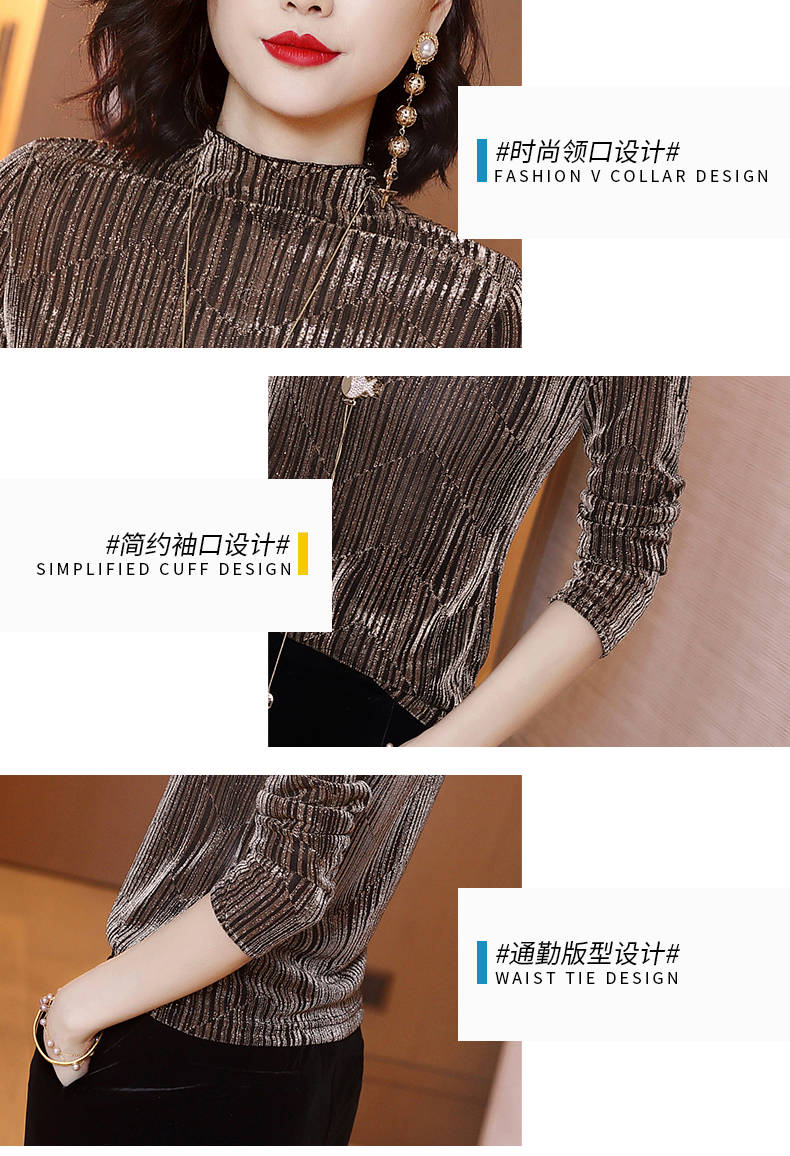 商品名稱:2019秋冬新款加絨/不加絨 T恤女韓版氣質(zhì)立領(lǐng)修身打底衫長(zhǎng)袖上衣