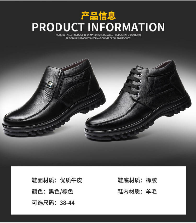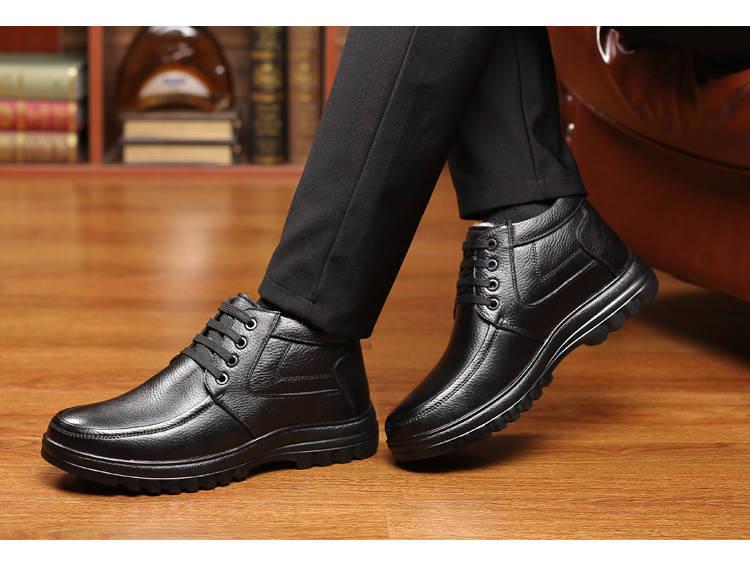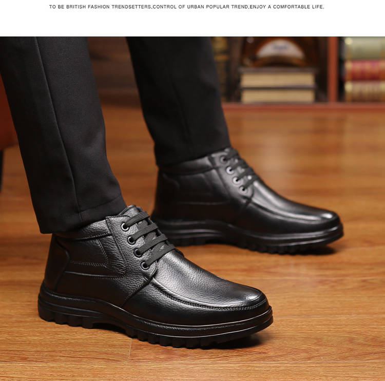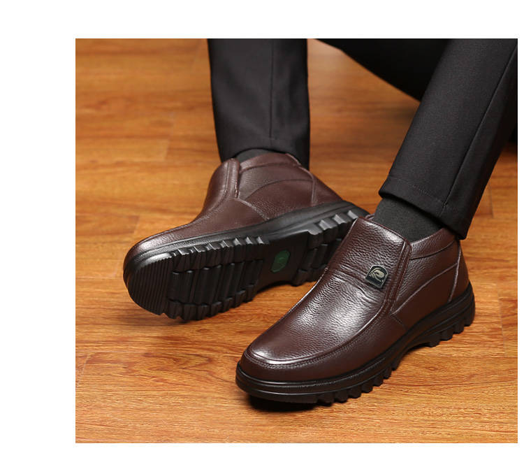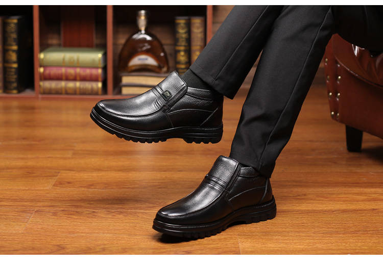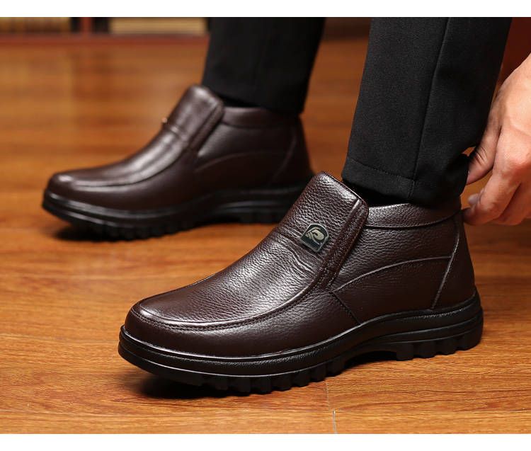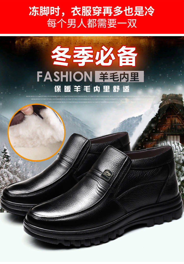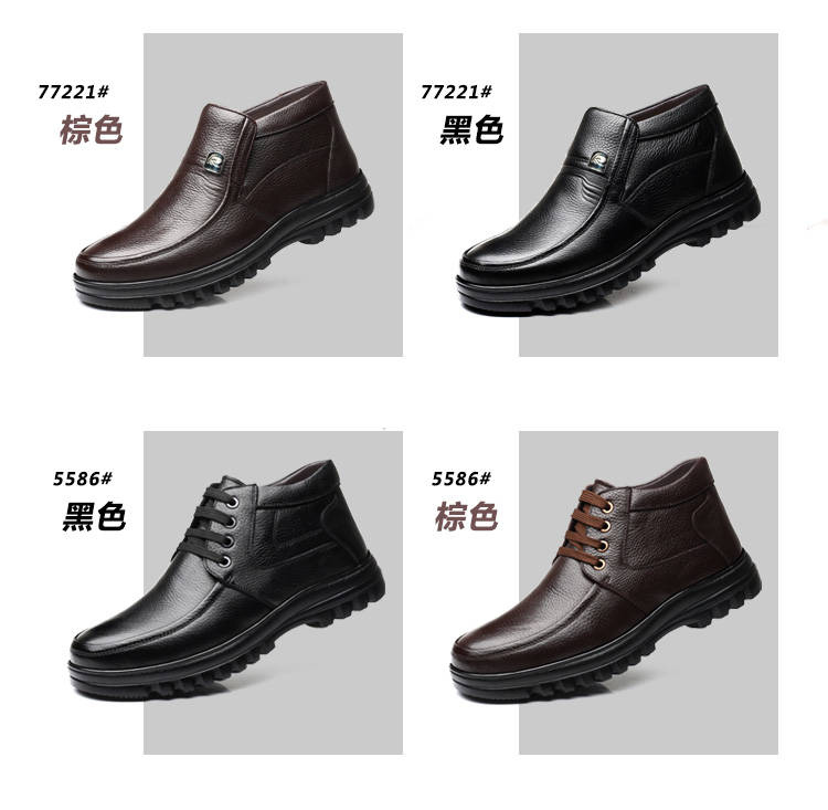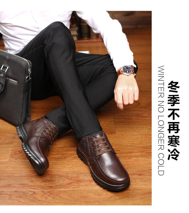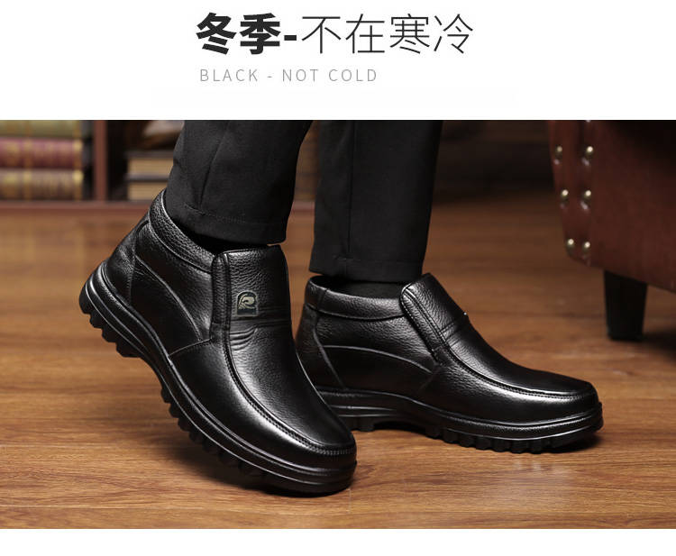 商品名稱:【牛皮頭層】男士真皮棉鞋中老年爸爸鞋冬季加絨保暖高幫男鞋加毛