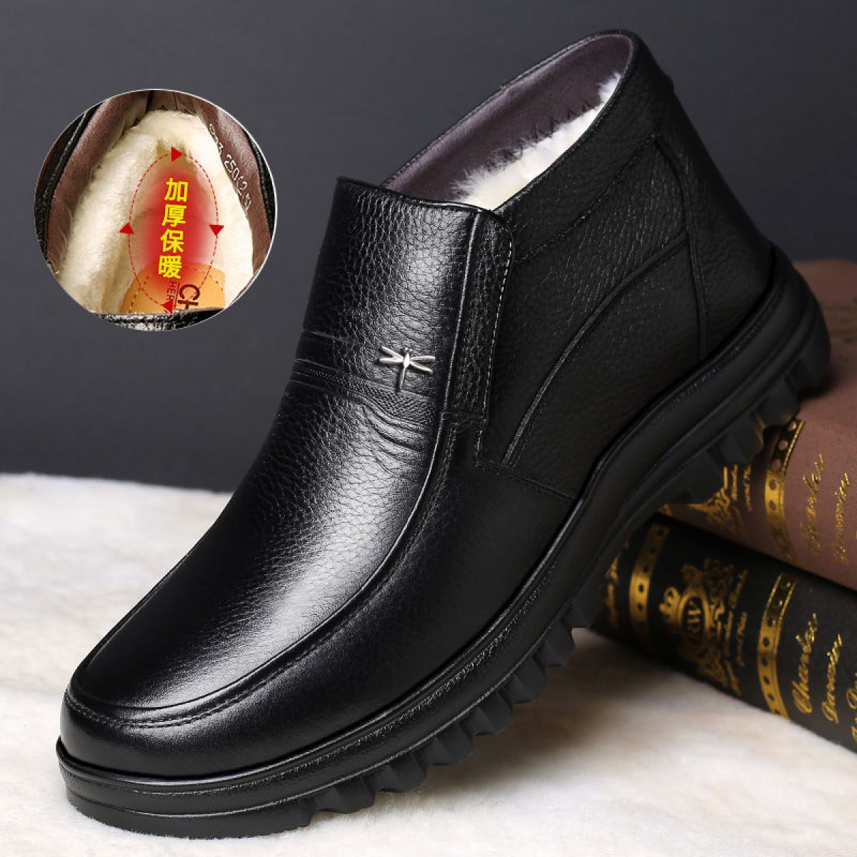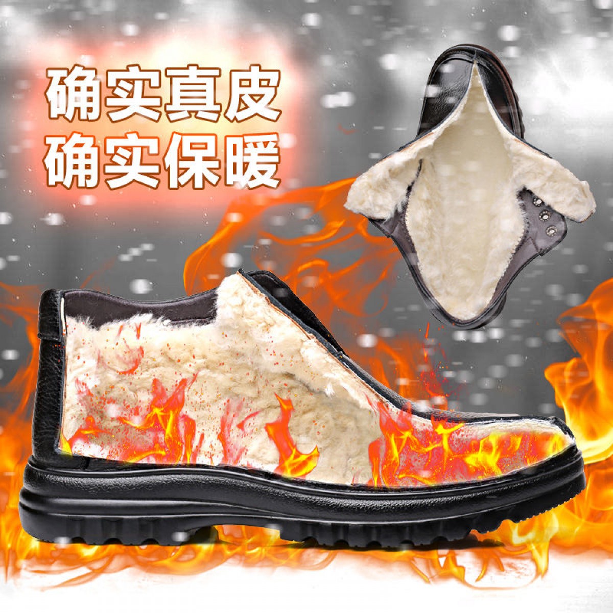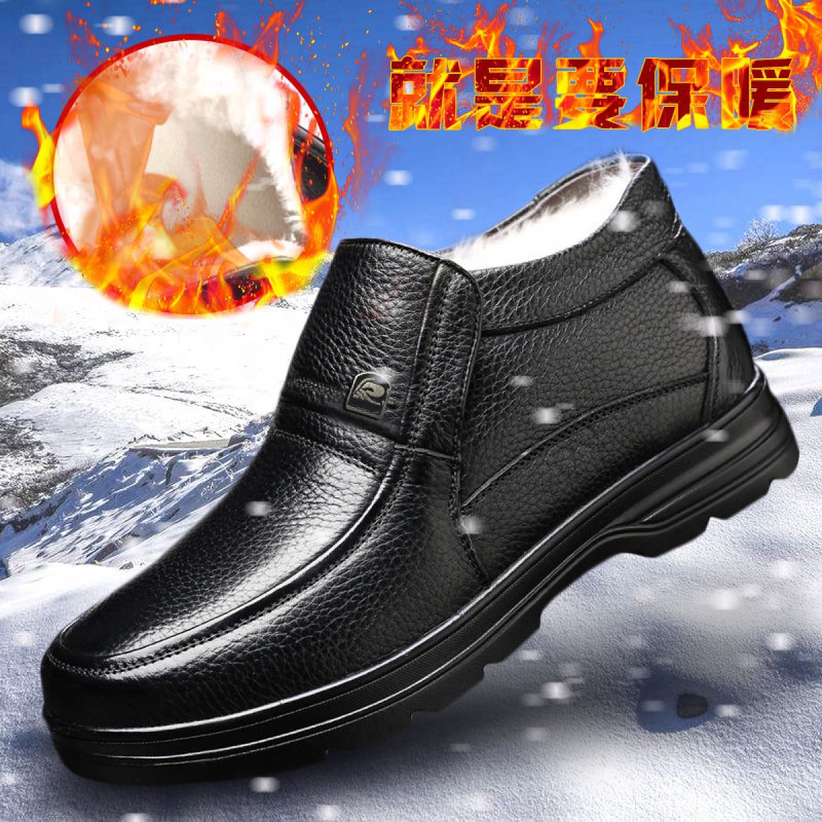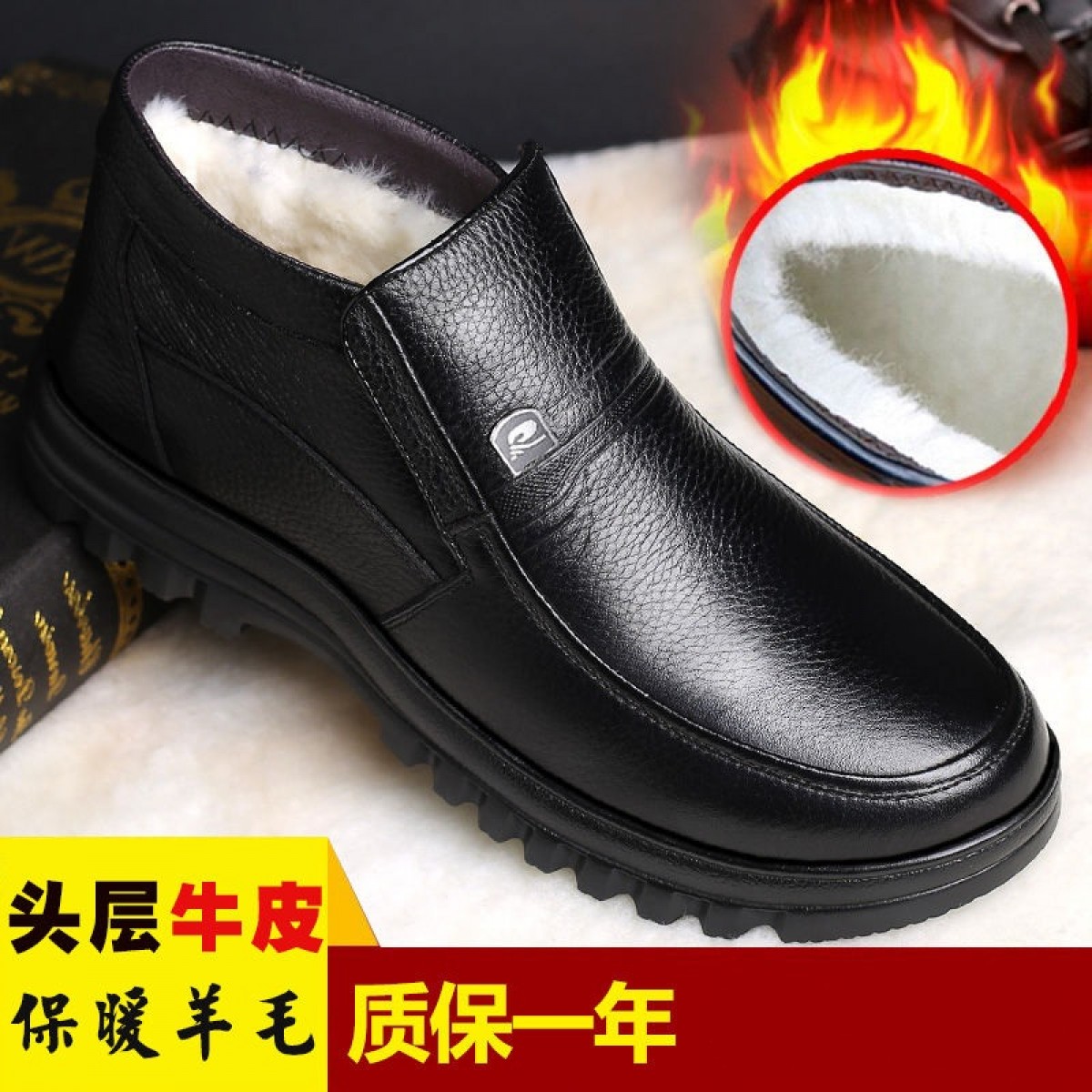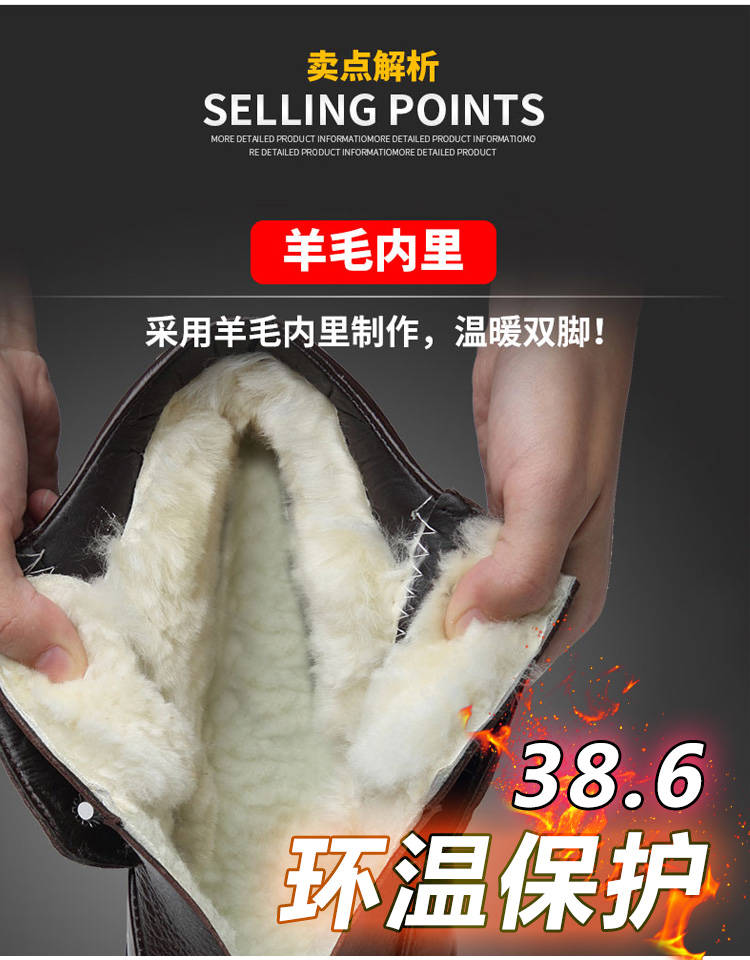 商品名稱:【牛皮頭層】男士真皮棉鞋中老年爸爸鞋冬季加絨保暖高幫男鞋加毛
