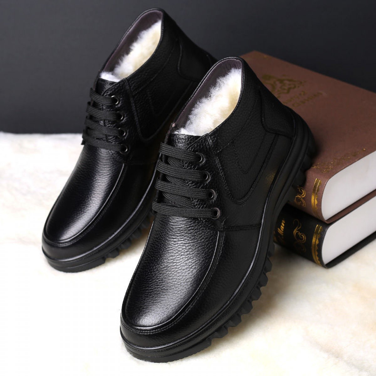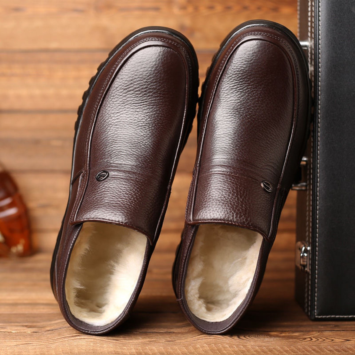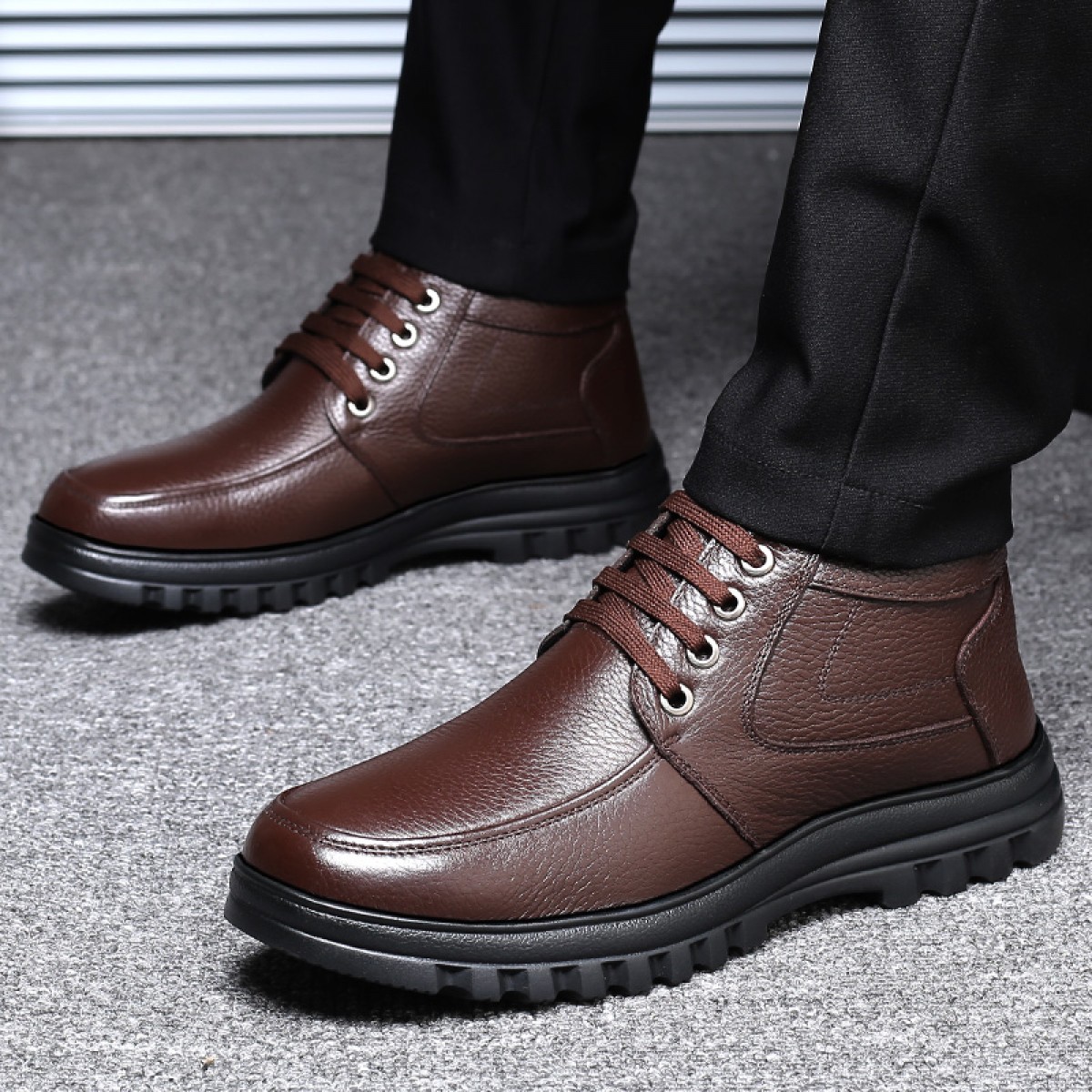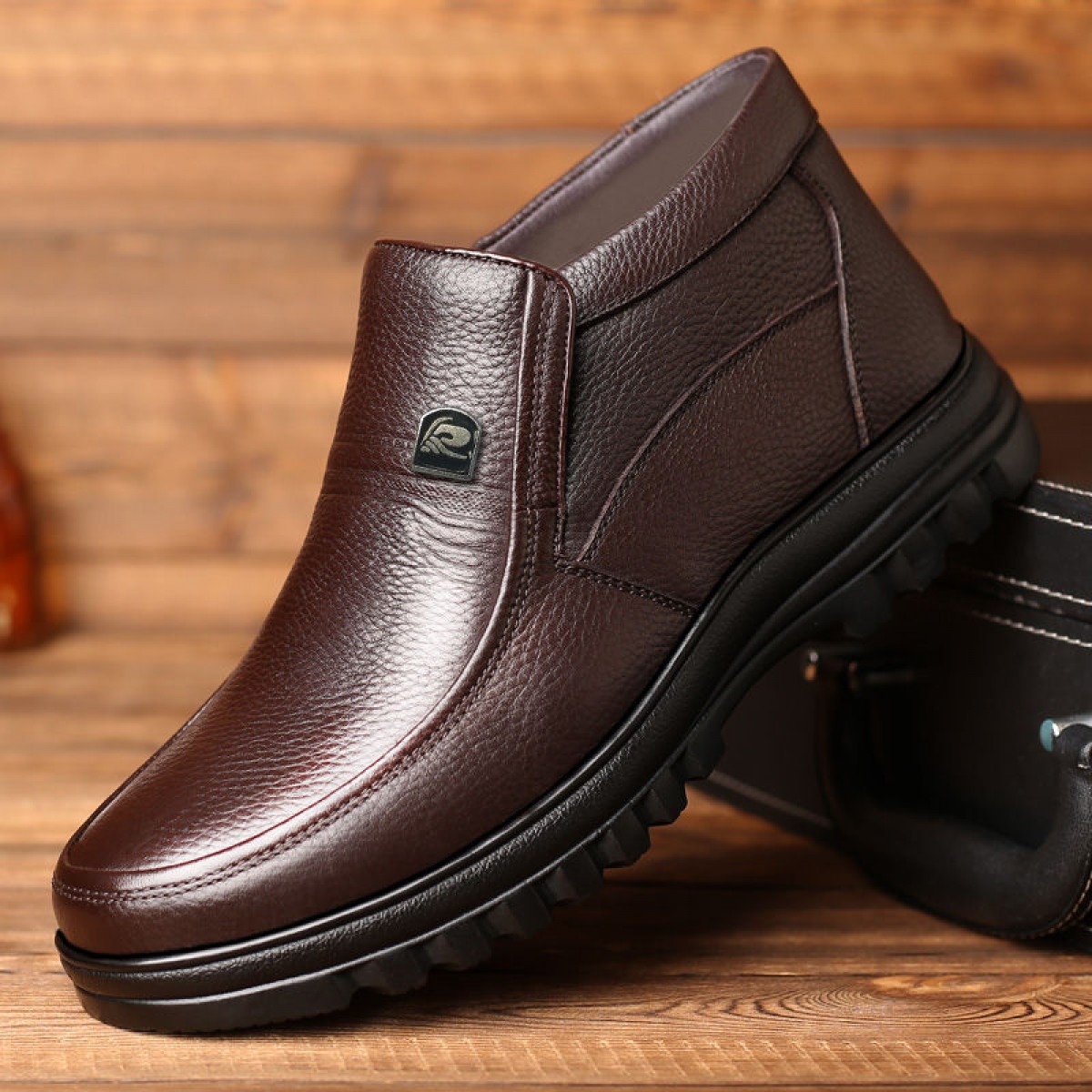 商品名稱:【牛皮頭層】男士真皮棉鞋中老年爸爸鞋冬季加絨保暖高幫男鞋加毛