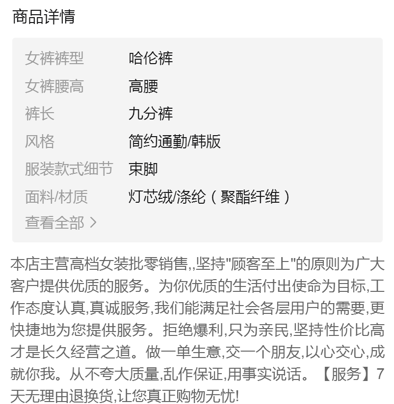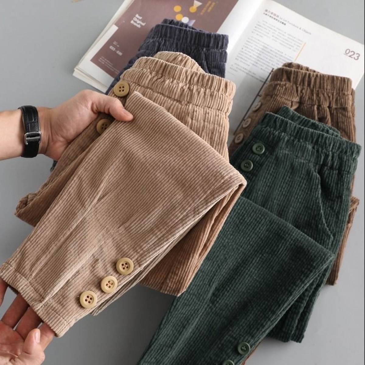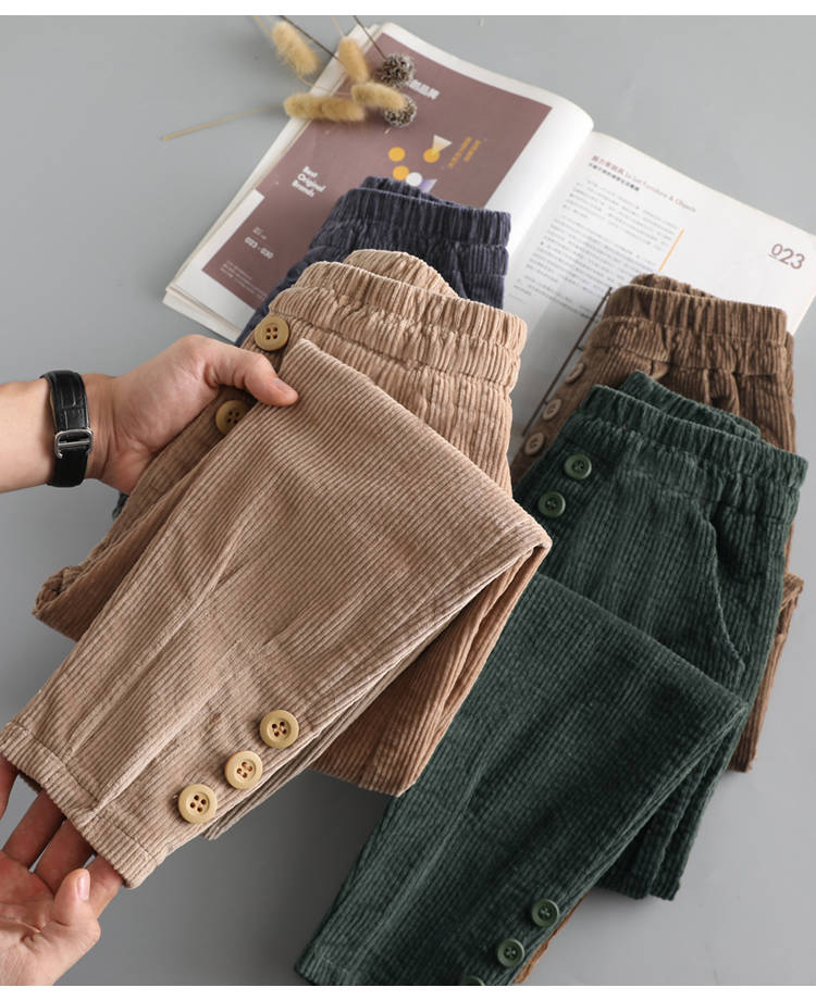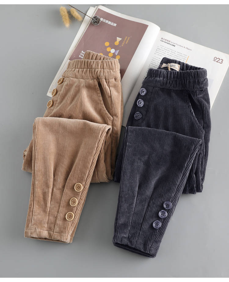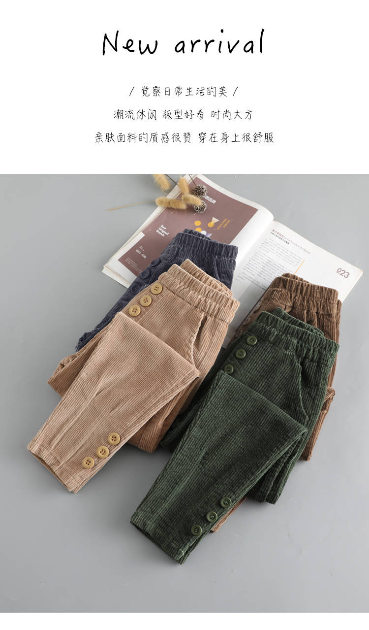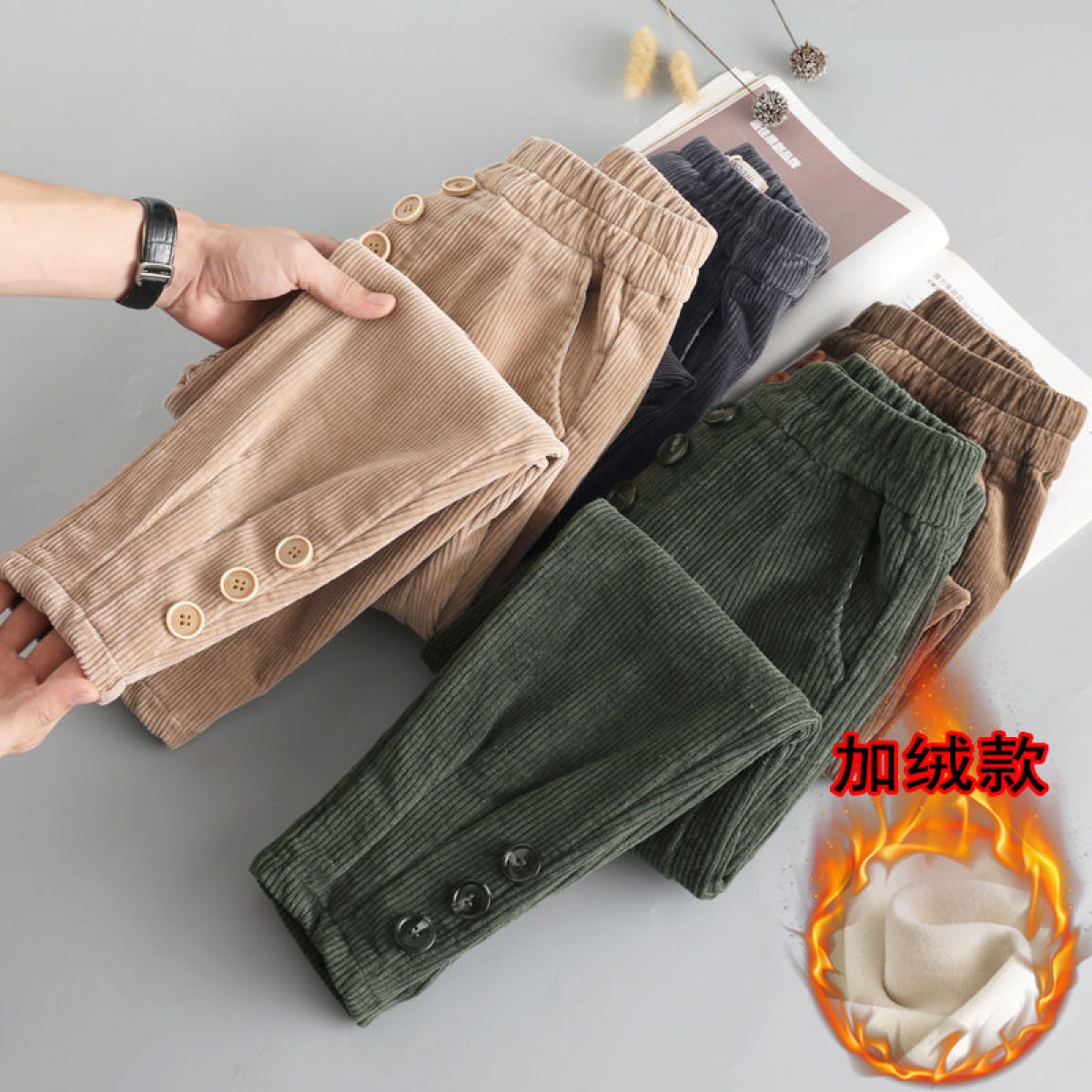 商品名稱:加絨網(wǎng)紅秋冬松緊腰燈芯絨休閑褲女2019新款女百搭寬松哈倫褲