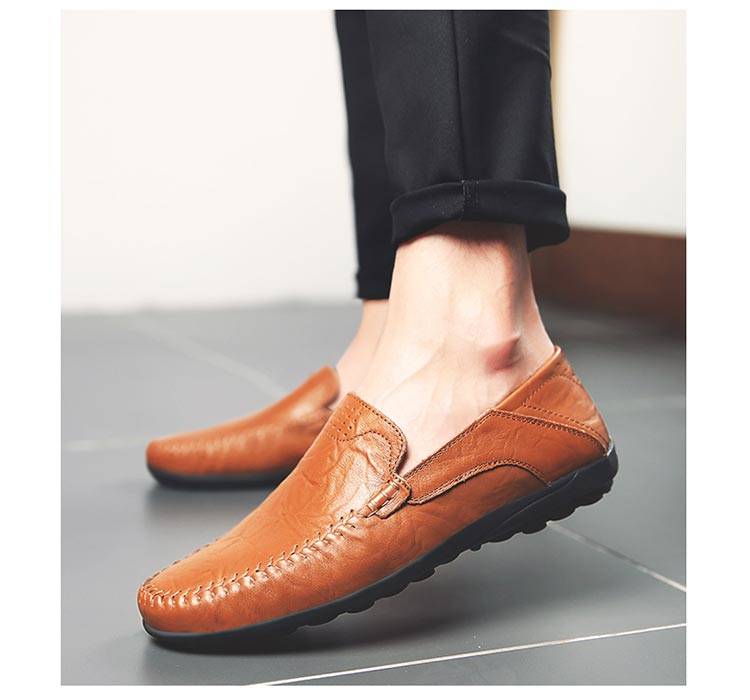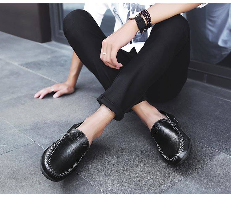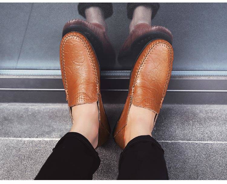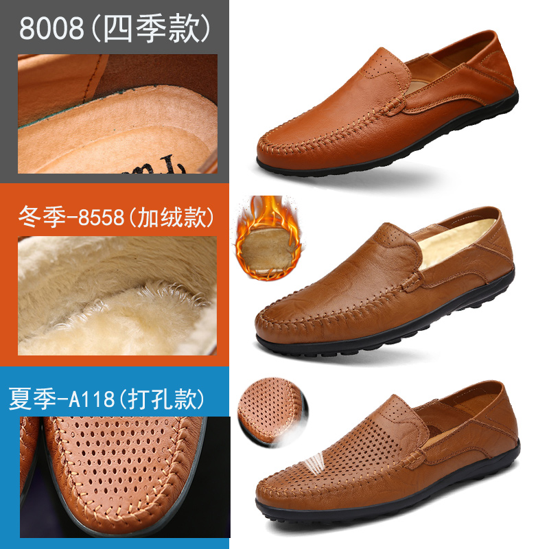 商品名稱:【真牛皮加絨可選】男士休閑皮鞋男軟底軟皮爸爸鞋豆豆鞋男