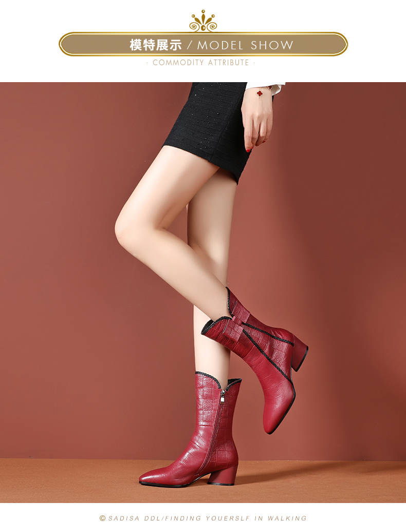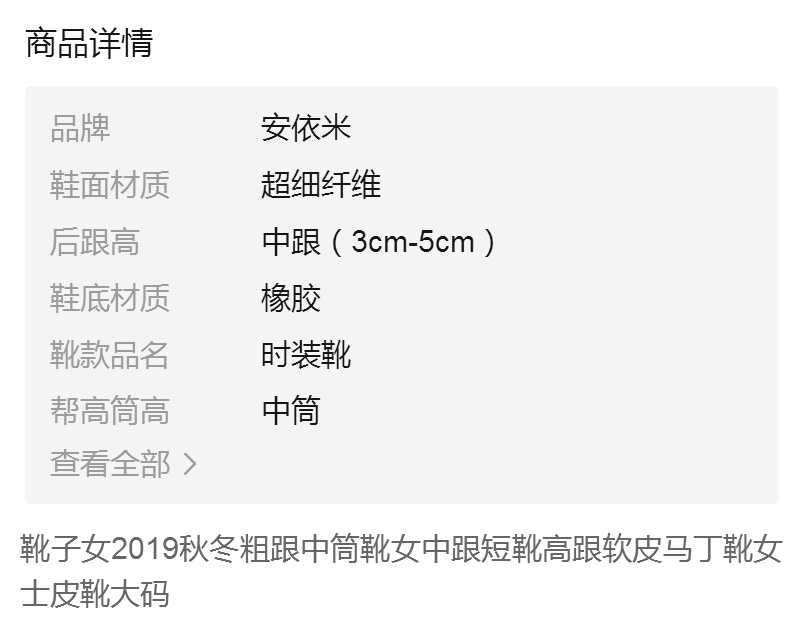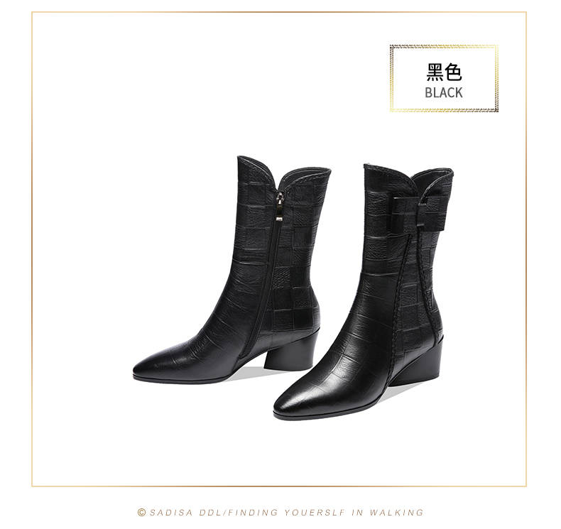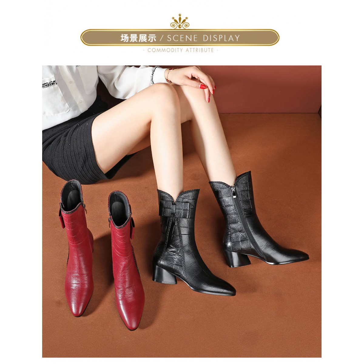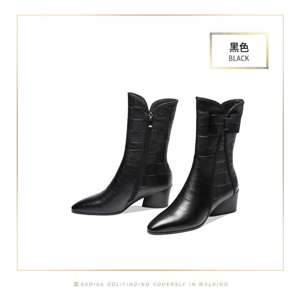 商品名稱:2019新秋冬粗跟中筒靴女中跟短靴軟皮馬丁靴女士皮靴