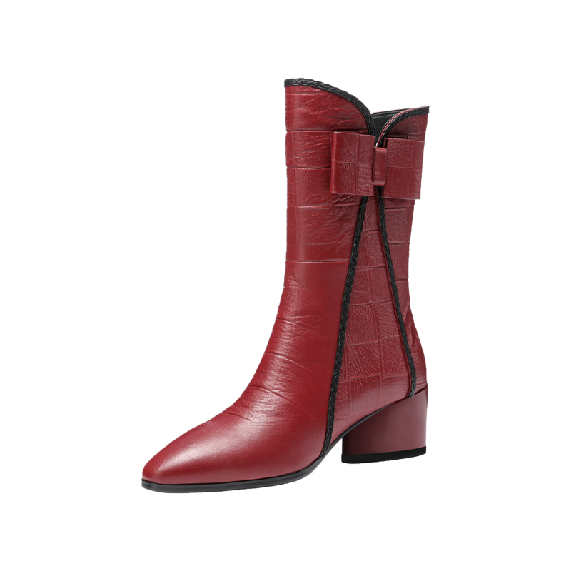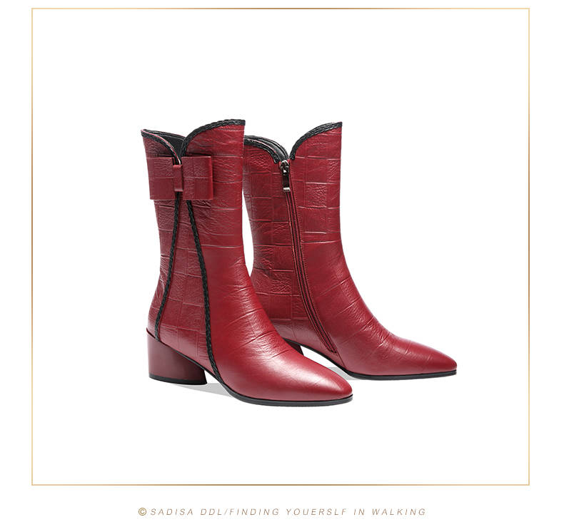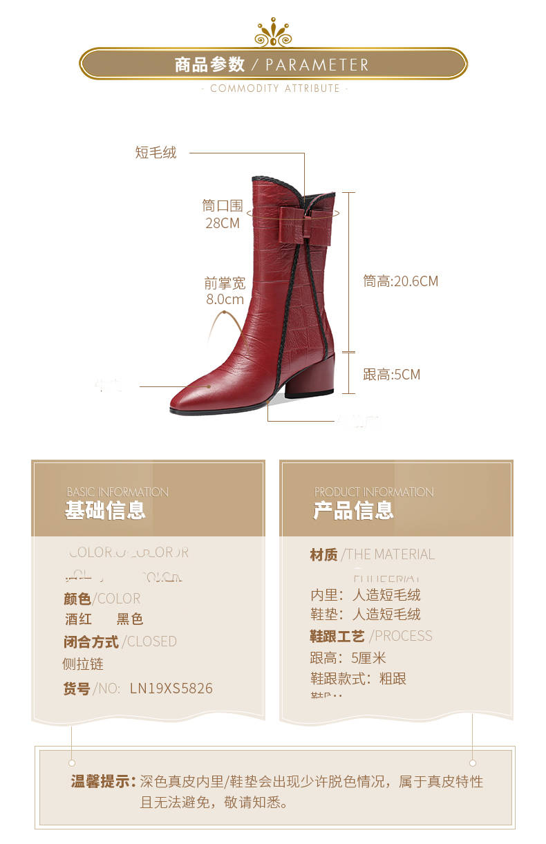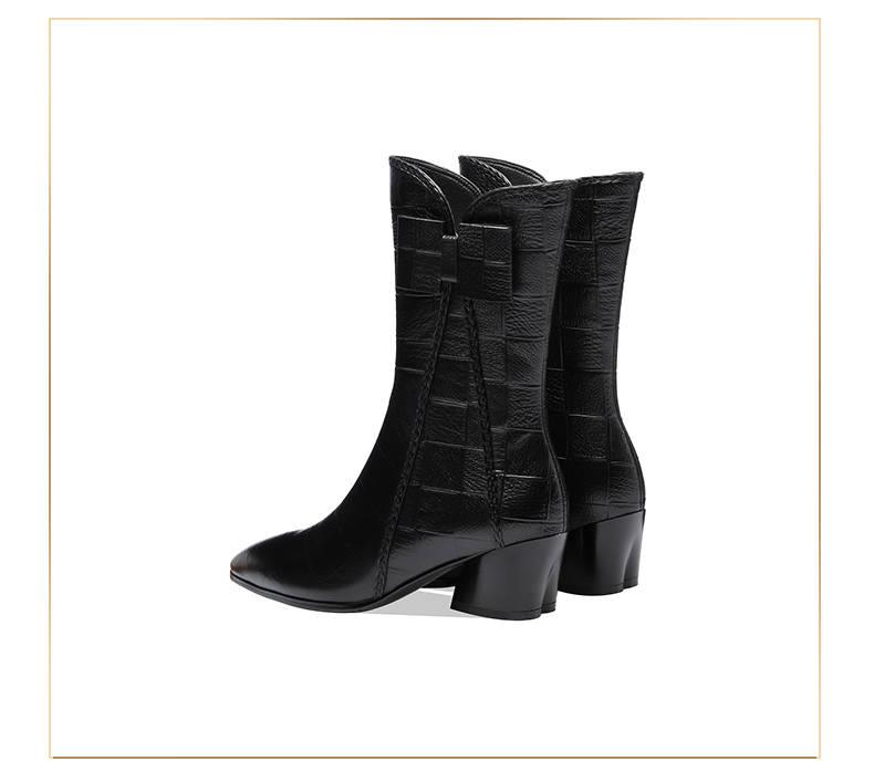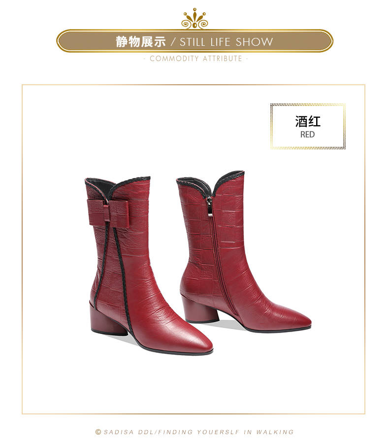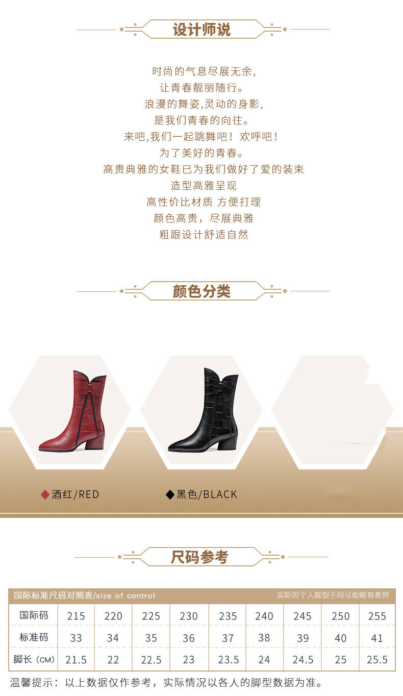 商品名稱:2019新秋冬粗跟中筒靴女中跟短靴軟皮馬丁靴女士皮靴