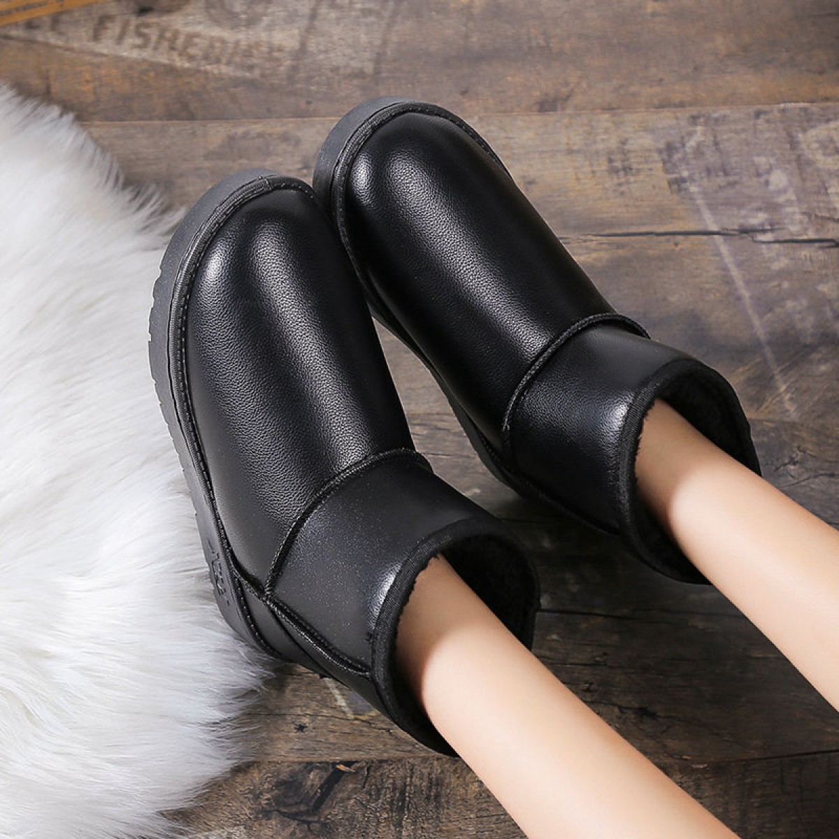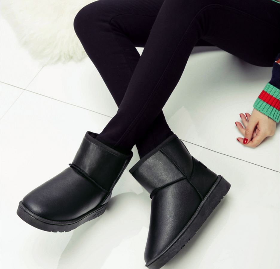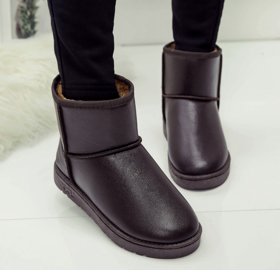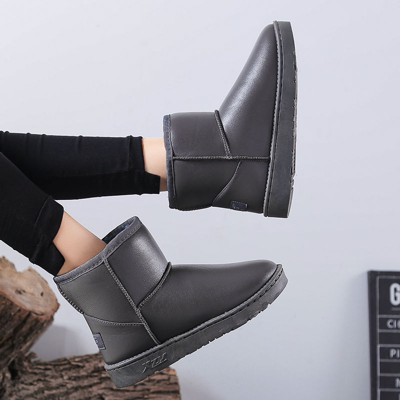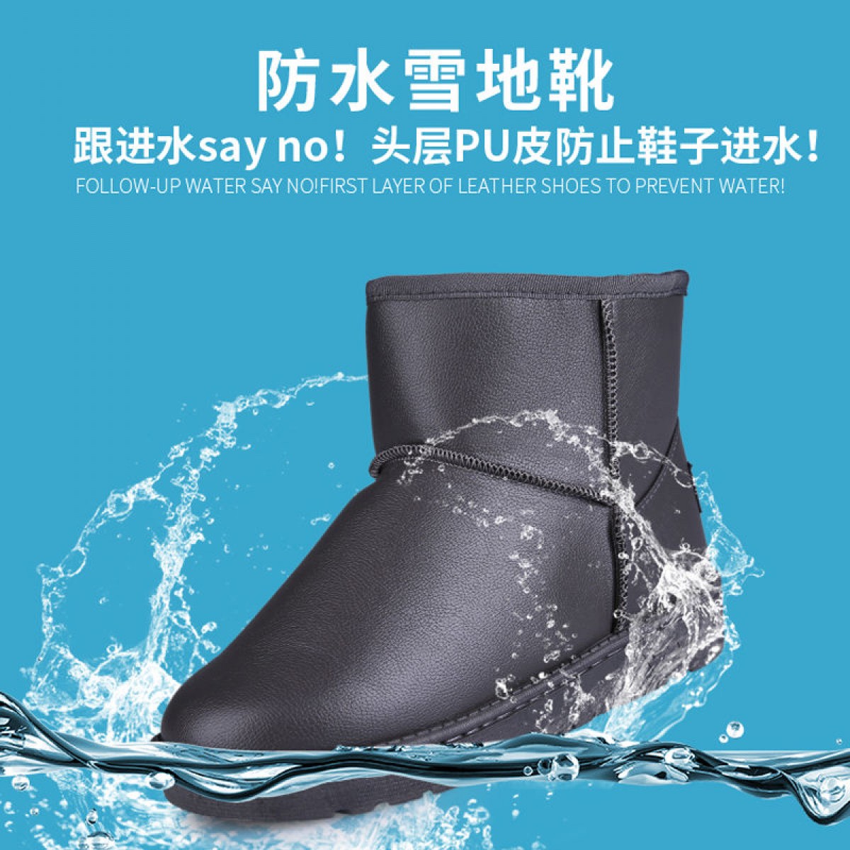 商品名稱:冬季皮面雪地靴女防水防滑短筒保暖加絨加厚短靴韓版靴子學生棉鞋