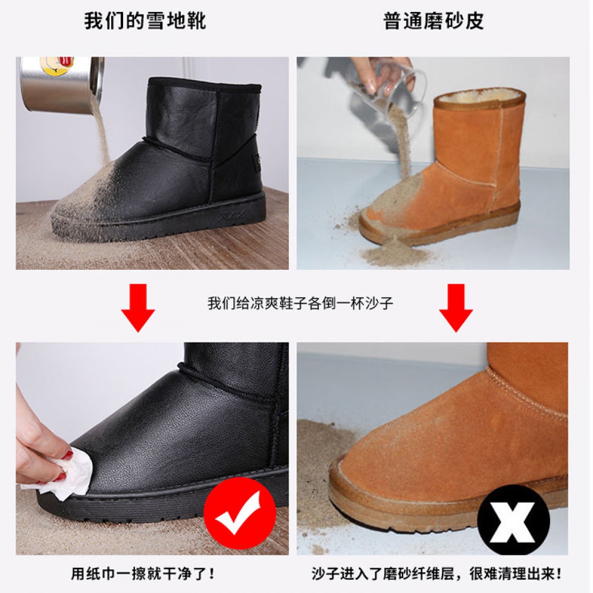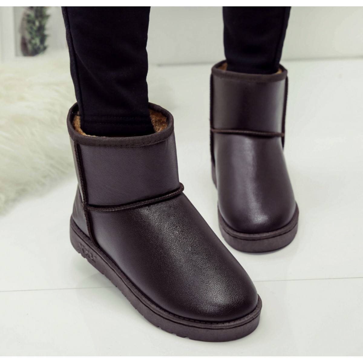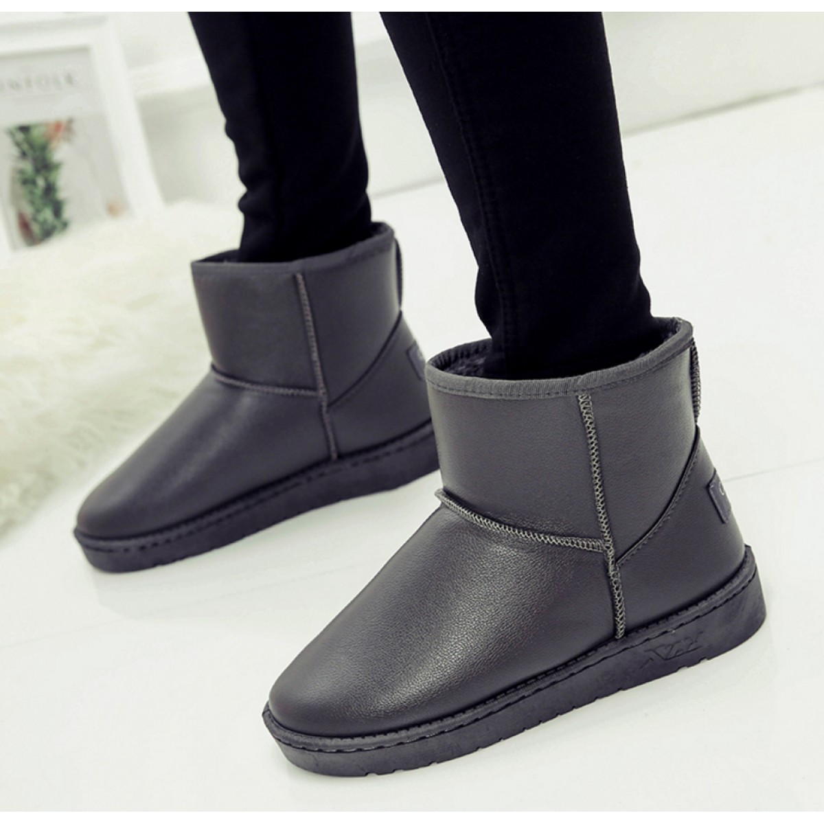 商品名稱:冬季皮面雪地靴女防水防滑短筒保暖加絨加厚短靴韓版靴子學生棉鞋