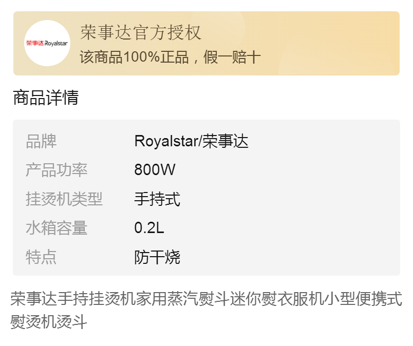 商品名稱:榮事達(dá)手持掛燙機(jī)家用蒸汽熨斗迷你熨衣服機(jī)小型便攜式熨燙機(jī)燙斗