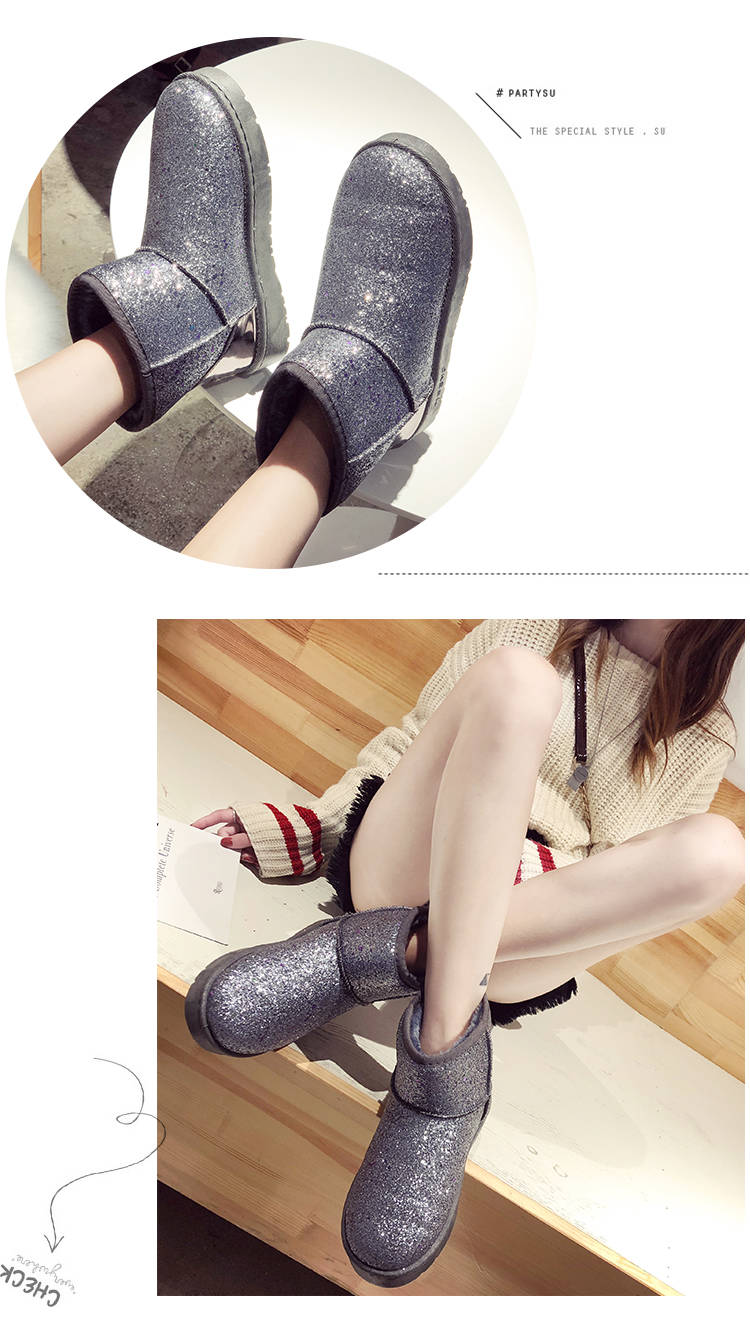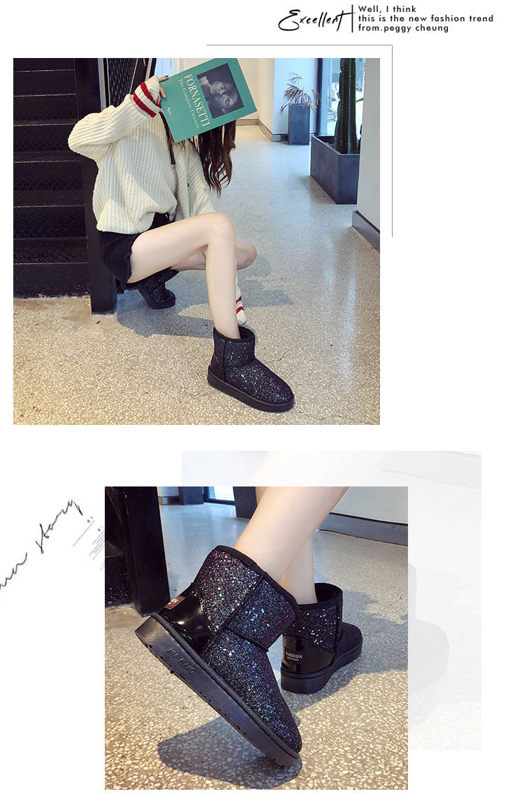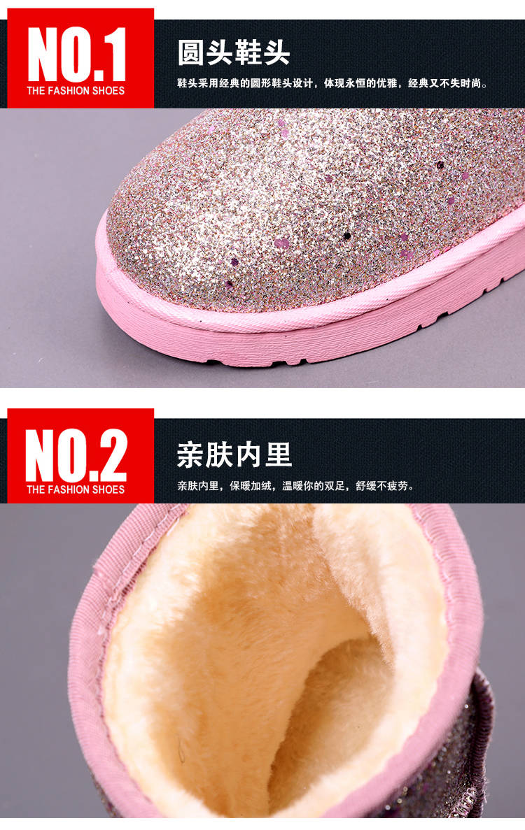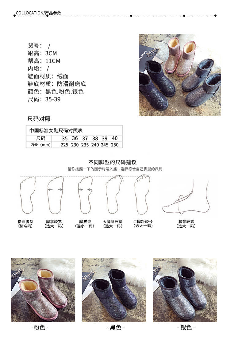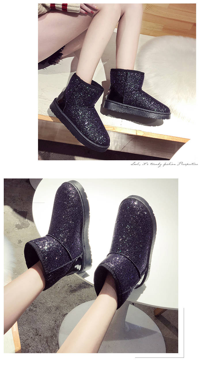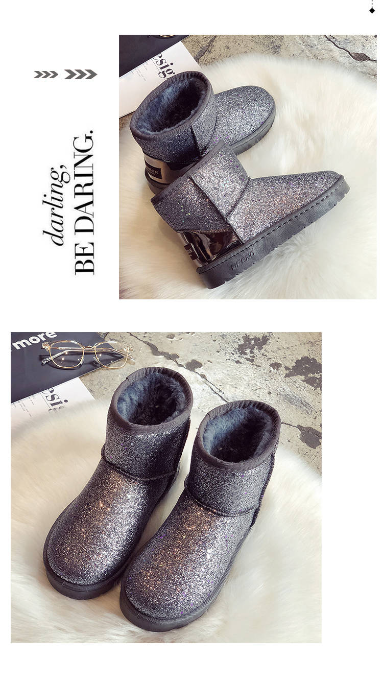 商品名稱:冬季潮亮片短靴平底學(xué)生雪地靴加厚短筒棉鞋加絨防水防滑面包女鞋