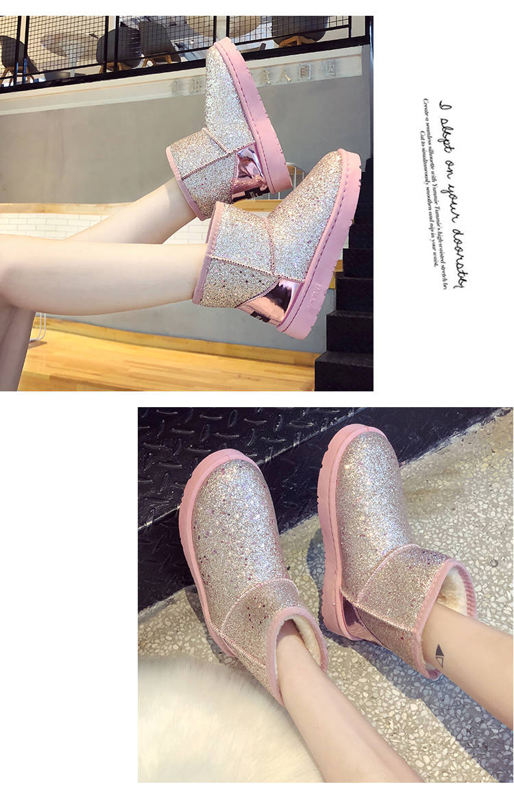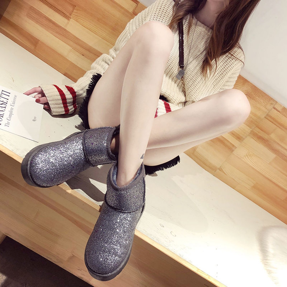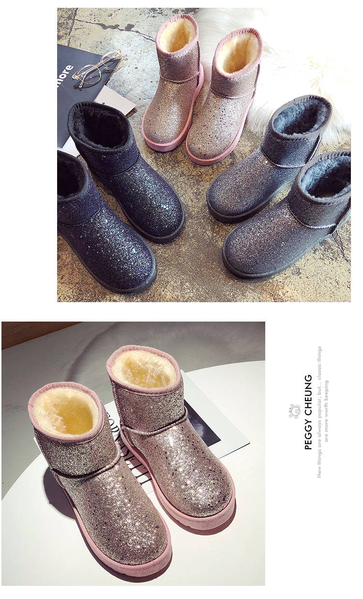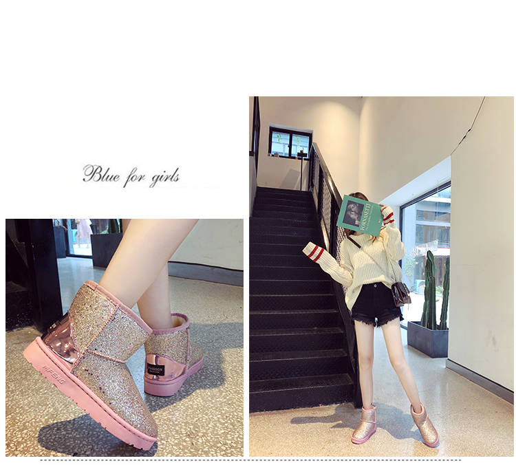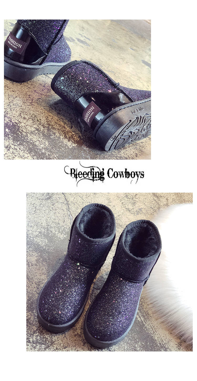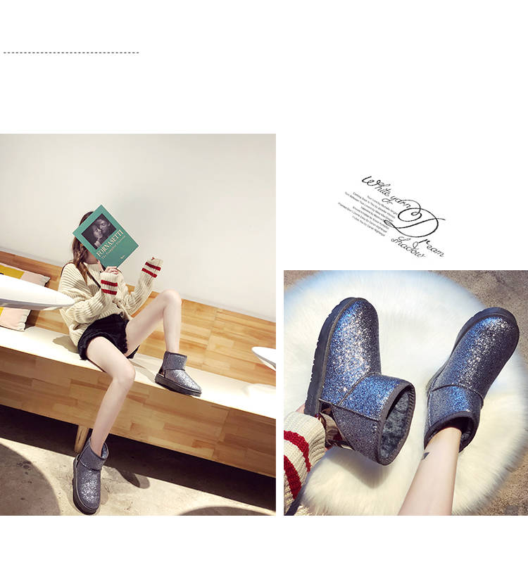 商品名稱:冬季潮亮片短靴平底學(xué)生雪地靴加厚短筒棉鞋加絨防水防滑面包女鞋