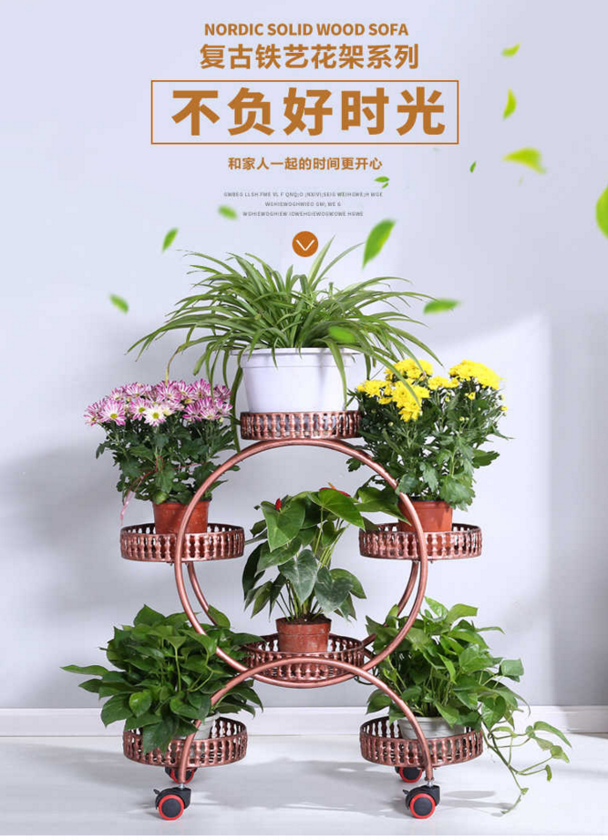 商品名稱:花架鐵藝帶輪落地式綠蘿花盆架客廳陽臺花架子多層室內(nèi)特價省空間