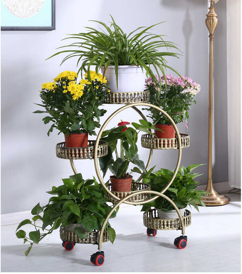 花架鐵藝帶輪落地式綠蘿花盆架客廳陽臺花架子多層室內(nèi)特價省空間