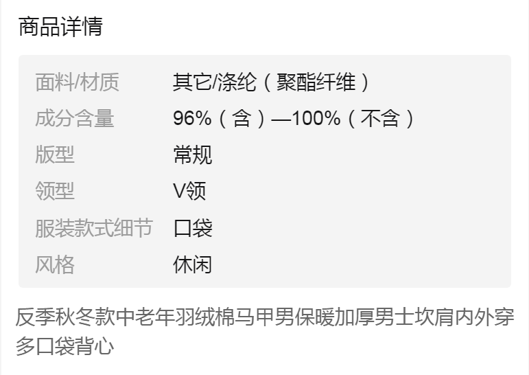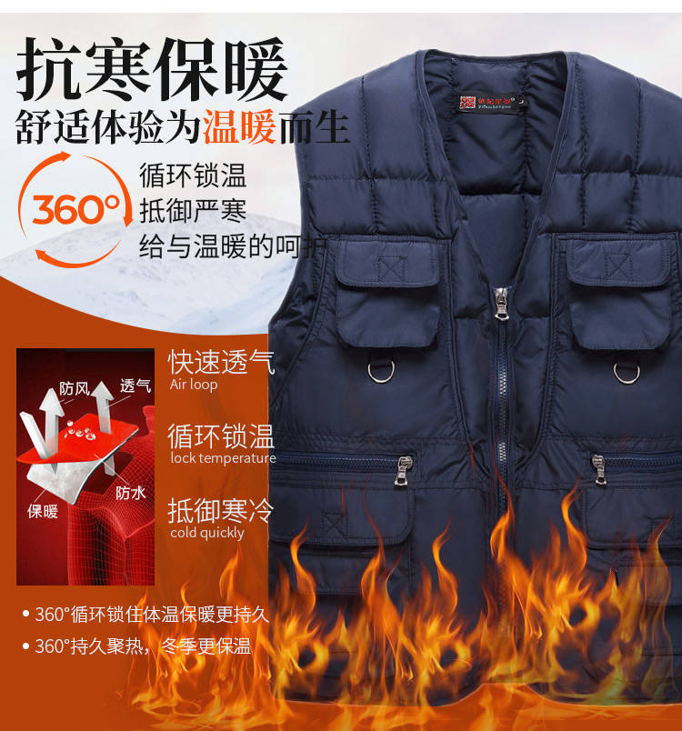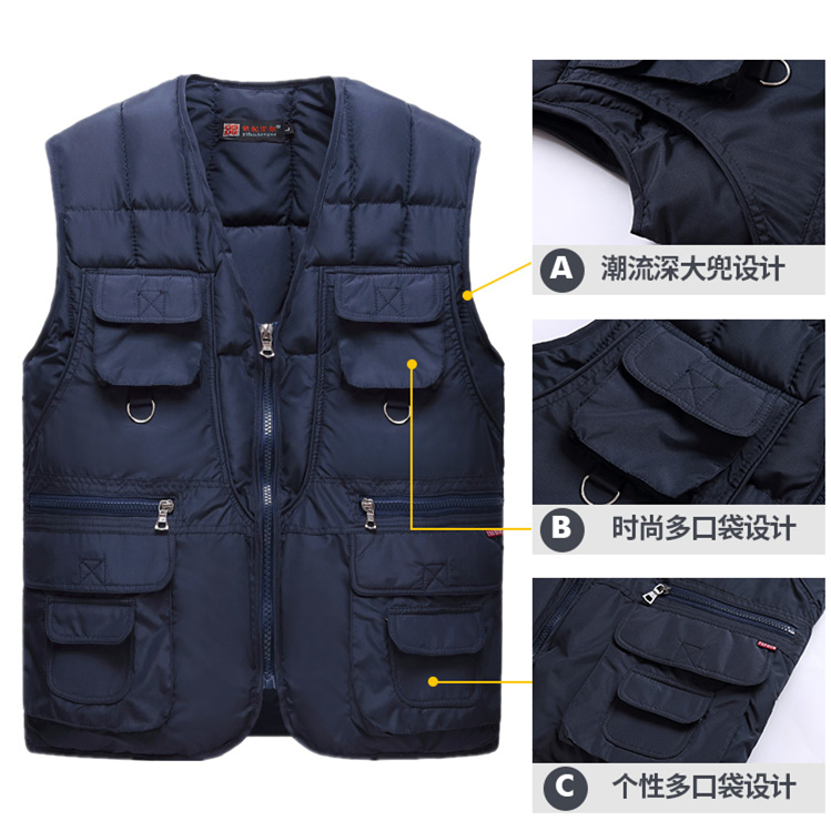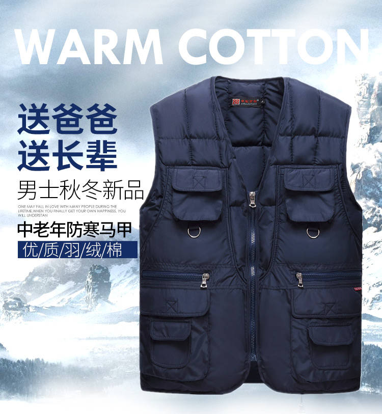 商品名稱(chēng):反季秋冬款中老年羽絨棉馬甲男保暖加厚男士坎肩內(nèi)外穿多口袋背心