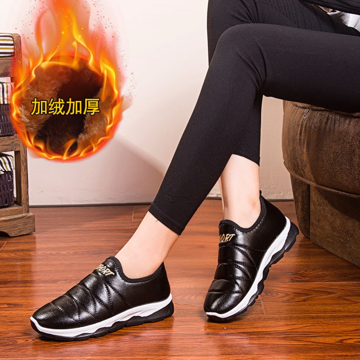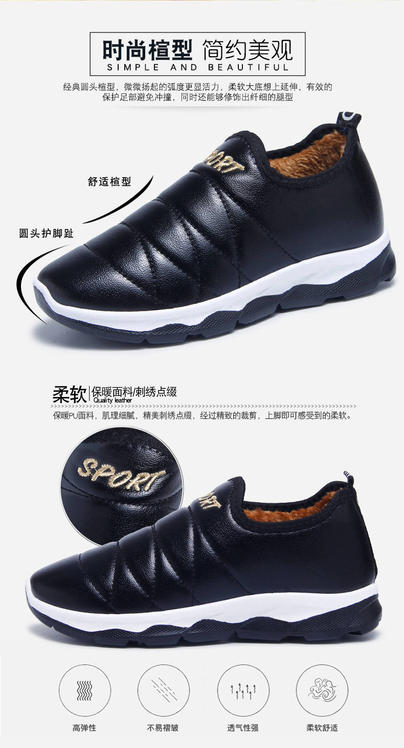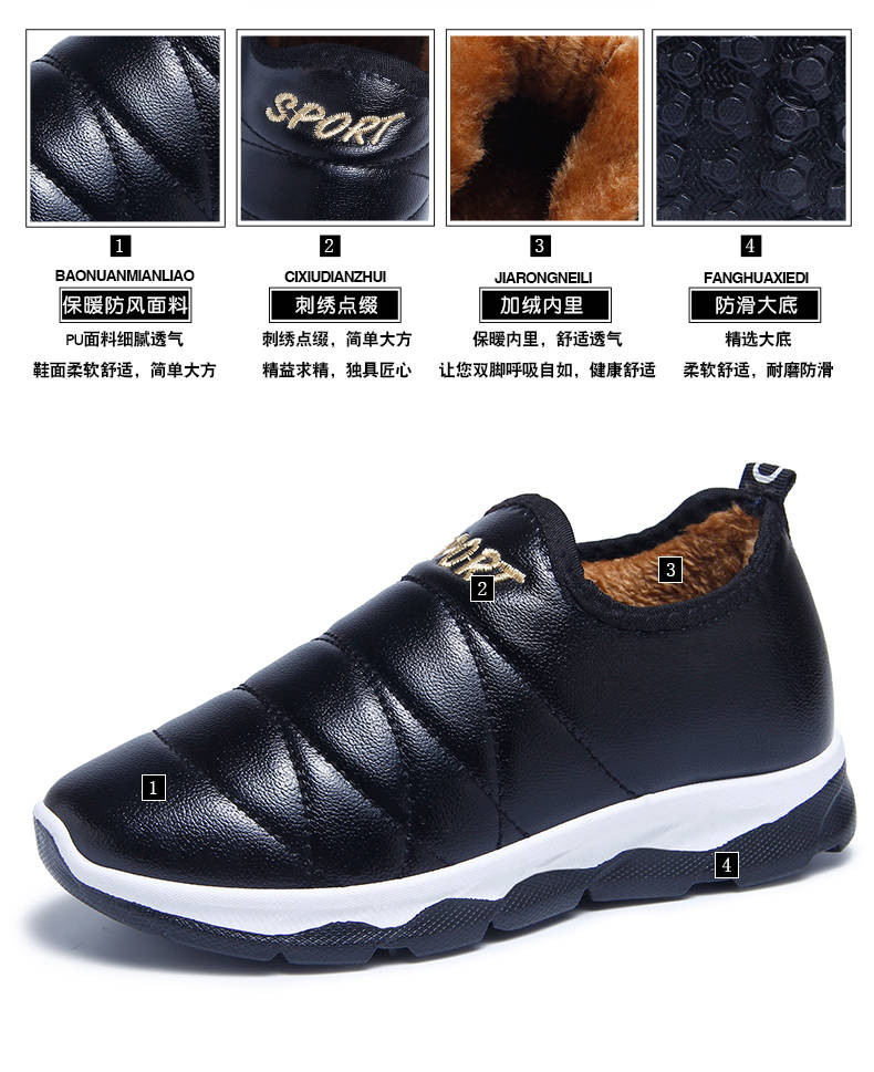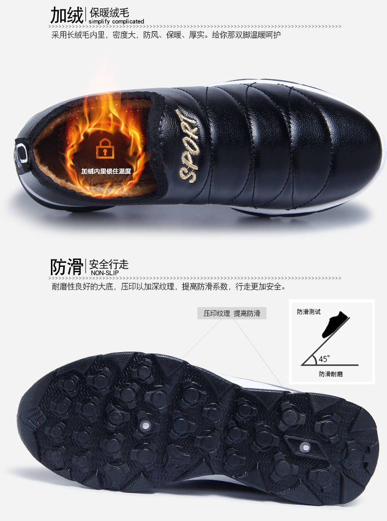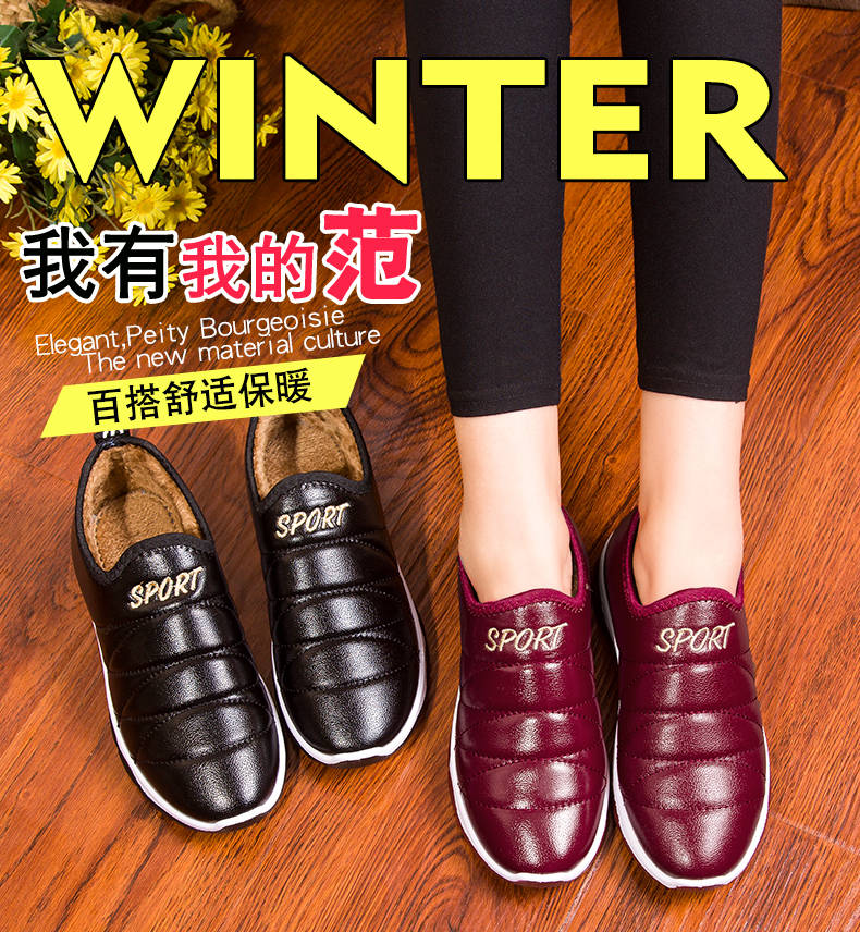 商品名稱:冬季保暖PU防水女棉鞋老北京平底防滑媽媽鞋加絨加厚雪地靴工作鞋