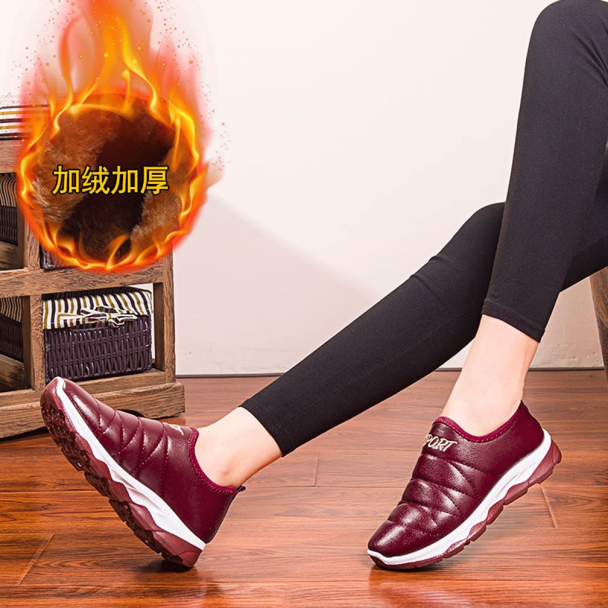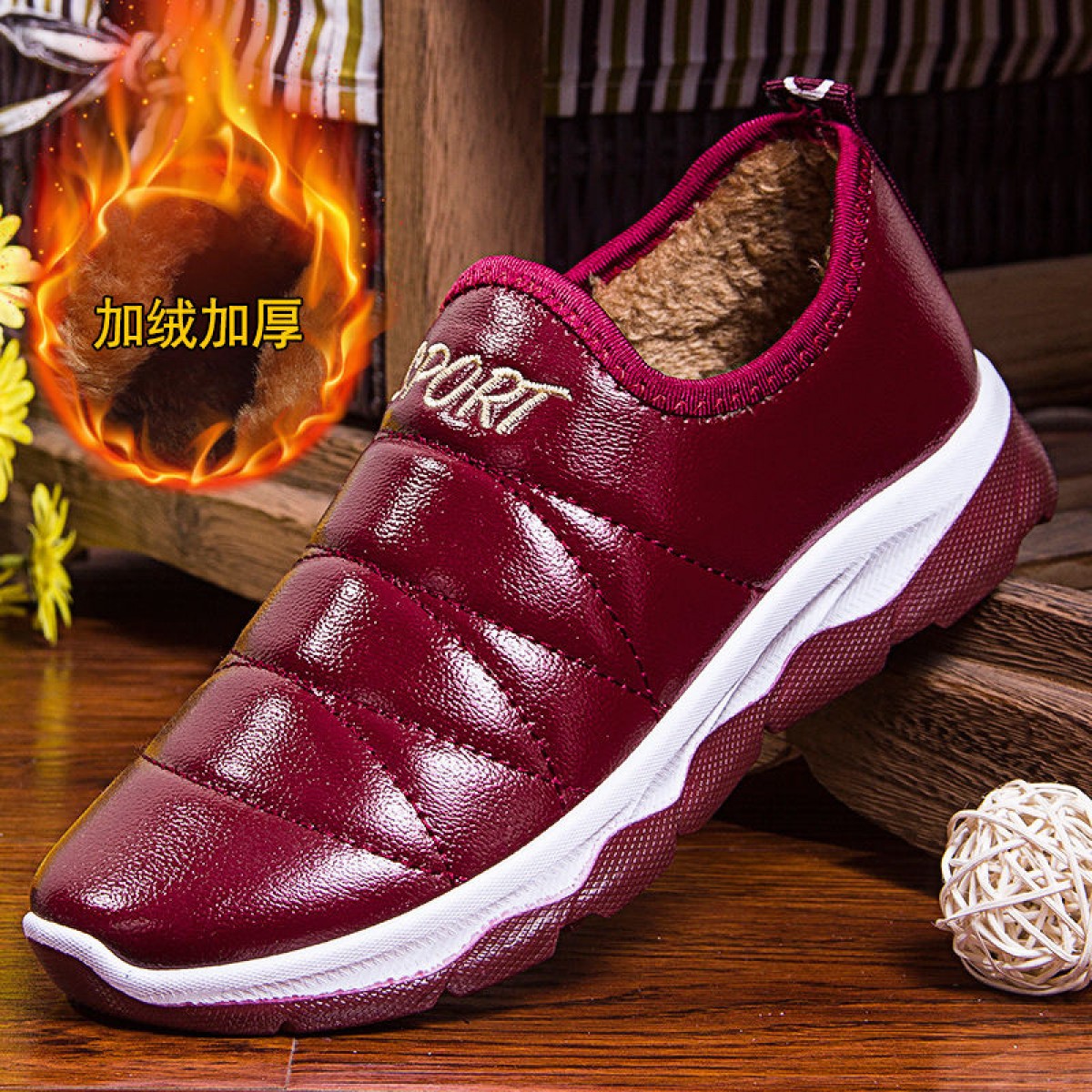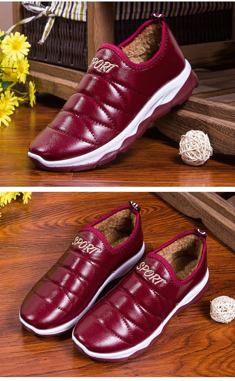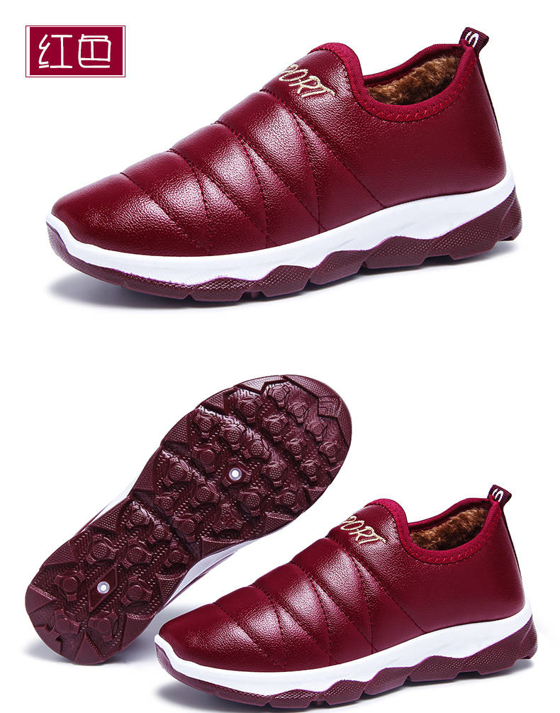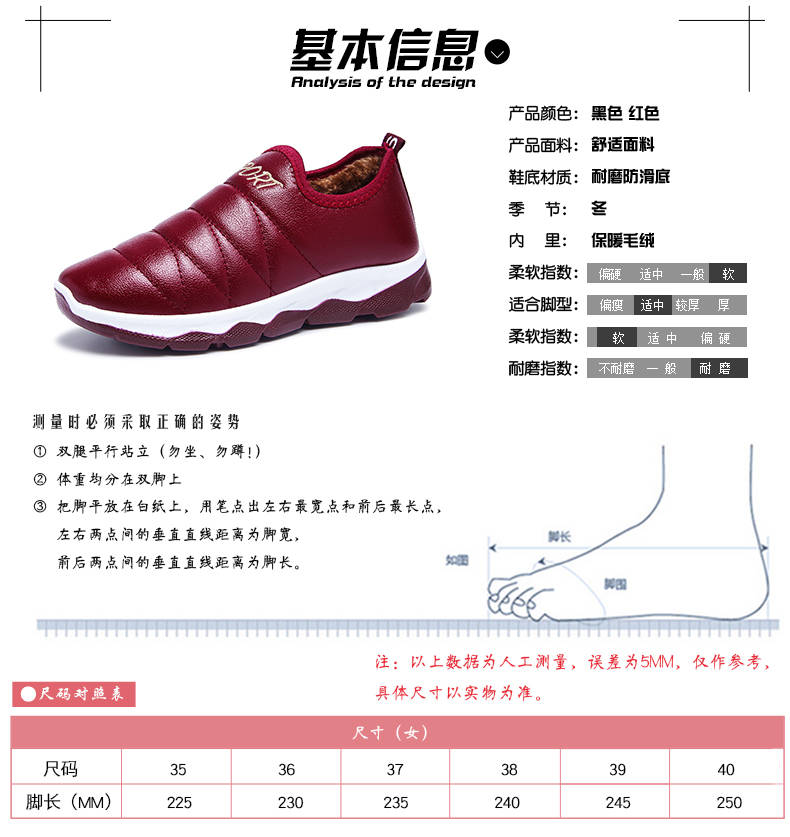 商品名稱:冬季保暖PU防水女棉鞋老北京平底防滑媽媽鞋加絨加厚雪地靴工作鞋
