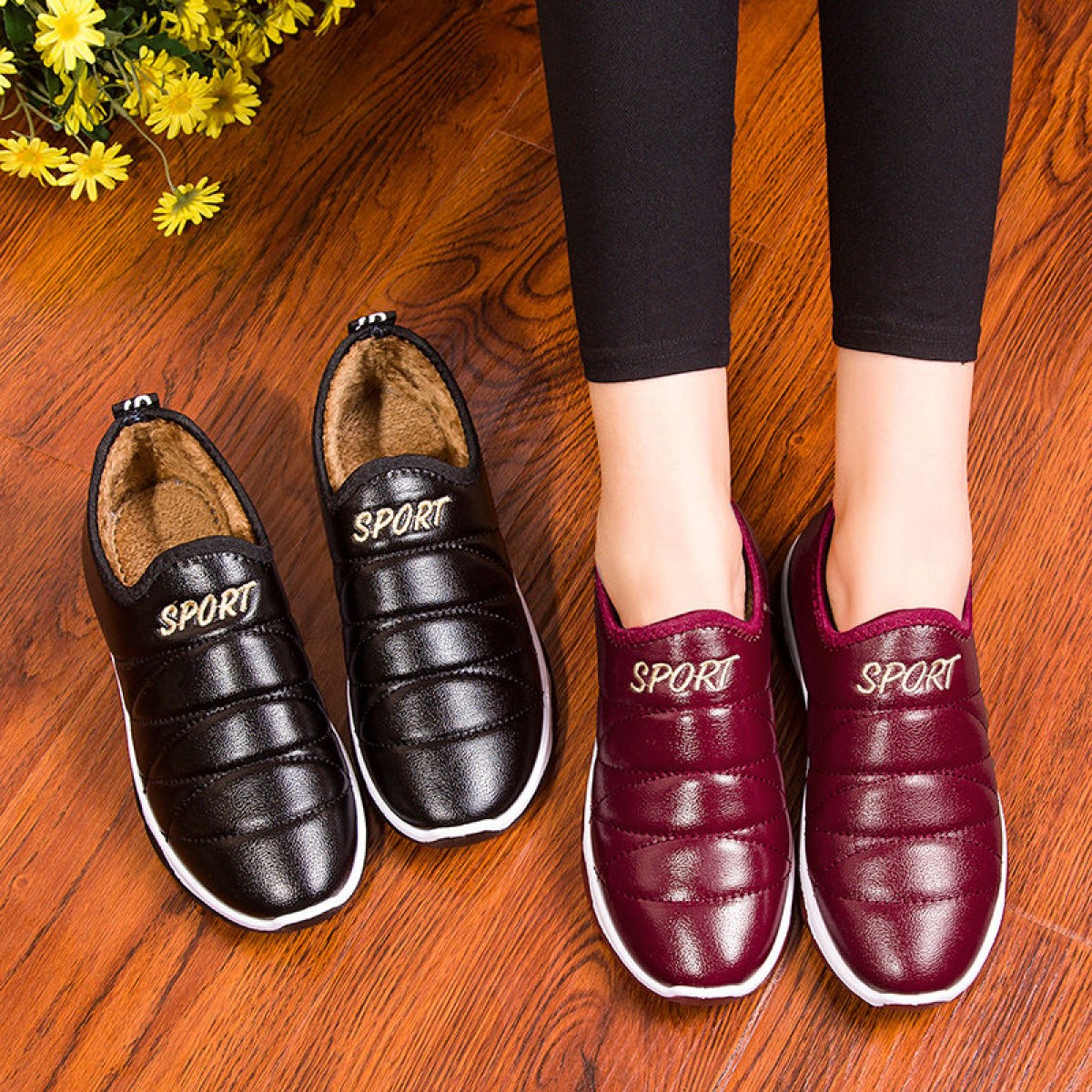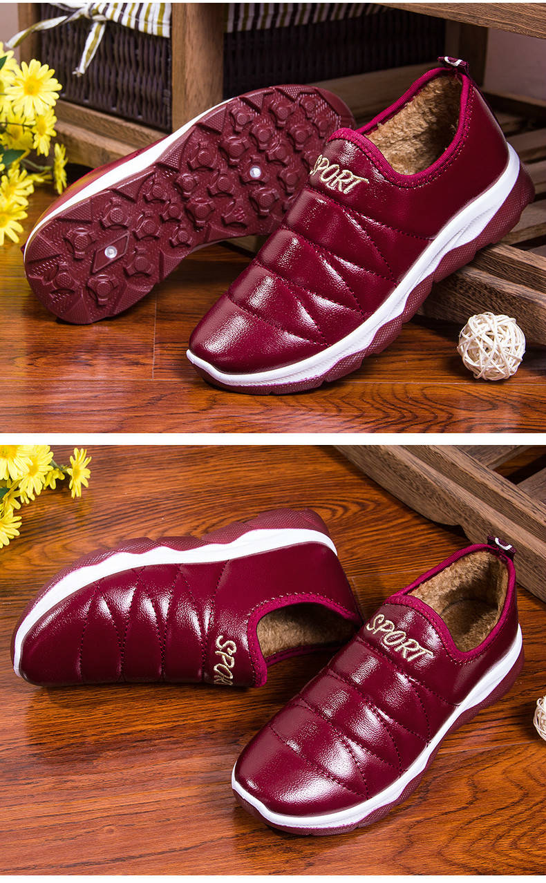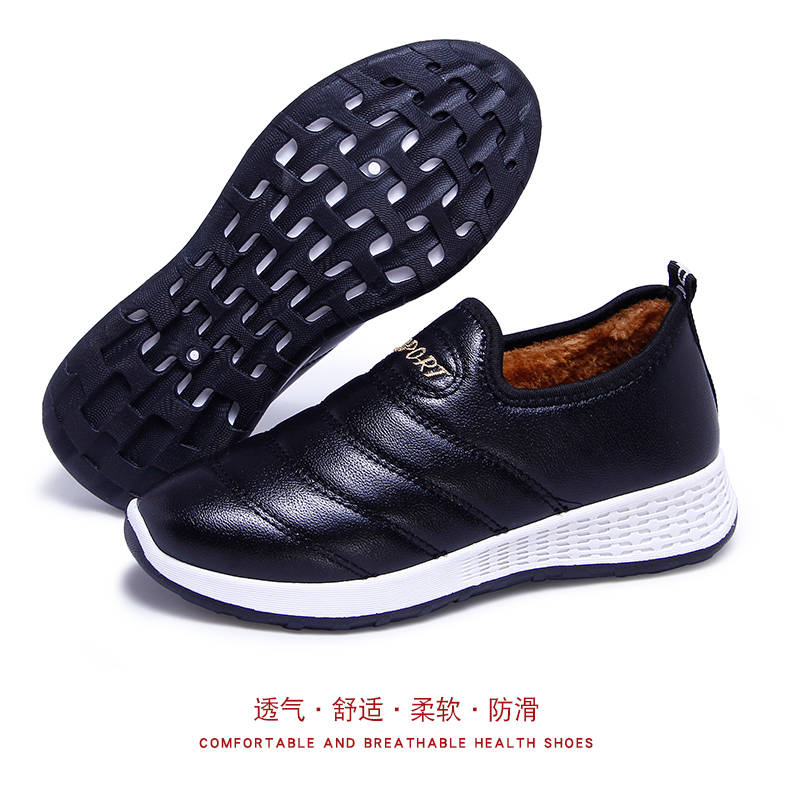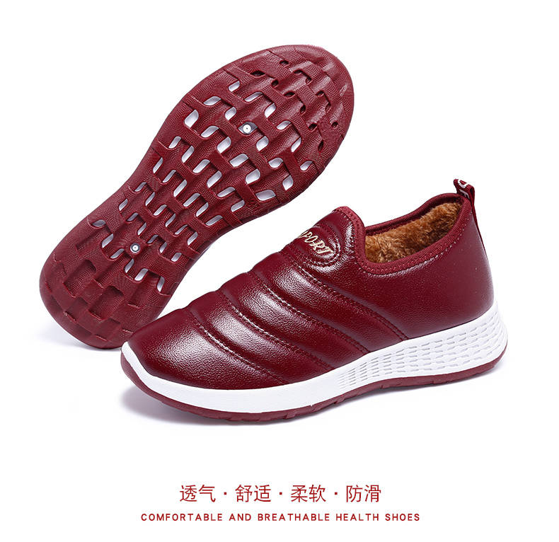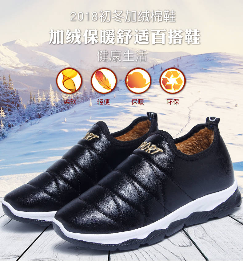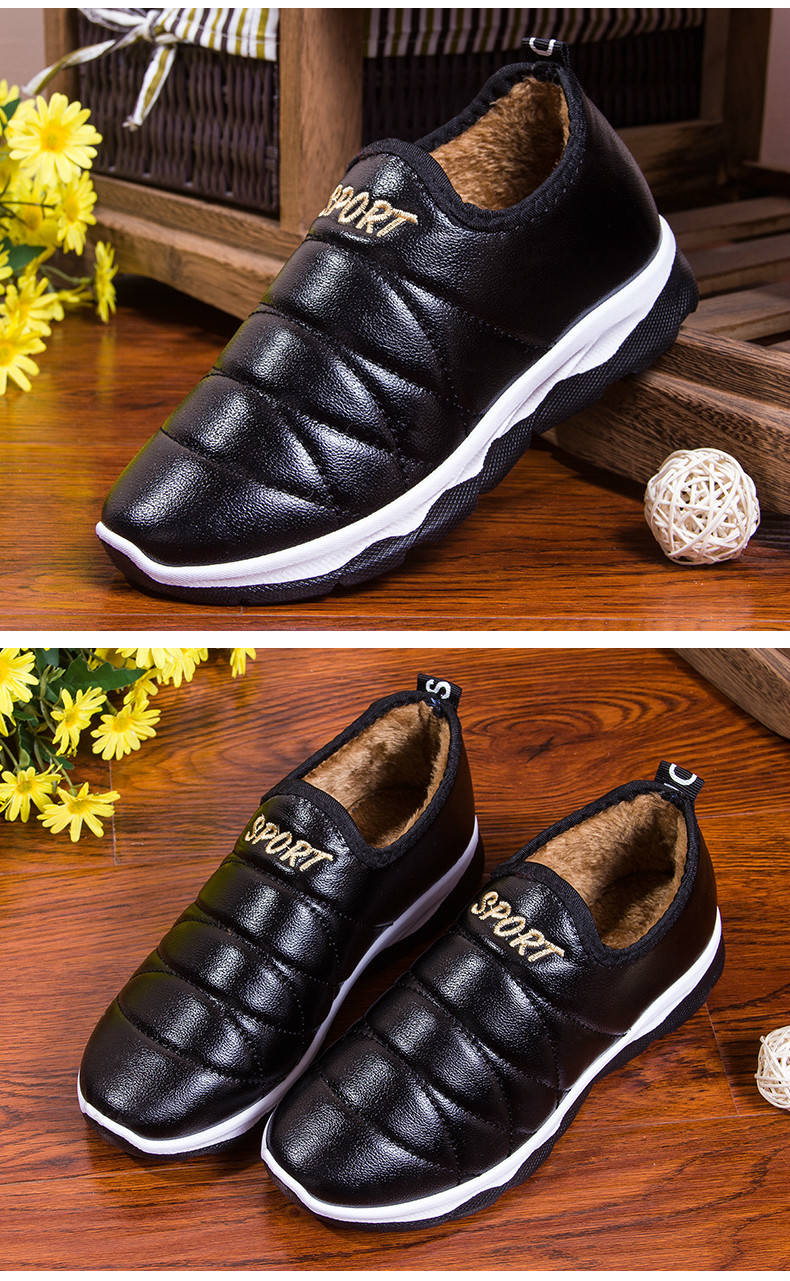 商品名稱:冬季保暖PU防水女棉鞋老北京平底防滑媽媽鞋加絨加厚雪地靴工作鞋