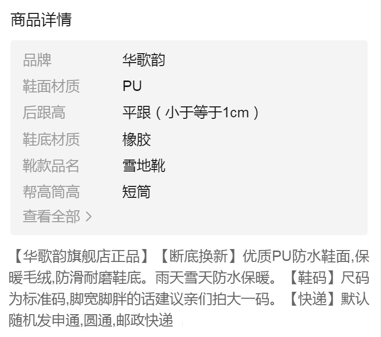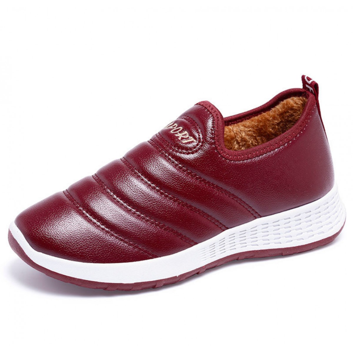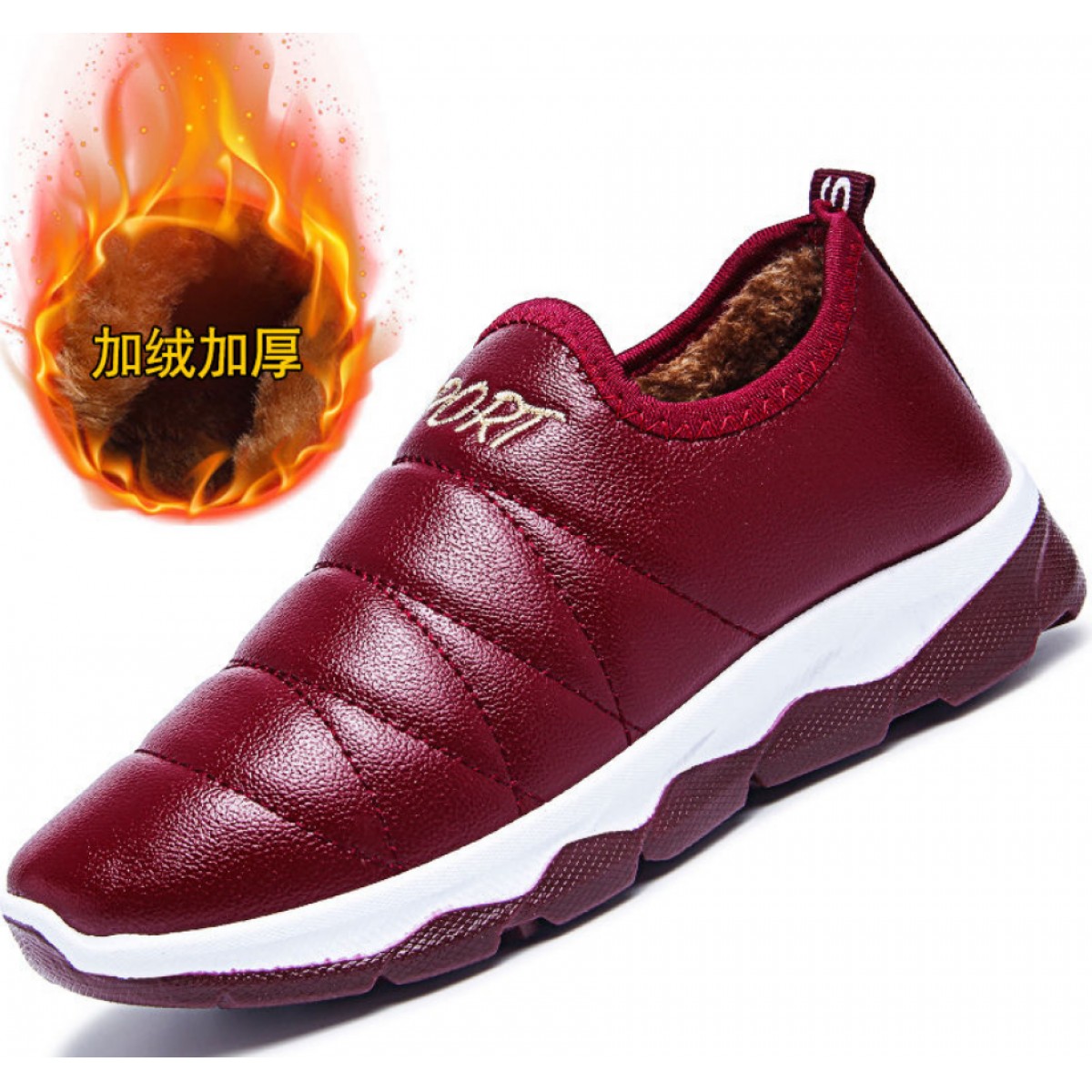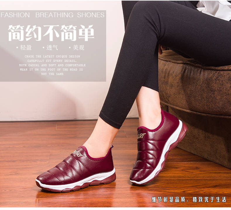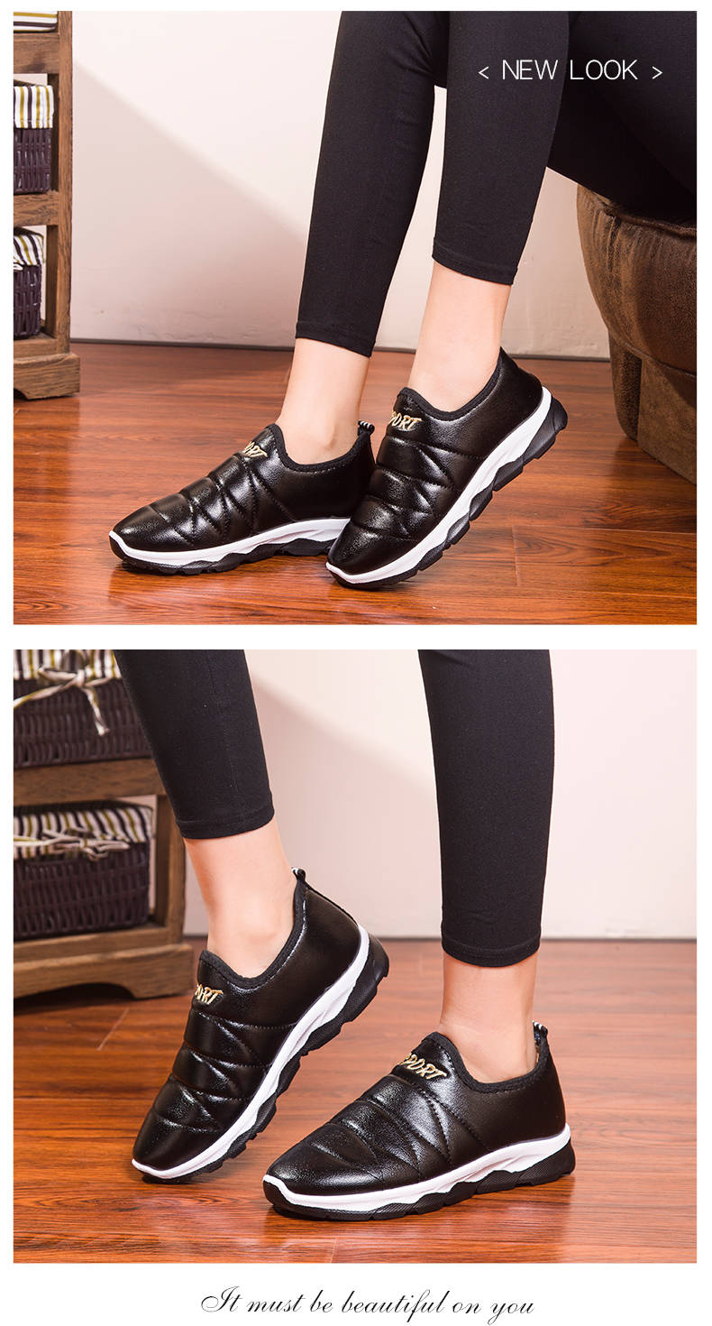 商品名稱:冬季保暖PU防水女棉鞋老北京平底防滑媽媽鞋加絨加厚雪地靴工作鞋