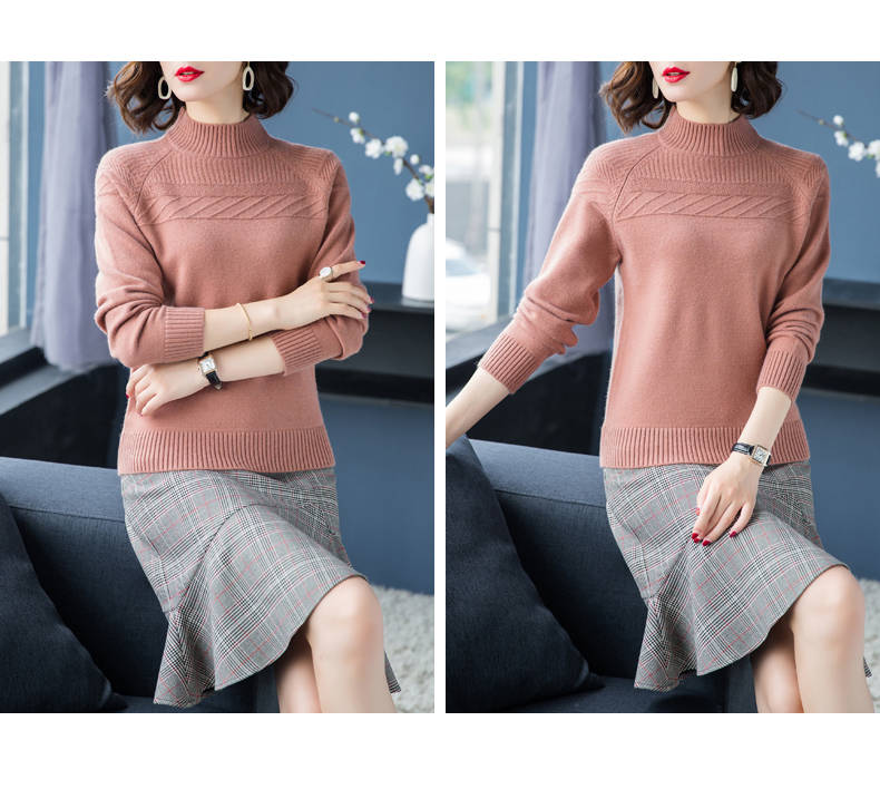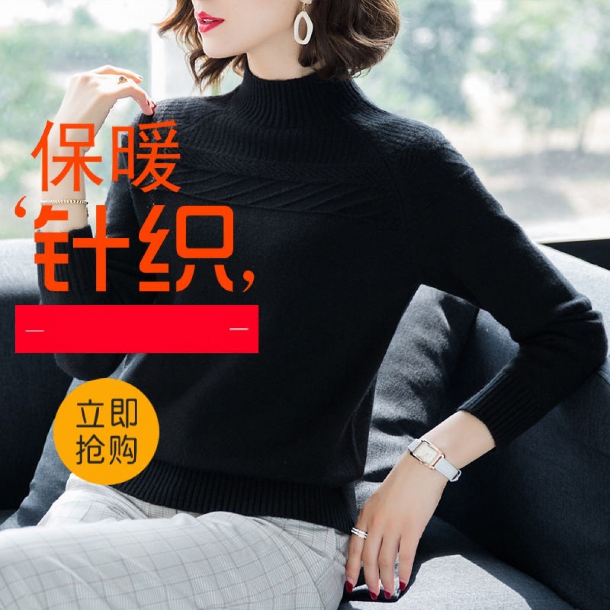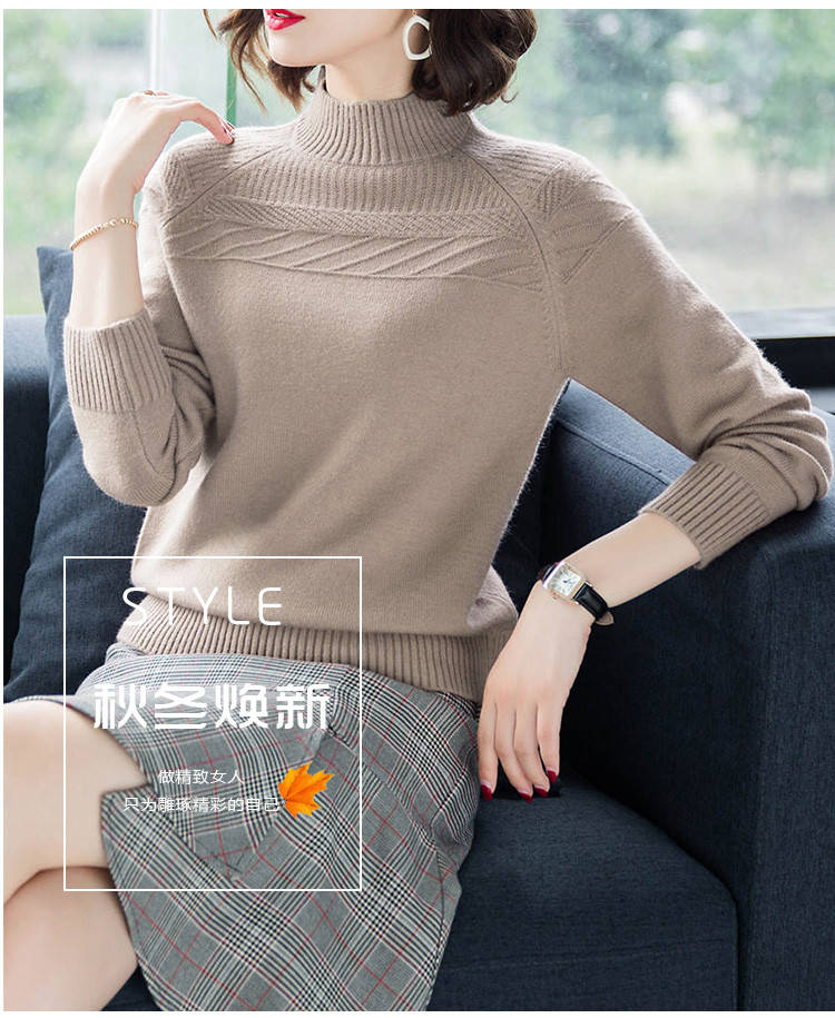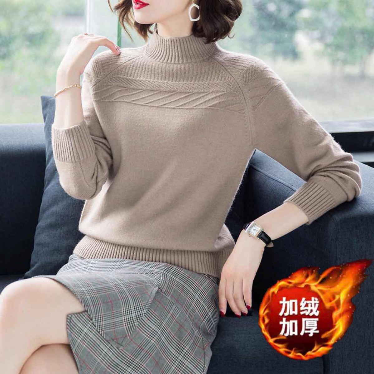 商品名稱:【加絨加厚】早秋毛衣女秋冬韓版套頭半高領(lǐng)寬松加絨加厚針織衫