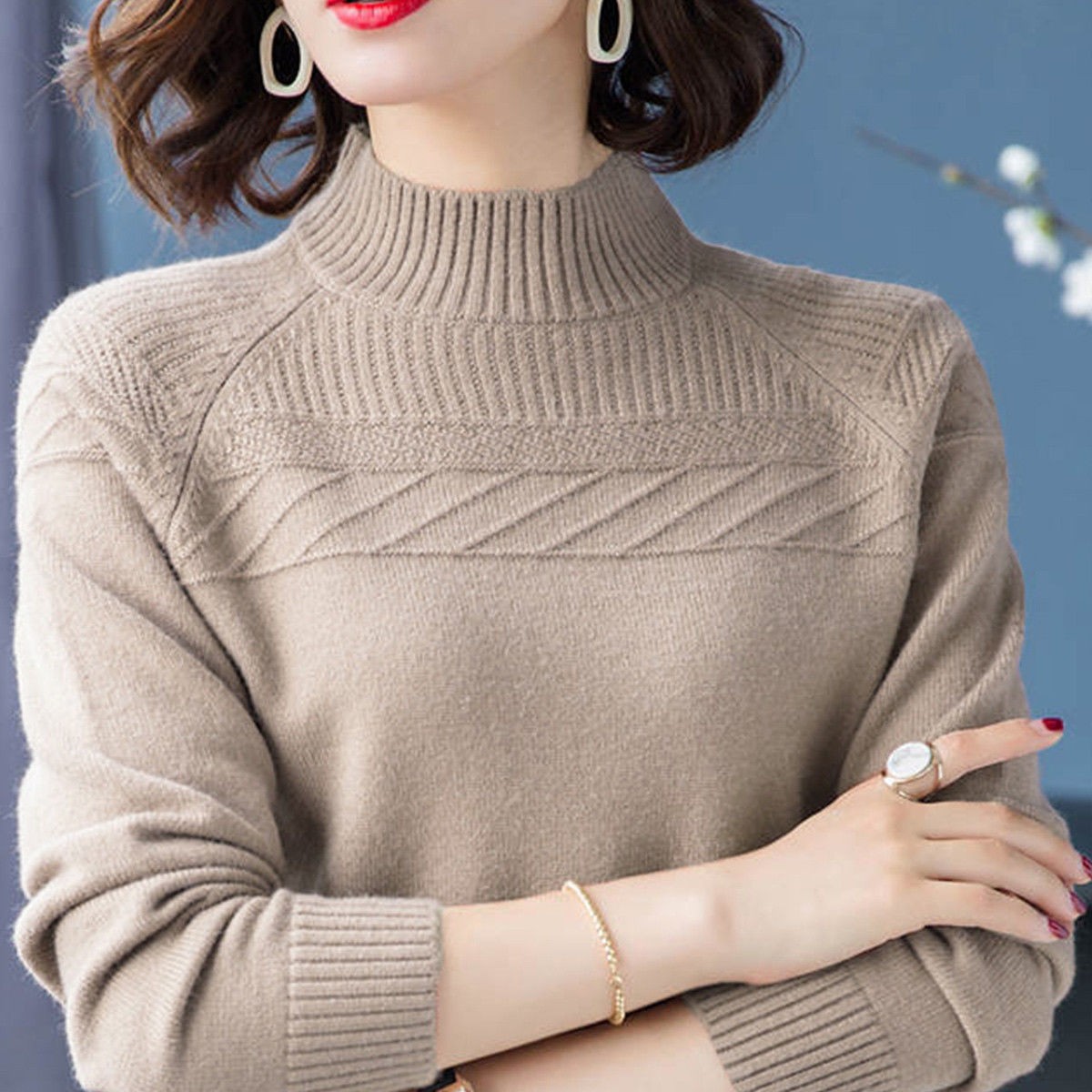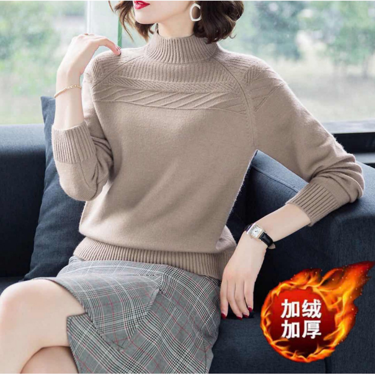 【加絨加厚】早秋毛衣女秋冬韓版套頭半高領(lǐng)寬松加絨加厚針織衫