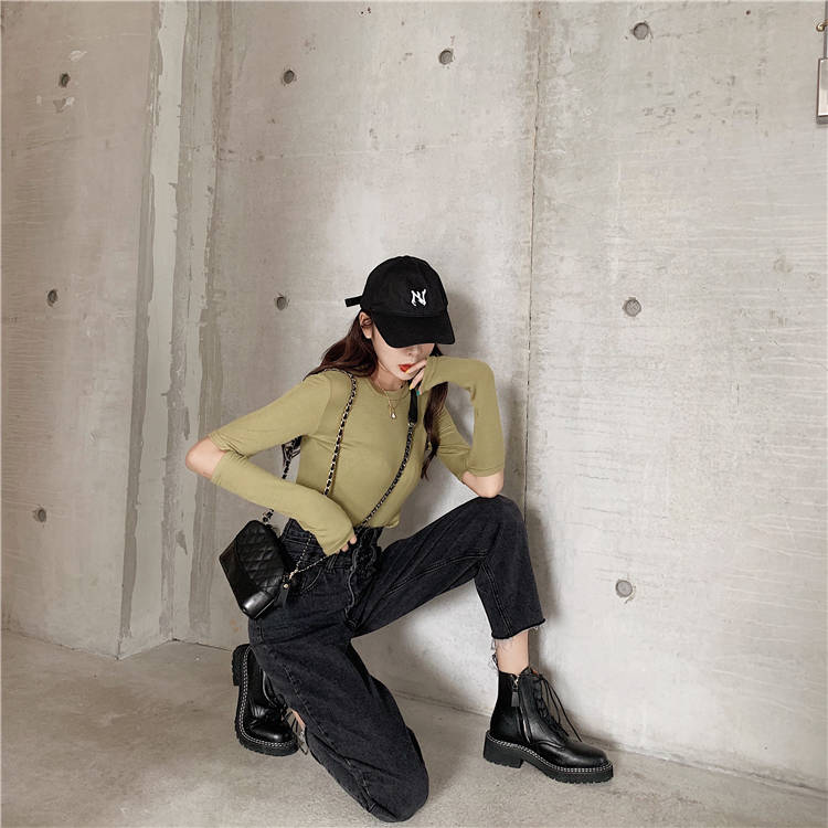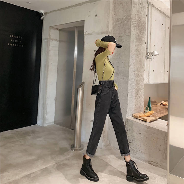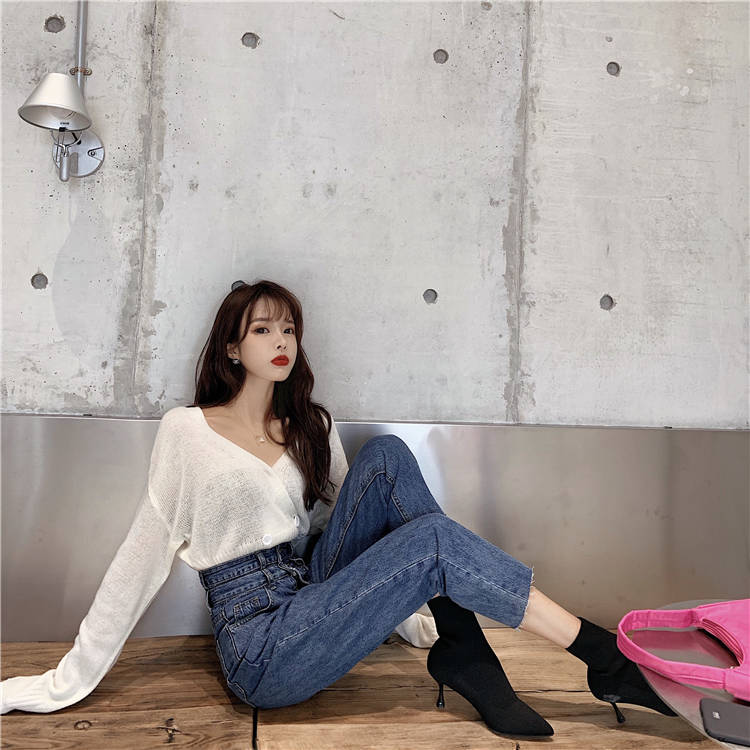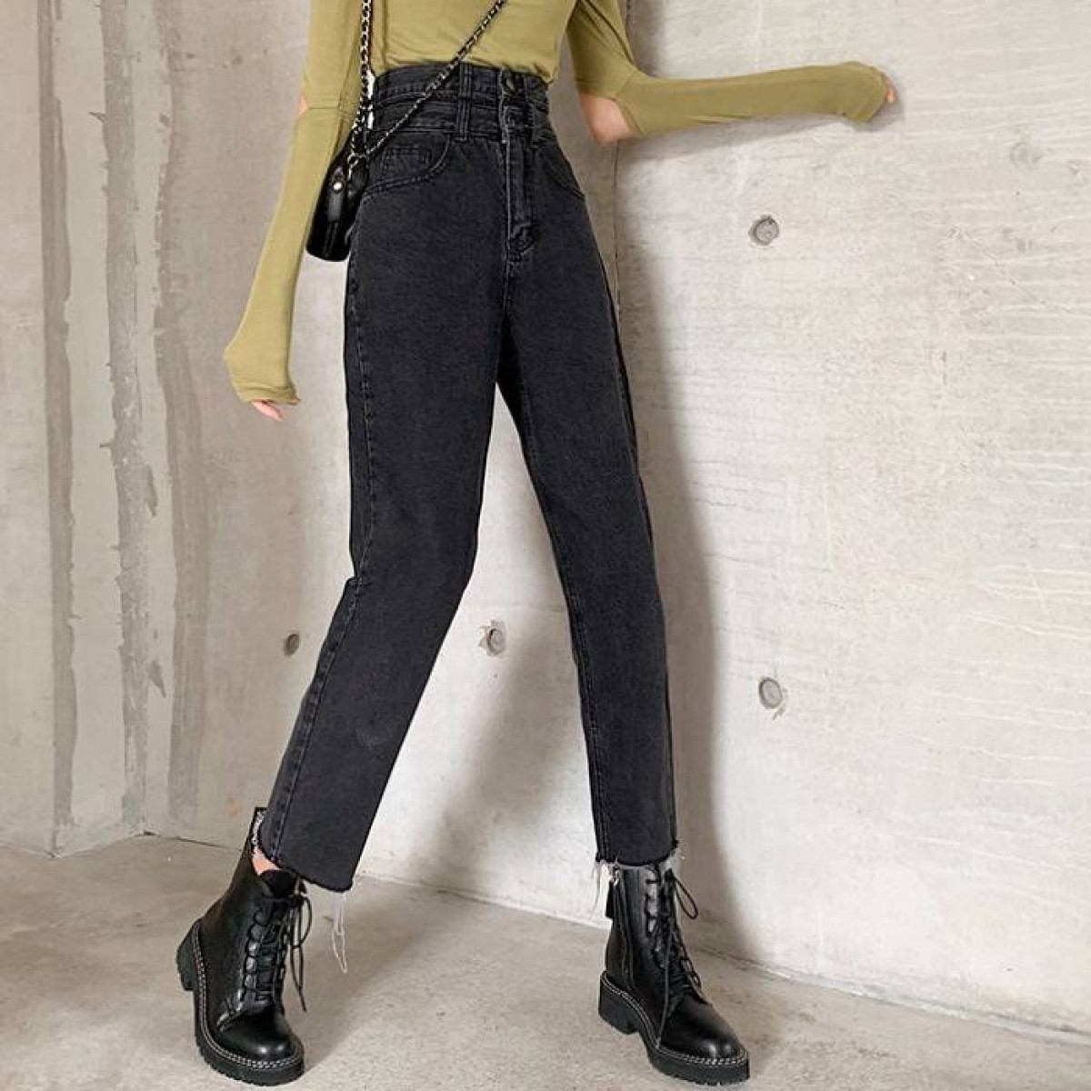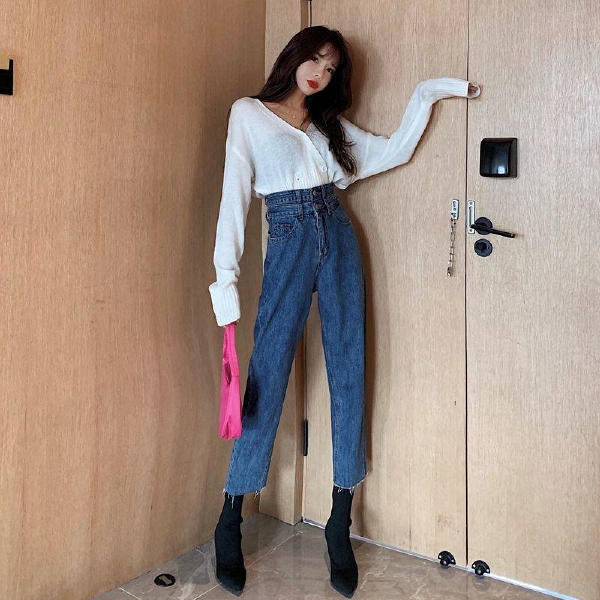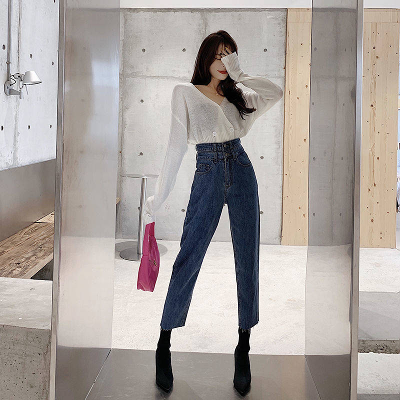 商品名稱:秋裝韓版2019新款百搭顯瘦學(xué)生直筒褲女高腰顯瘦網(wǎng)紅毛邊牛仔褲潮