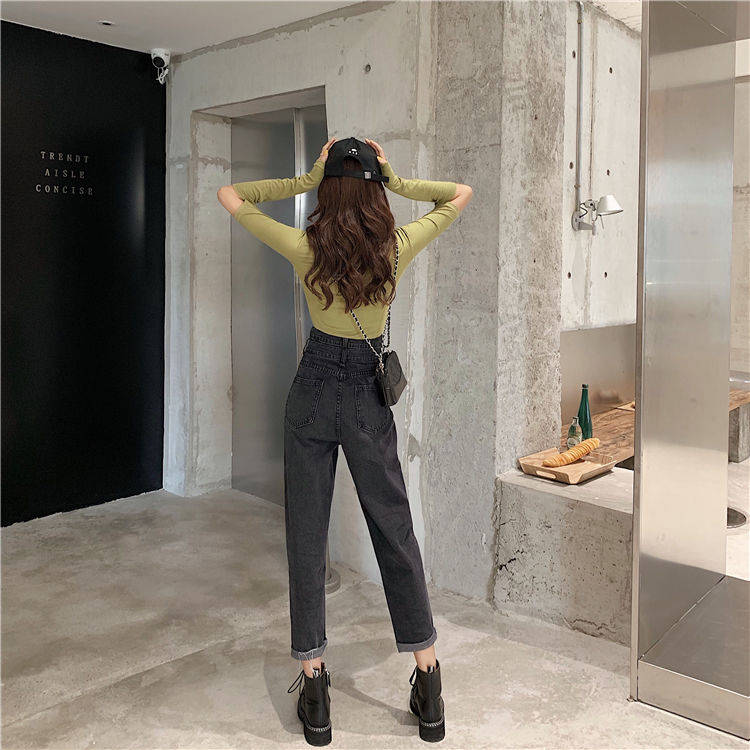 秋裝韓版2019新款百搭顯瘦學(xué)生直筒褲女高腰顯瘦網(wǎng)紅毛邊牛仔褲潮