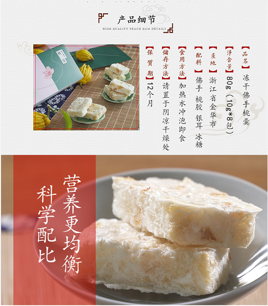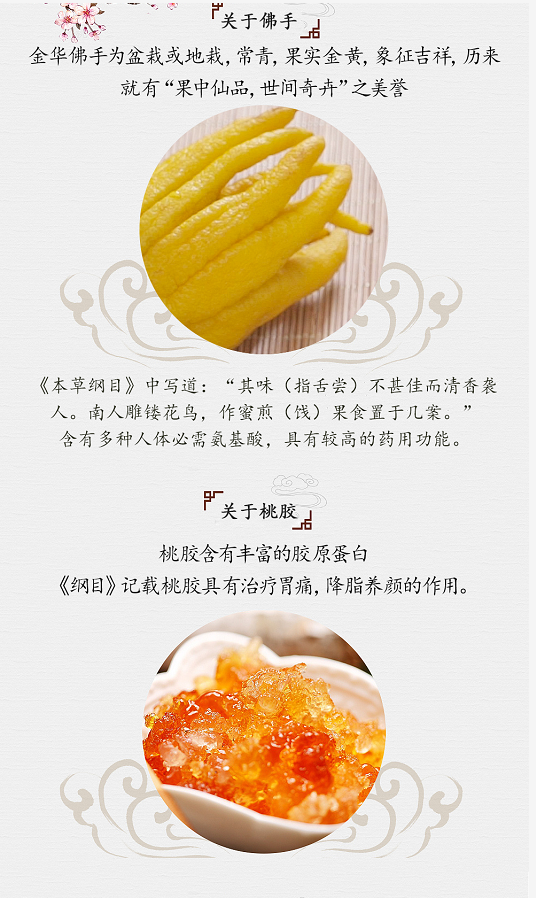 商品名稱:天然 食用 凍干 佛手 桃羹 桃膠原廠地發(fā)貨/盒