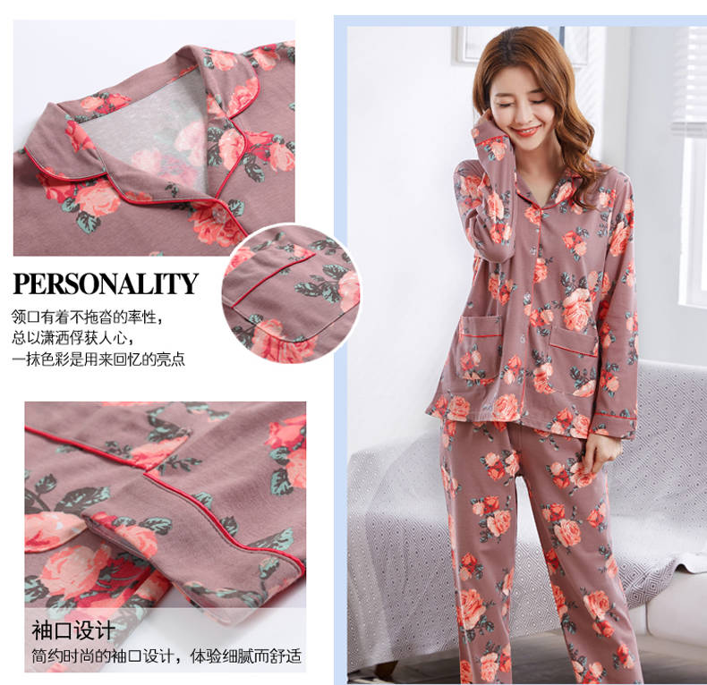 商品名稱:高檔雙面純棉睡衣女士春秋季長(zhǎng)袖冬天大碼中老年媽媽家居服月子服