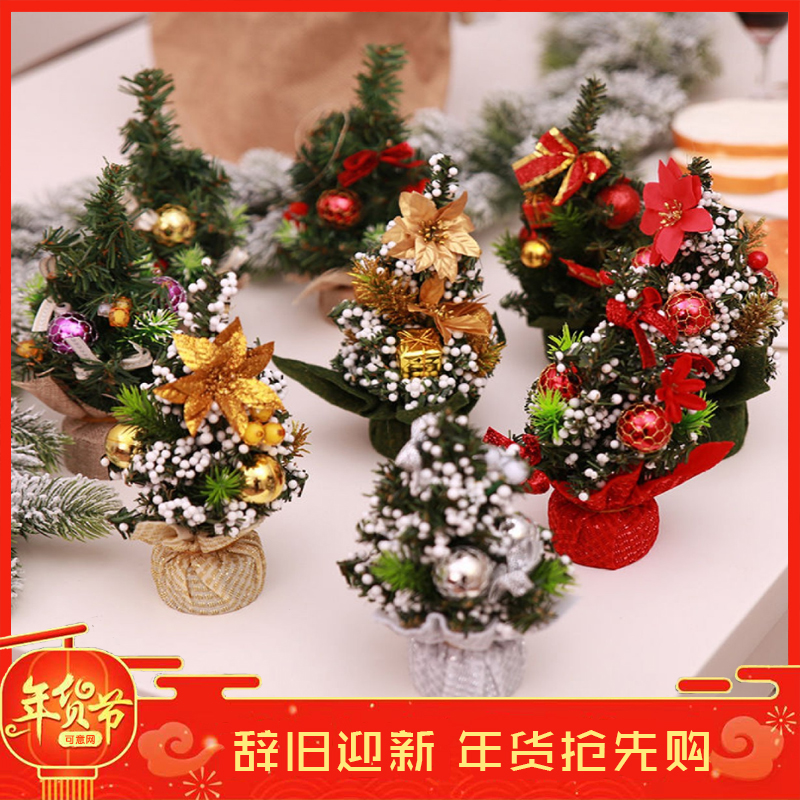20cm迷你小圣誕樹無紡布金色帶泡沫亮布樹圣誕節(jié)桌面擺件裝飾用品