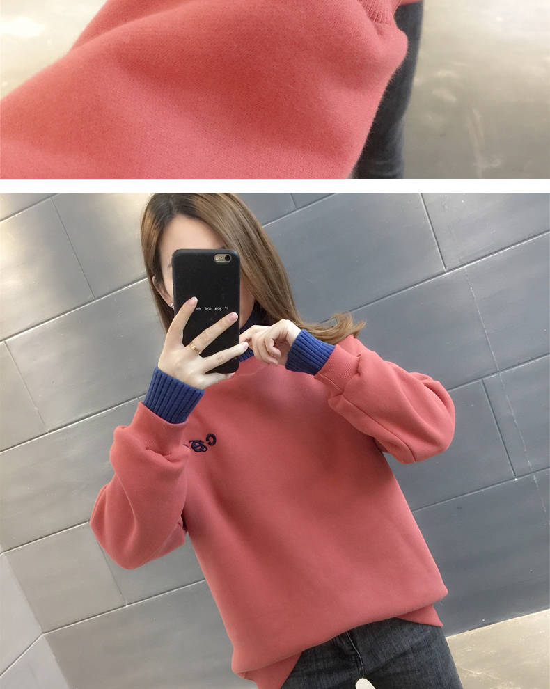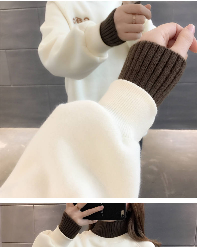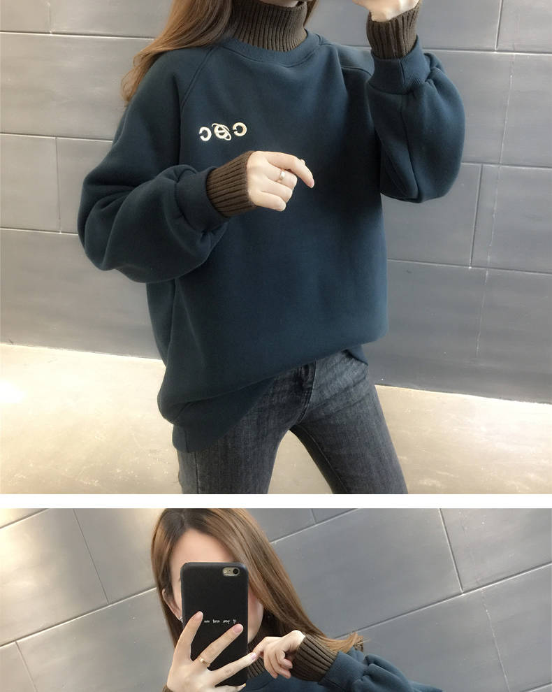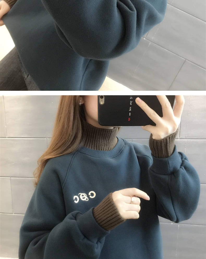 商品名稱:加絨衛(wèi)衣女2019秋冬新款半高領(lǐng)假兩件寬松韓版加厚時尚上衣外套潮