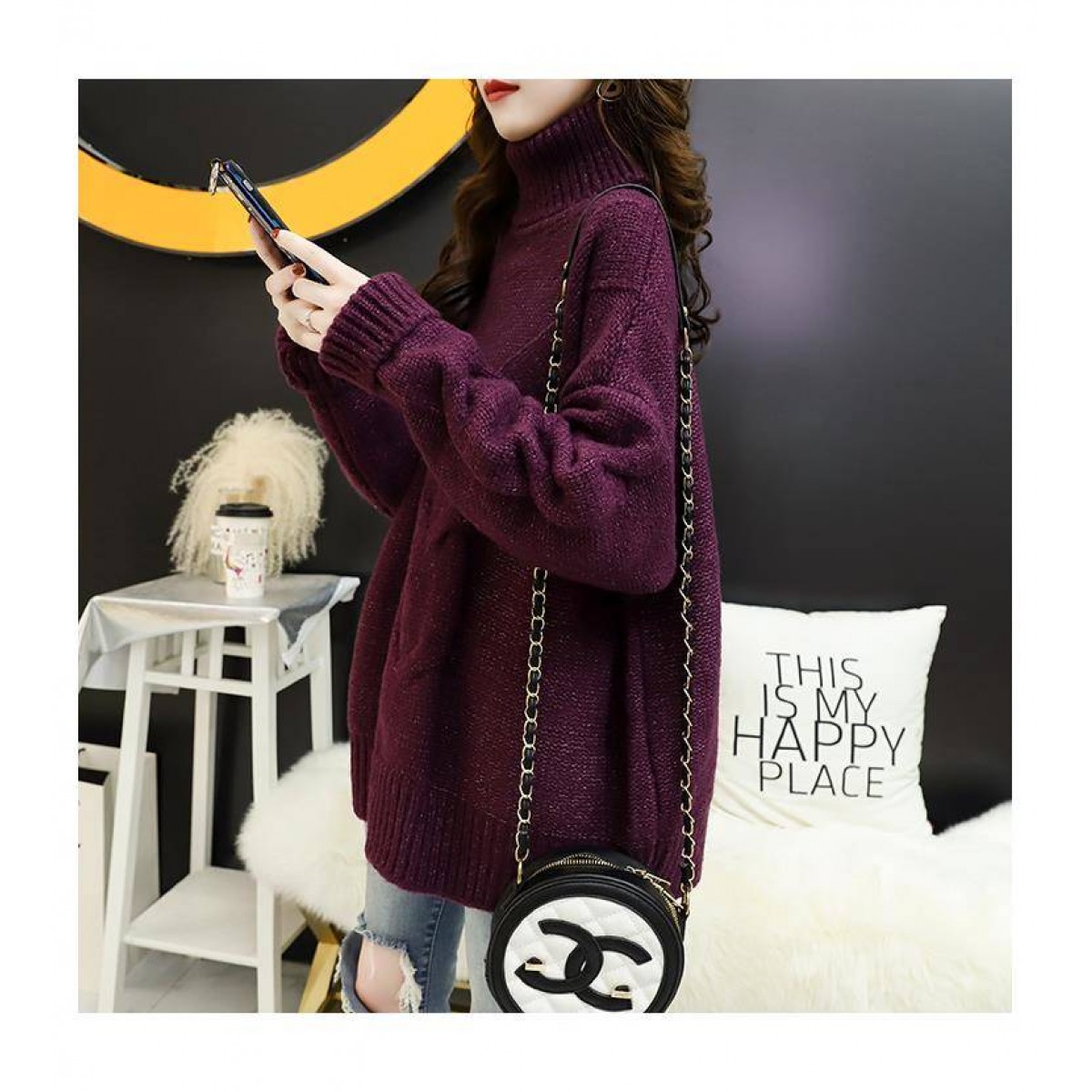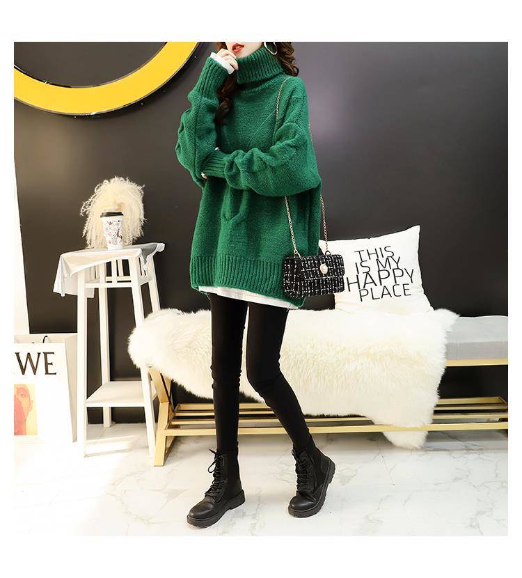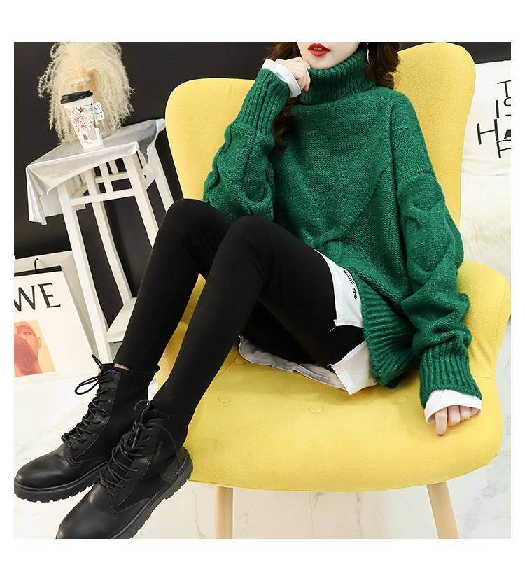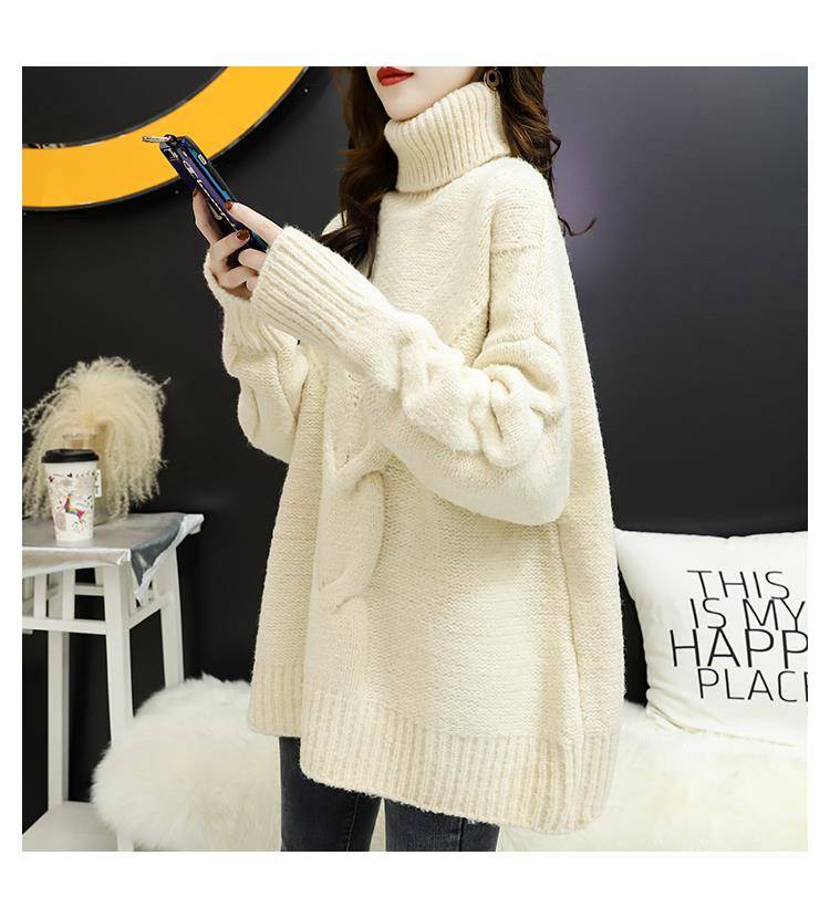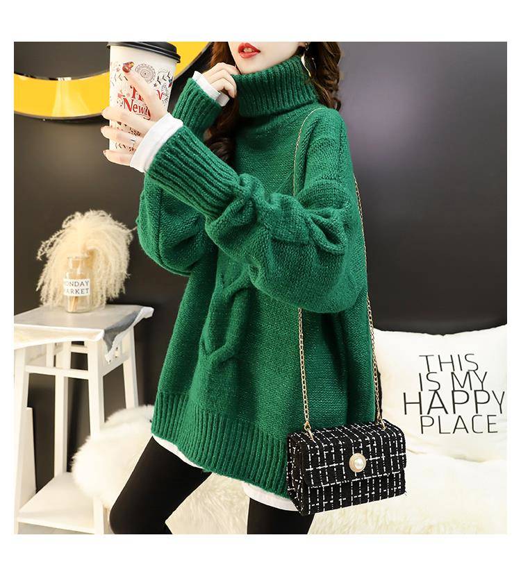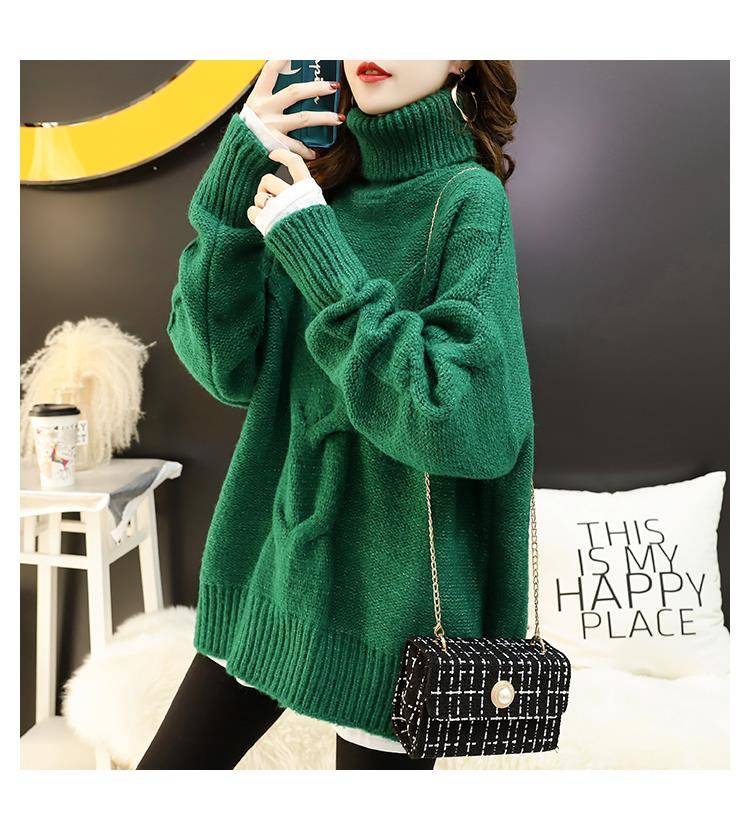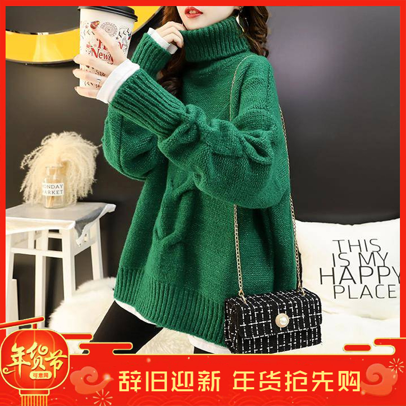 商品名稱:不加絨麻花高領(lǐng)毛衣套頭女加厚慵懶風寬松針織衫2019新款冬