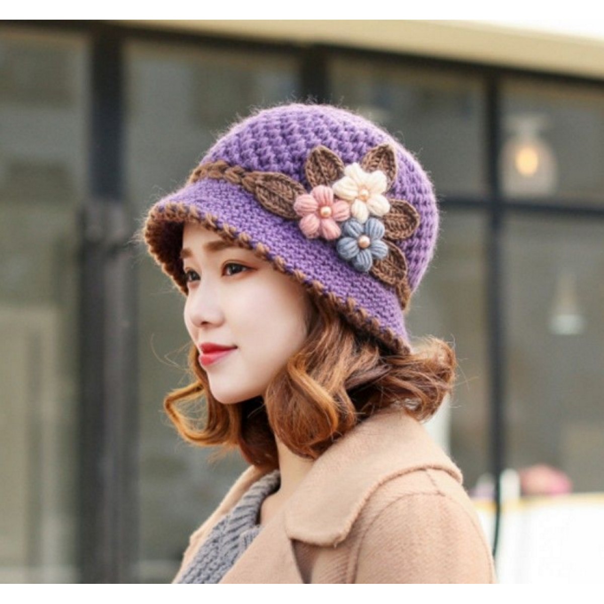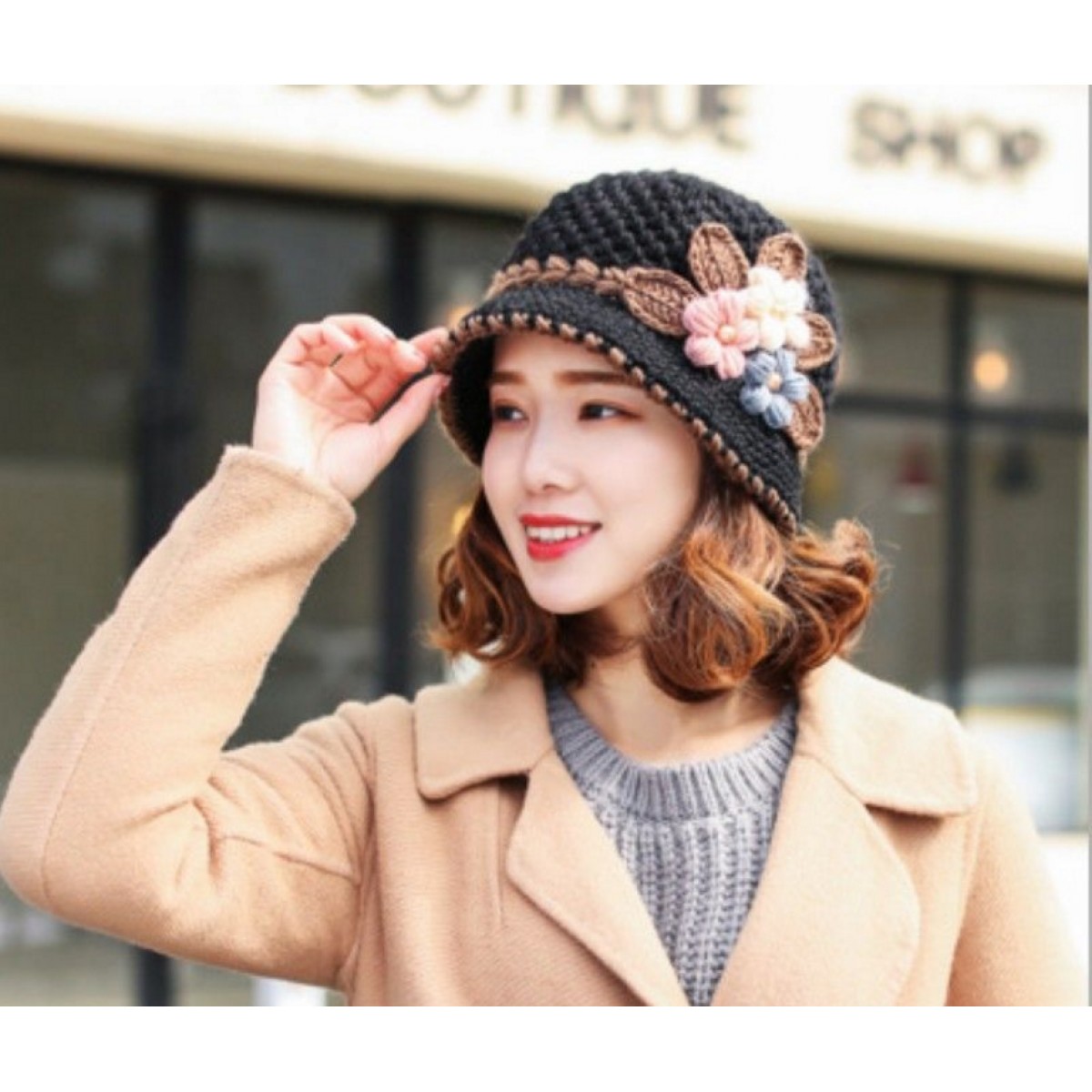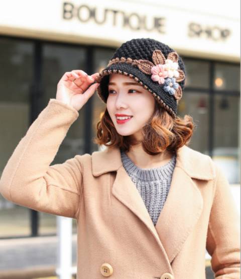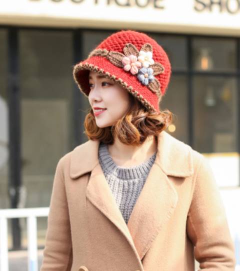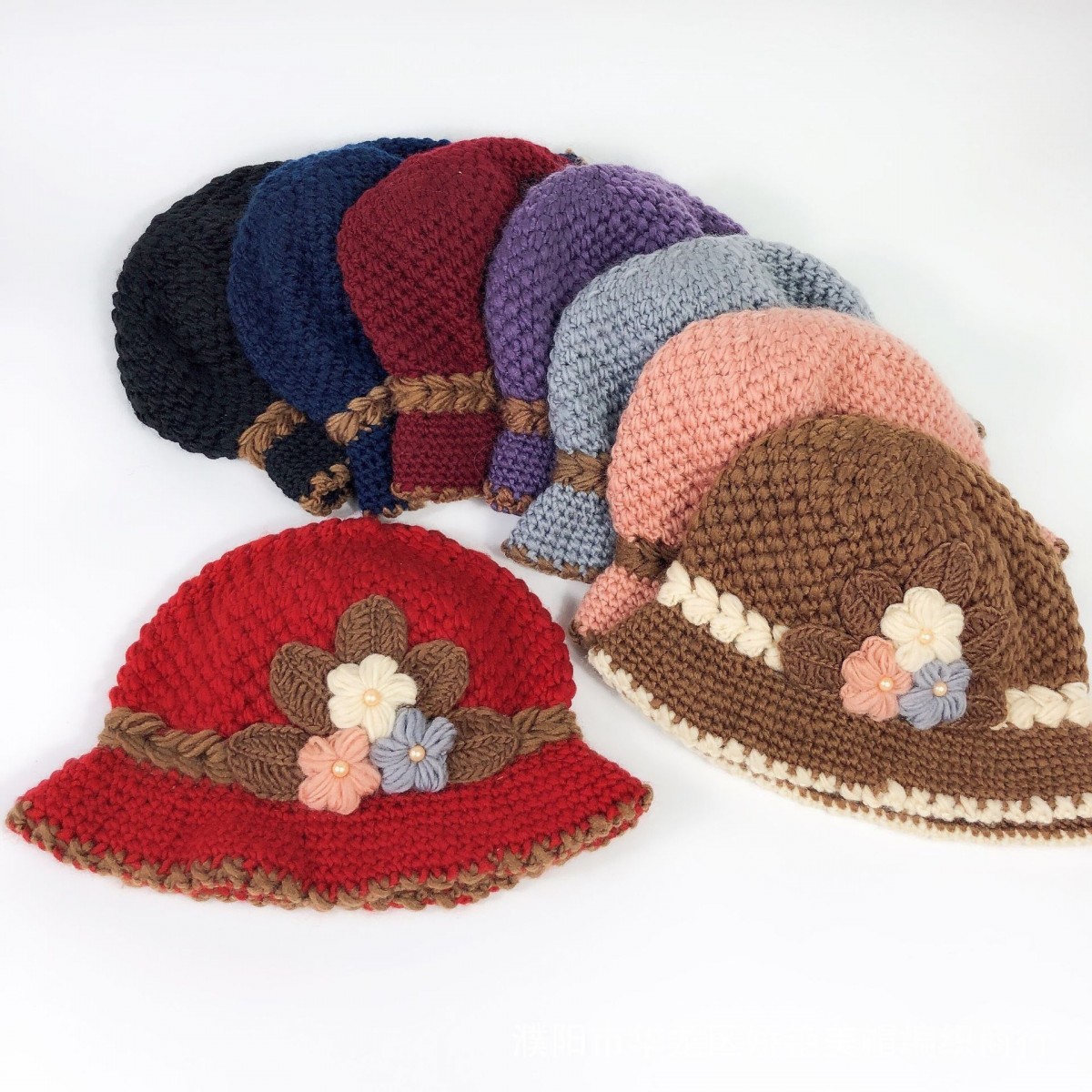 商品名稱:針織帽女士秋冬毛線帽經(jīng)典冬季女帽子花朵加絨漁夫帽盆帽媽媽冬帽