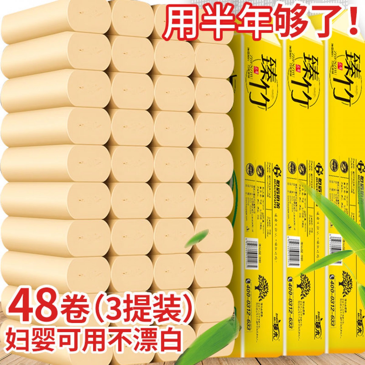 【加量裝贈毛巾】48卷/14卷/12卷竹漿本色衛(wèi)生紙卷紙批發(fā)家用紙巾