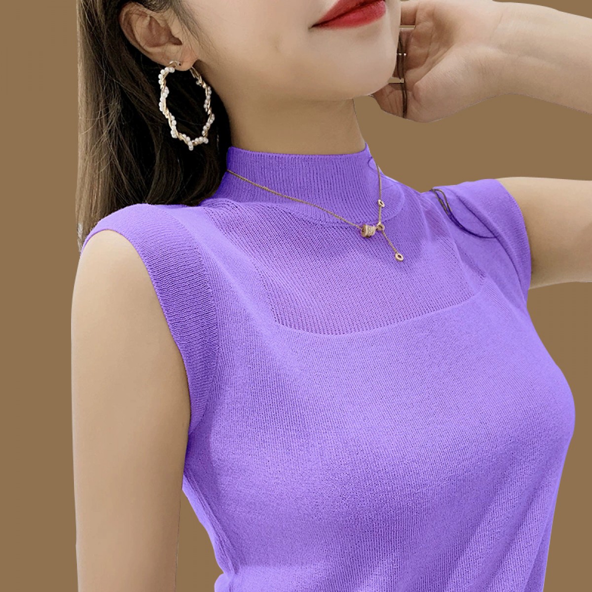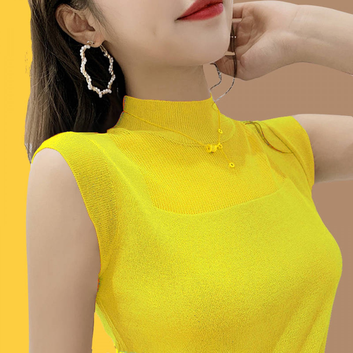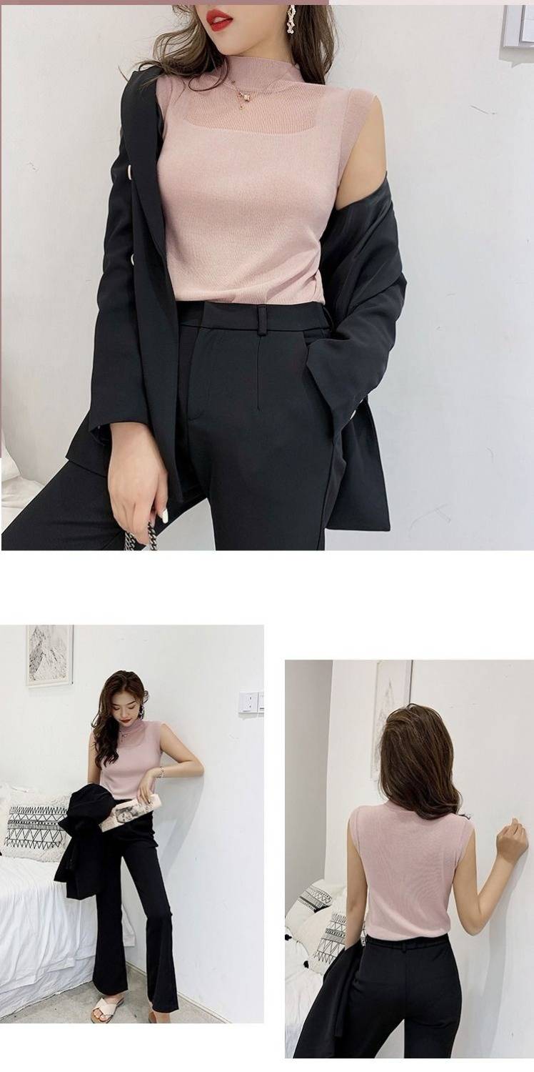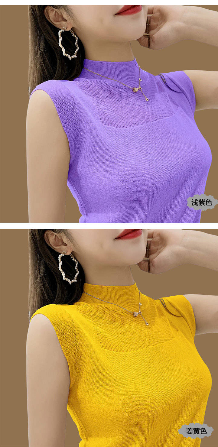 商品名稱:秋冬季上衣女半高領(lǐng)背心女外穿針織內(nèi)搭洋氣打底衫薄毛衣無袖T恤