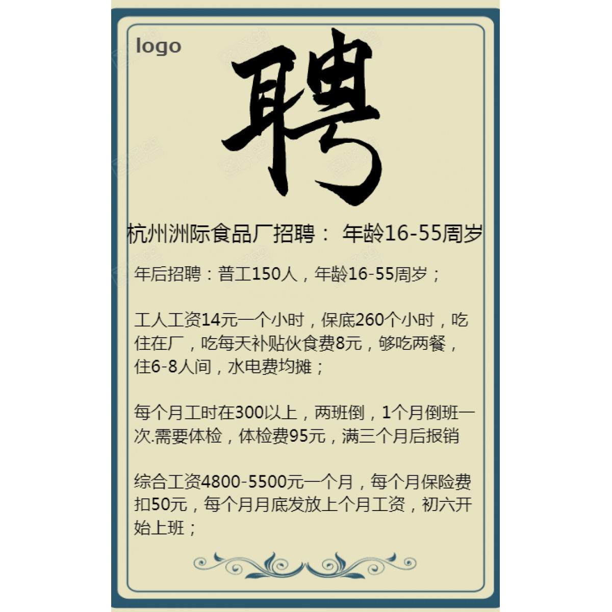 年后招聘:普工150人,年齡16-55周歲,工人工資14元一個(gè)小時(shí),保底260個(gè)小時(shí),吃住在廠,吃每天補(bǔ)貼伙食費(fèi)8元,夠吃兩餐,住6-8人間,水電費(fèi)均攤,每個(gè)月工時(shí)在300以上,兩班倒,1個(gè)月倒班一次.需要體檢,體檢費(fèi)95元,滿三個(gè)月后報(bào)銷,綜合工資4800-5500元一個(gè)月,每個(gè)月保險(xiǎn)費(fèi)扣50元,每個(gè)月月底發(fā)放上個(gè)月工資,初六開始上班。