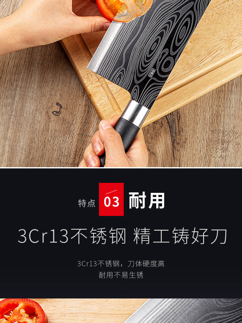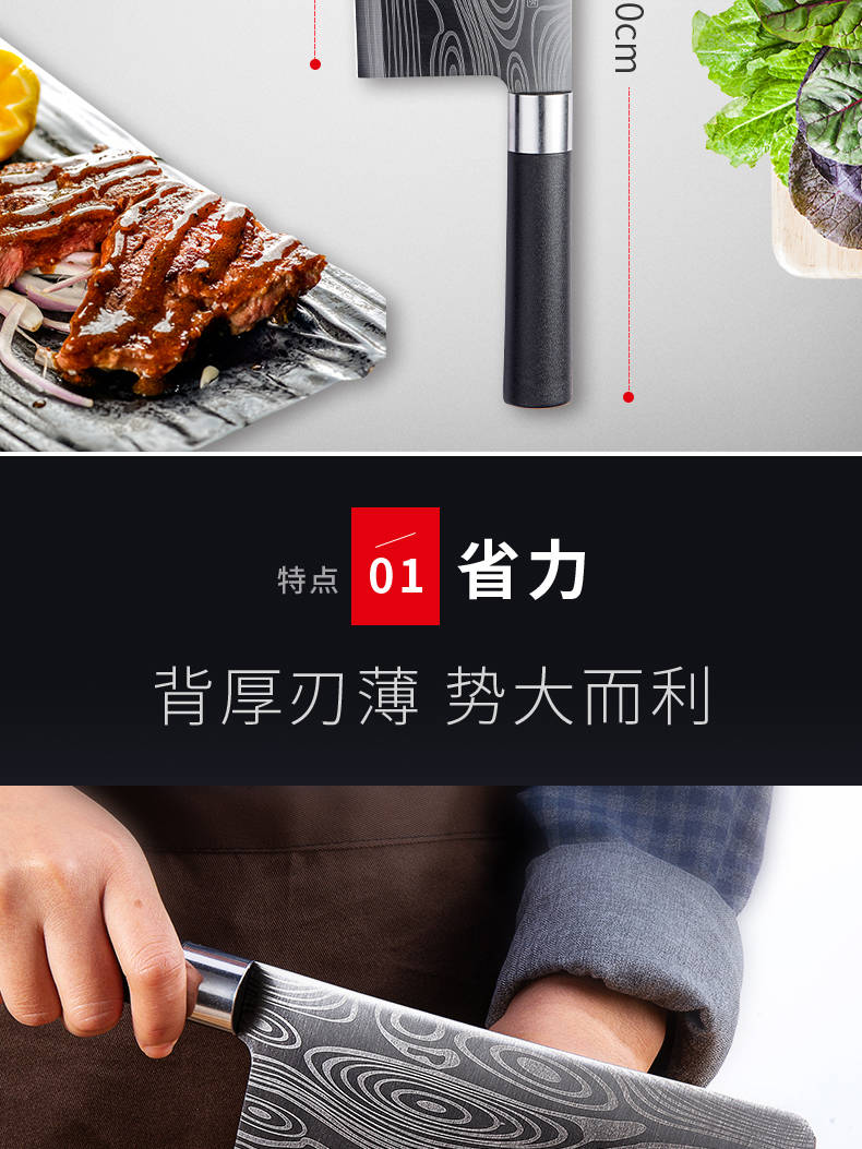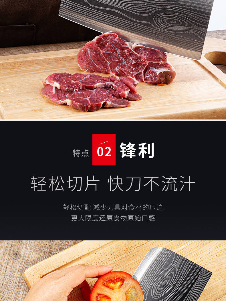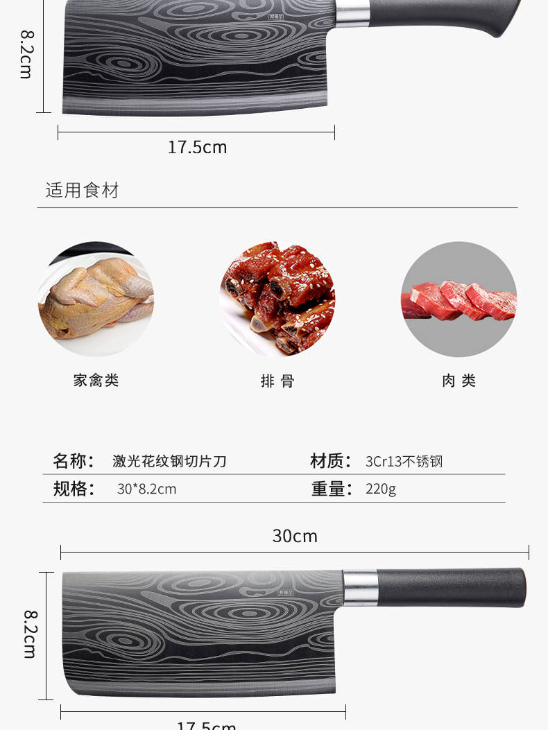 商品名稱:家用廚房菜刀德國(guó)工藝不銹鋼切肉刀切片刀鋒利廚師砍骨刀免磨刀具