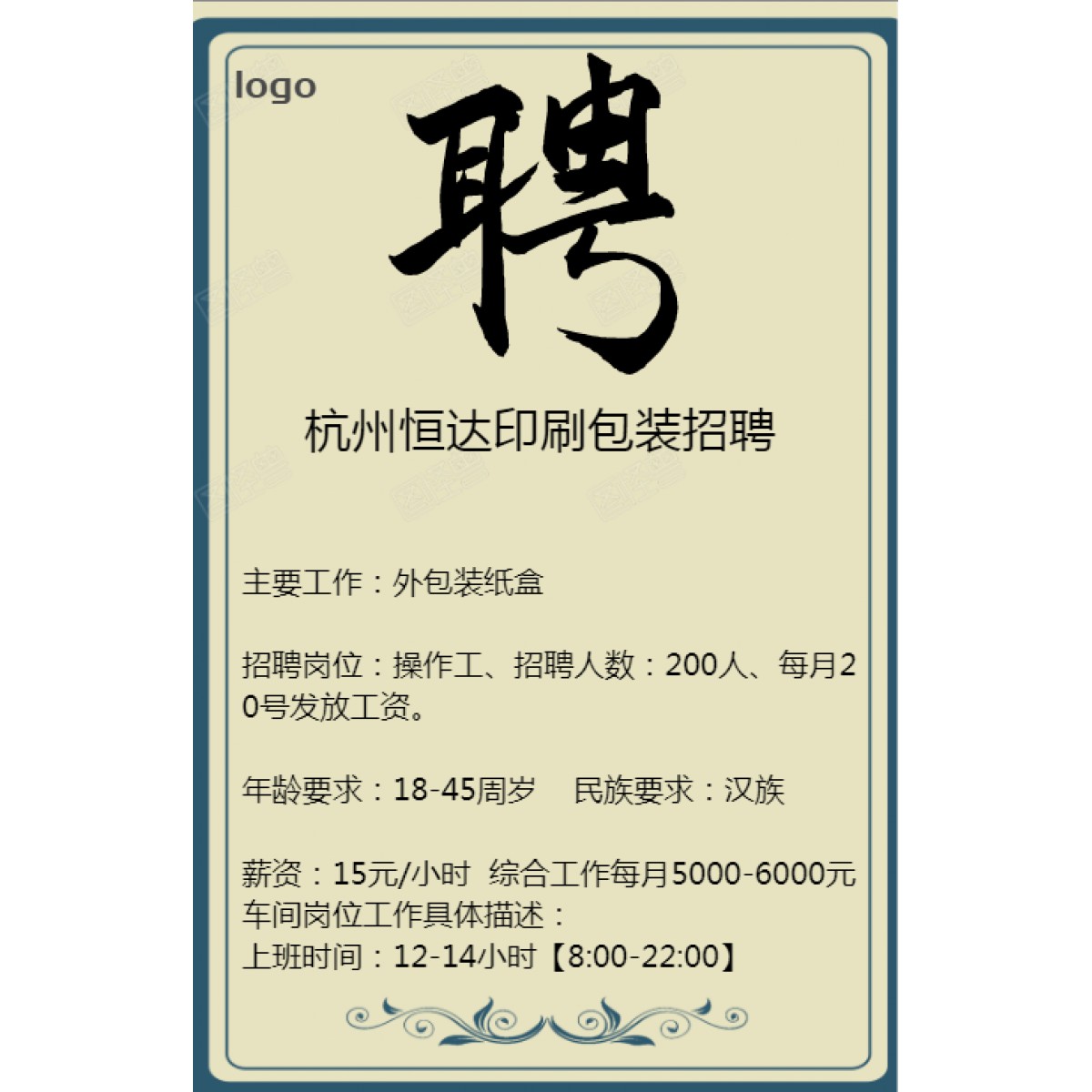 招聘崗位:操作工、招聘人數(shù):200人、每月20號(hào)發(fā)放工資。