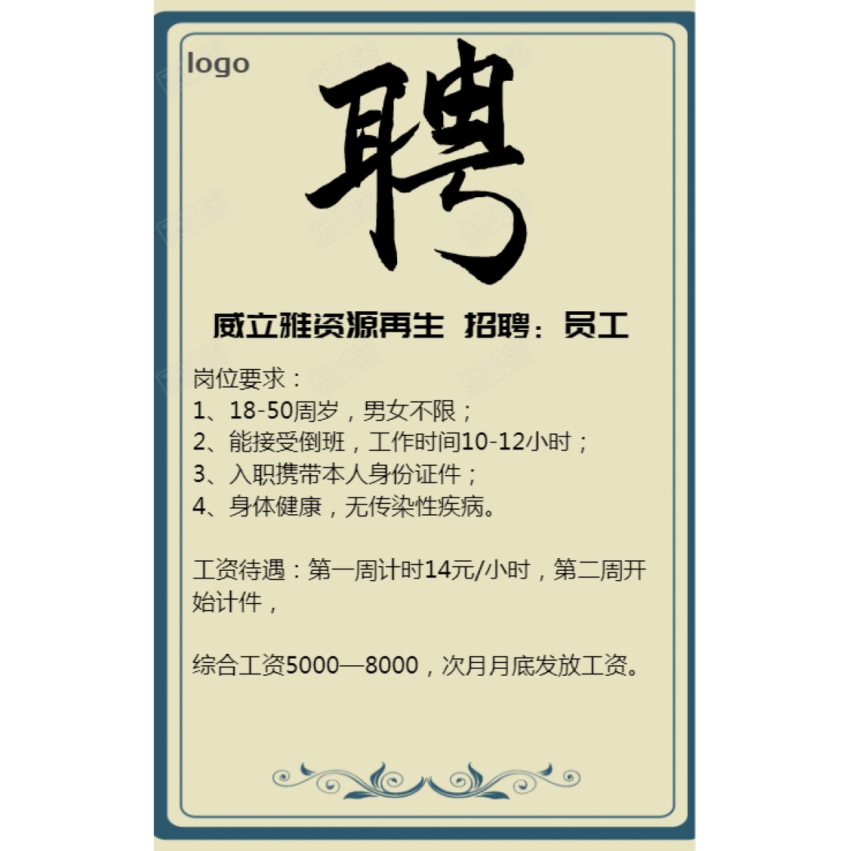 工資待遇:第一周計(jì)時(shí)14元/小時(shí),第二周開(kāi)始計(jì)件,
