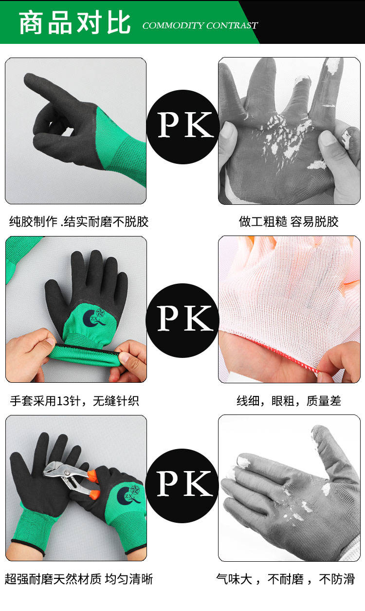 商品名稱:正品手套勞保耐磨批發(fā)男女建筑工作防滑透氣橡膠乳膠尼龍勞動(dòng)干活