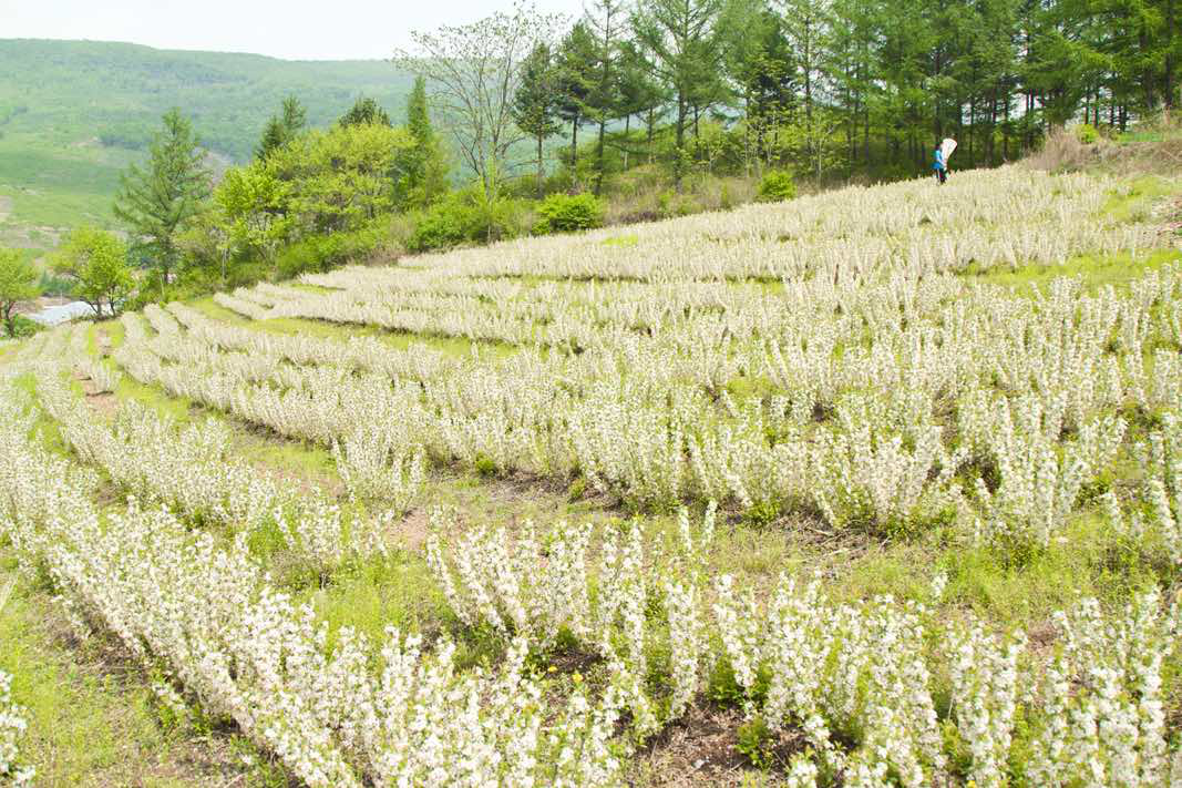鈣果,屬薔薇科櫻桃屬歐李種植物,是一種矮小的灌木果樹,為我國所特有。株高僅0.5-1米,可以說是世界上最矮小的木本果樹。鈣果枝條細密、柔軟、無刺,一年生枝粗度約2-4毫米,多年生長的主干枝的粗度一般也超不過1厘米。葉片呈倒卵圓形,像榆樹葉,葉片上半部寬、下半部窄是鈣果區(qū)別于其他近緣種(如郁李、麥李)的重要標志。開白花或粉花,花小,直徑約2厘米,但因一個節(jié)位上常著生3-5朵花,且先花后葉,所以花繁似錦,極為美觀。